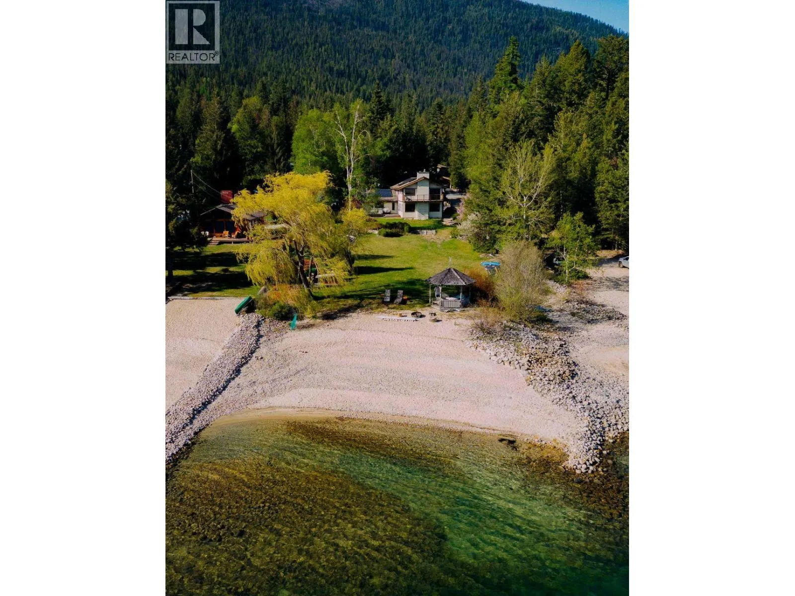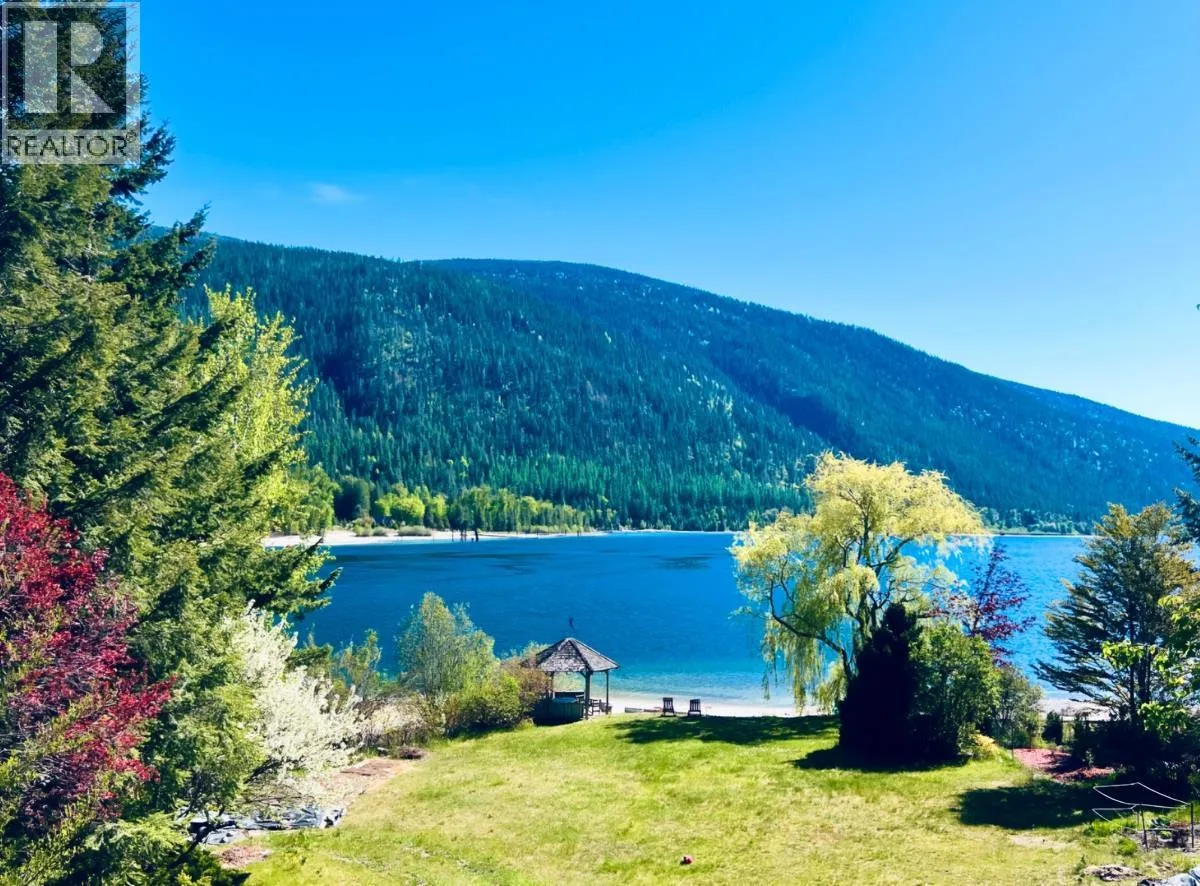 Experience waterfront living at its finest. Nestled on the scenic North Shore, this exceptional 0.55-acre waterfront retreat offers a rare private sandy beach and breathtaking south-facing views across Kootenay Lake to the surrounding mountainsâjust 15 minutes from Nelson. This thoughtfully designed 5-bedroom, 3-bathroom home features both a wood-burning fireplace and a gas fireplace, generous natural light, and flexible living spaces. Off the kitchen, a cozy nook provides the perfect spot for morning coffee or quiet reflection. A spacious basement workshop, private and open office areas, and an attached two-car garage add everyday functionality. Key features include: ⢠36 solar panels for energy efficiency ⢠Self-contained upper suite with brand-new kitchen and separate electric meter, ideal for rental income or multi-generational living ⢠Soundproofed ceiling for enhanced comfort ⢠Updated kitchen with modern appliances ⢠2026 upgraded fir-floor kitchen cabinetry ⢠Two fireplaces (wood & gas) Enjoy direct lake access from your private sandy beach, ideal for swimming, kayaking, or simply relaxing by the water. The landscaped yard offers space for gardening, recreation, or a dog run. A deck and patio off the kitchen, styled as a tranquil bonsai garden with privacy screening, complete this serene Kootenay retreat. (id:27476)