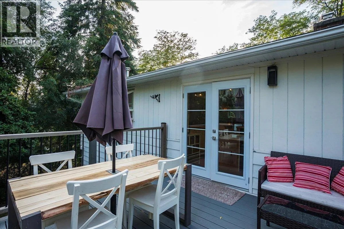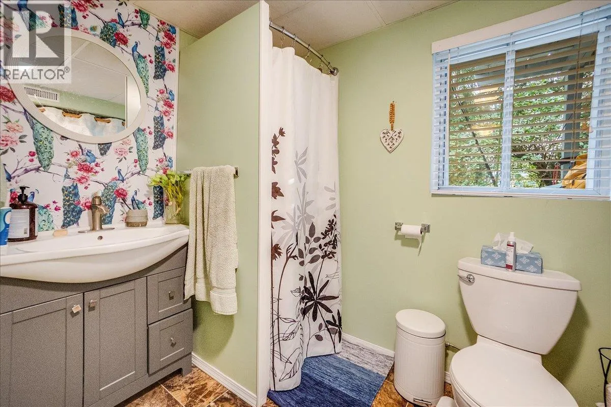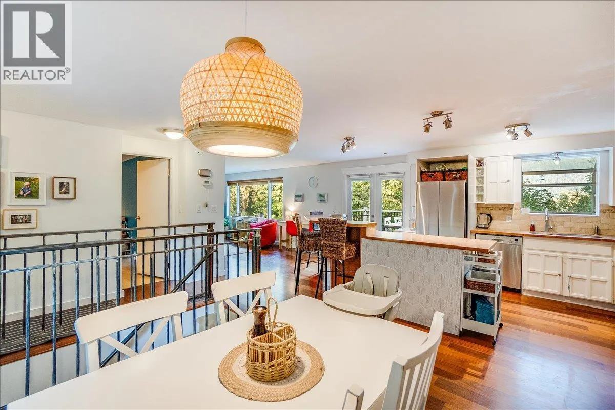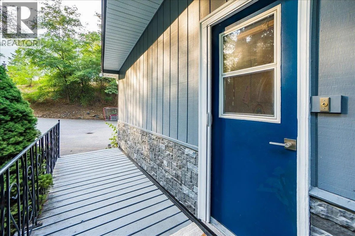 This well-kept 3-bedroom, 3-bath family home has been extensively updated and has a wonderful inviting feel. The main level features a spacious entry, a custom kitchen with a large island and breakfast bar, stainless steel appliances including a gas stove, and a living room highlighted by a stone fireplace. Mahogany hardwood floors, custom wrought iron railings, and quality finishes throughout add to its charm. The primary bedroom includes a 3-piece ensuite, with a second bedroom and a full bath completing the main floor. The lower level has been partially converted into a cozy two bedroom in-law suite with in suite washer & dryer, a walk-out glass door to a private deckâperfect for extended family or guests. Additional lower-level spaces include a family room, storage/laundry, and nook. Outside, enjoy decks, terraced yard with mature landscaping plus a paved driveway with an attached carport and detached single garage. Located close to beautiful beaches and 15 minutes from Nelson at Six Mile on the North shore. (id:27476)