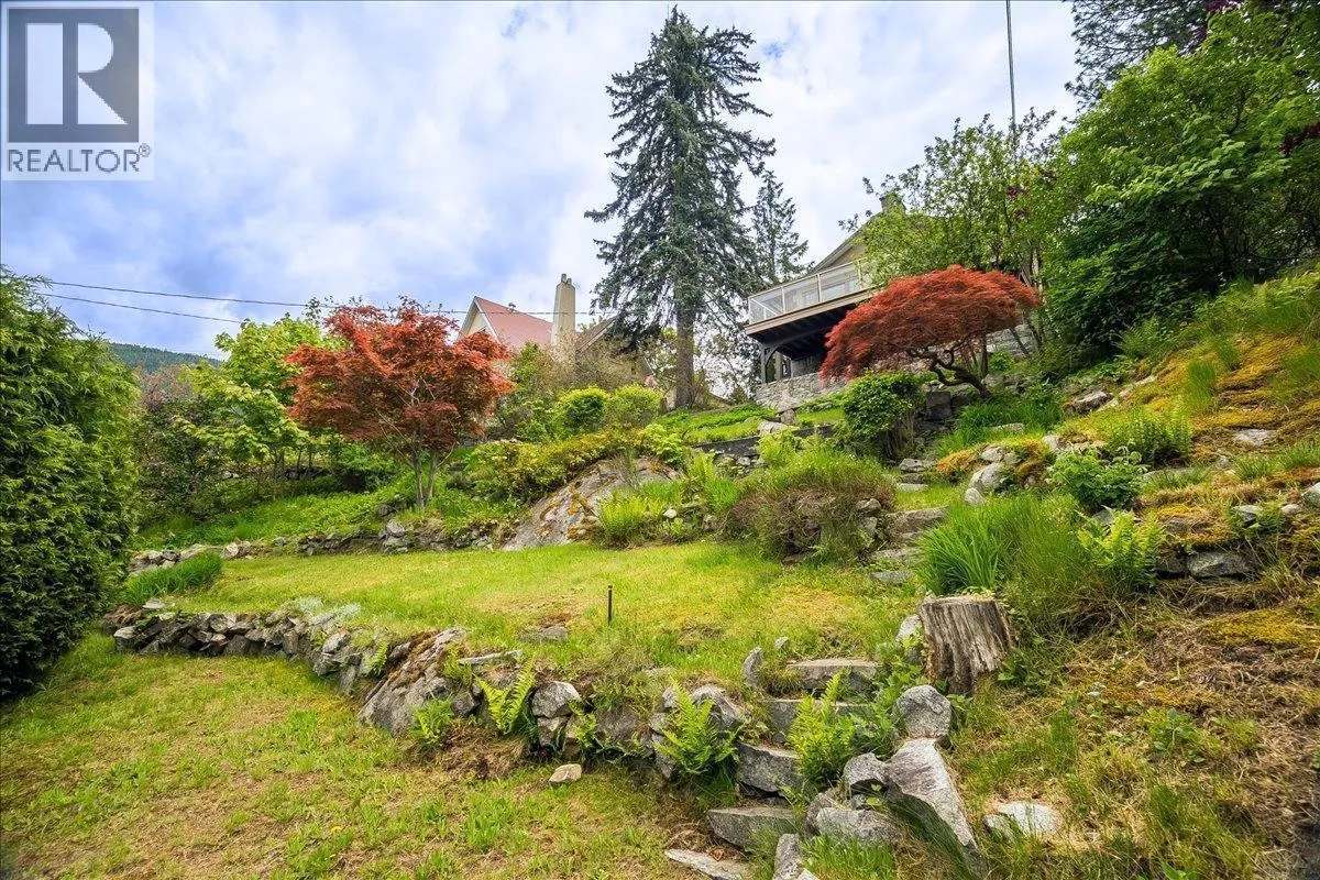 Welcome to one of Nelsonâs most iconic homes, perched high on the southern bluffs to capture a truly breathtaking panorama of mountain, lake, and city views. Tucked away on a rare, level cul-de-sac, this private 0.32 acre paradise offers the tranquillity of an alpine garden plus the convenience of a ten-minute walk to the city centre. The home has been extensively renovated, each and every detail invested with the utmost care and attention. Improvements include updated stucco and masonry, modernized perimeter drainage, custom steel gates and cedar fences, as well as a brand new furnace, boiler, and hot water tank, and an online security system. Enjoy your morning coffee on the flagstone patio under a magnificent white oak, then stroll down to a terraced oasis where a Japanese maple catches the rising sun, and the air is sweet with the scent of lilacs and yellow wisteria. Glance up at the tallest ponderosa in town as an osprey soars above it. And when winter comes, hunker down with a toddy in front of a roaring fire in the living room or the den. This is a home with something more - itâs a landmark, a legacy, and a lifestyle, and a once-in-a-lifetime opportunity. Book a showing today to experience all it has to offer! (id:27476)