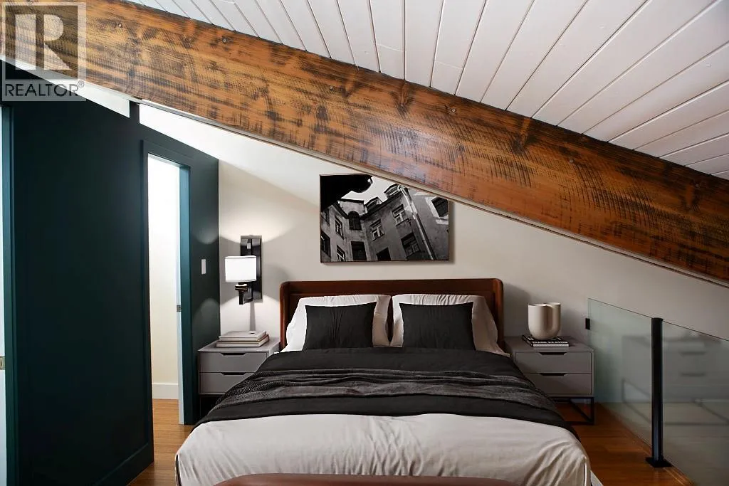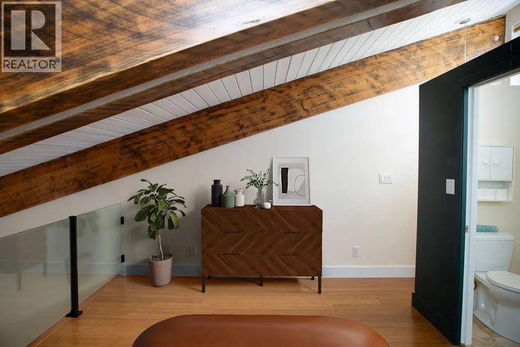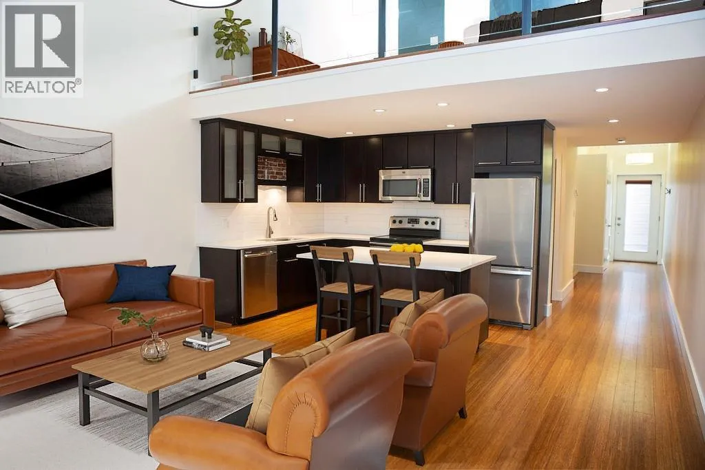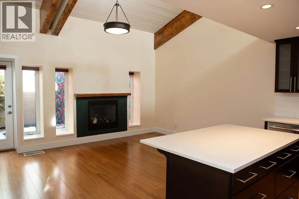Rarely available in sought-after Lower Fairview, this stylish 2-storey townhome offers the perfect blend of modern design and inviting comfort. Vaulted ceilings and an open-concept layout create a bright, airy living space that feels both elegant and welcoming. The kitchen showcases rich cherry cabinetry, quartz countertops, and beautiful bamboo flooring that flows seamlessly throughout the home. The living room is anchored by a cozy gas fireplace, creating the perfect setting for relaxing evenings. The main floor features a spacious bedroom, convenient in-suite laundry, and a full 4-piece bath. Upstairs, the loft-style primary retreat offers a walk-in closet and a private 3-piece ensuite, with great natural lighting and providing a peaceful escape at the end of the day. Step outside to your own private landscaped patio, ideal for morning coffee or intimate summer evenings. Complete with a 10x10 storage unit, this beautifully maintained Fairview home offers effortless, low-maintenance living in a location buyers are always waiting for. (id:27476)