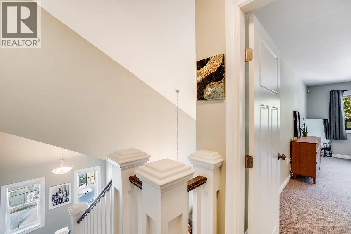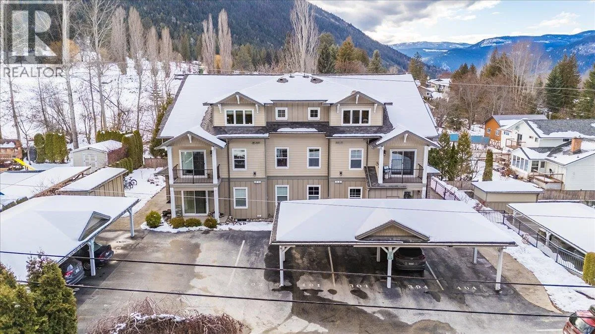 Perched high in Rosemont where the clouds drift below you, this bright and welcoming townhouse captures everything people love about living in Nelson. Step inside and the home opens upward â vaulted ceilings, natural light, and an airy open-concept main living space that feels both calm and inspiring. The living room invites you to settle in beside the fireplace, framed by a built-in wall unit perfect for books, art, and the pieces that make a house a home. Sliding glass doors lead to your covered deck, where morning coffee comes with mountain views and a glimpse of Kootenay Lake. The main level is warm and social, while the upper floor becomes a private retreat â a generous primary suite with a large bedroom, walk-in closet, ensuite, and bonus den ideal for a creative studio, nursery, or office. Directly across the street sits Art Gibbon Memorial Park â forest trails, bike and skate park, disc golf, and playground â a daily invitation to move, breathe, and connect. Granite Pointe Golf Course is next door, Rosemont Elementary and the neighborhood general store are just around the corner, and transit plus Selkirk College are minutes away. Two parking spaces (one covered) and a storage unit make life easy. This is a home for people who want to wake up to mountains, walk into the forest before dinner, and still be minutes from downtown â a perfect balance of nature, community, and comfort in one of Nelsonâs most loved neighbourhoods. (id:27476)