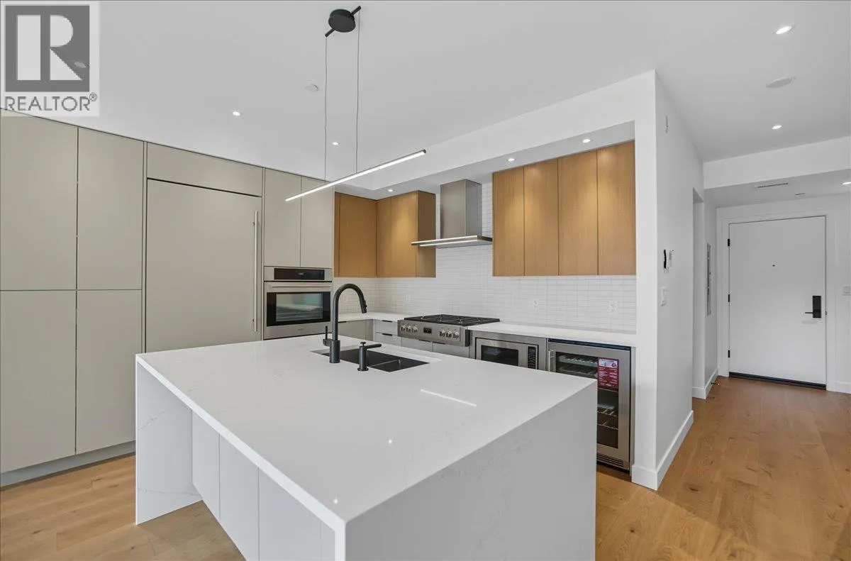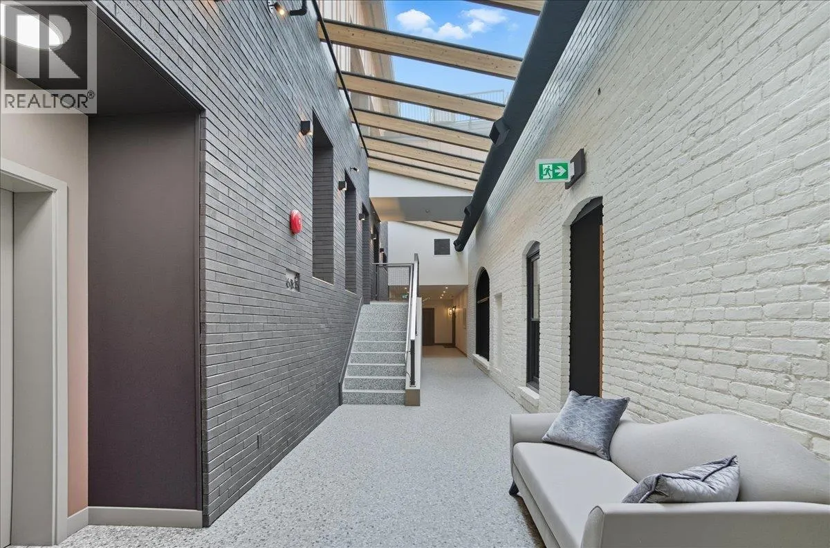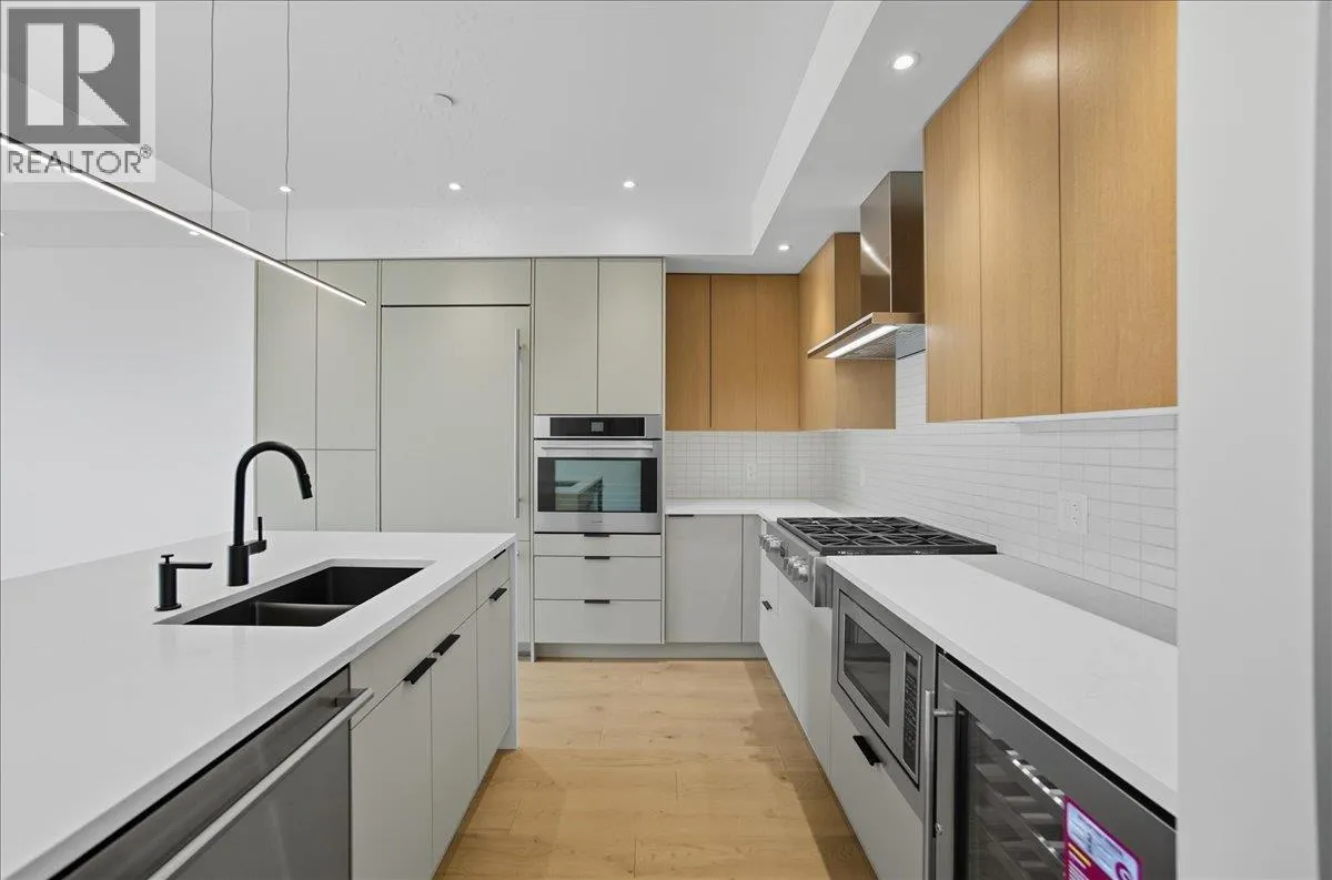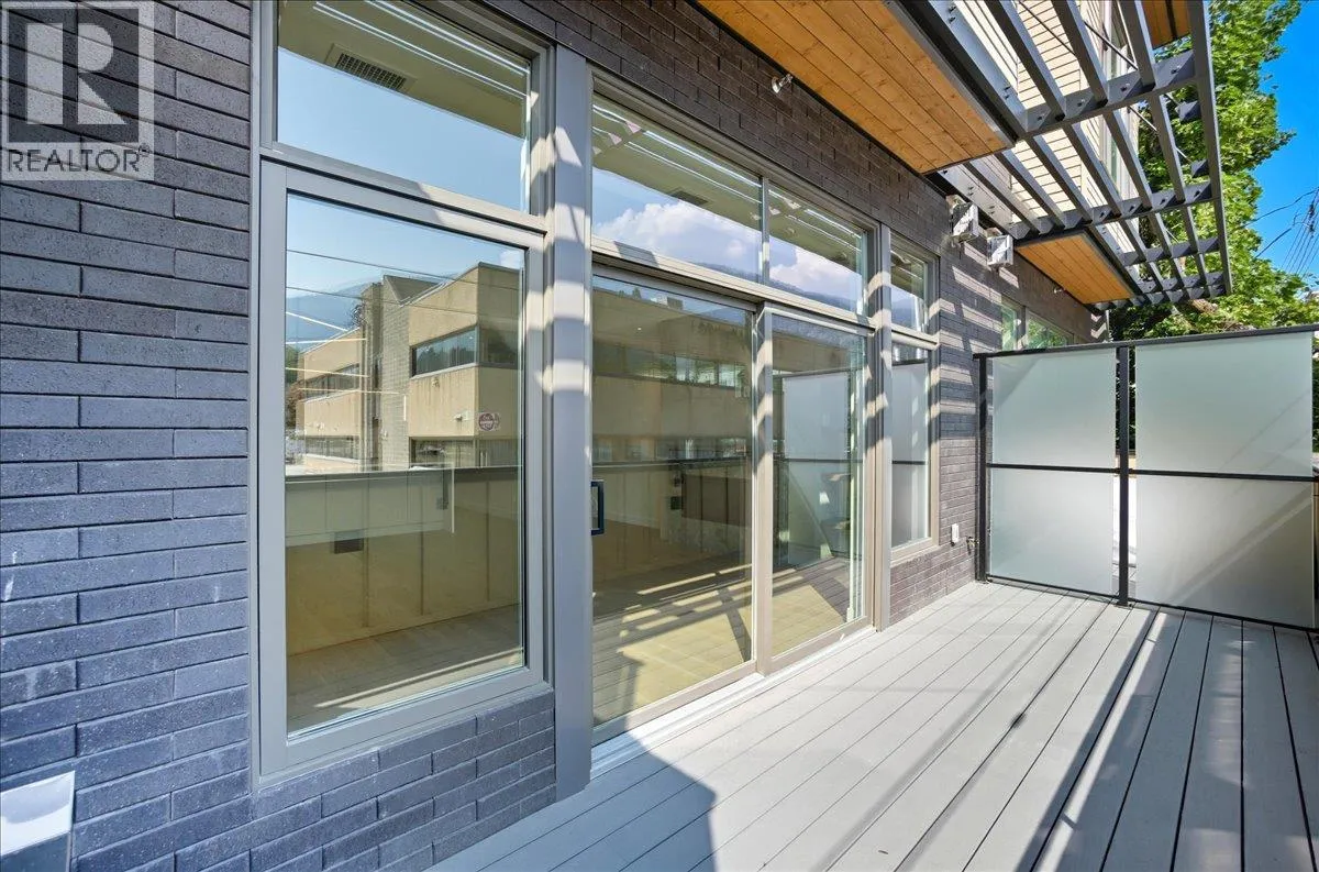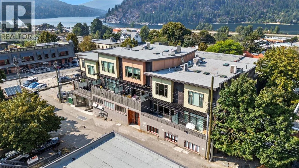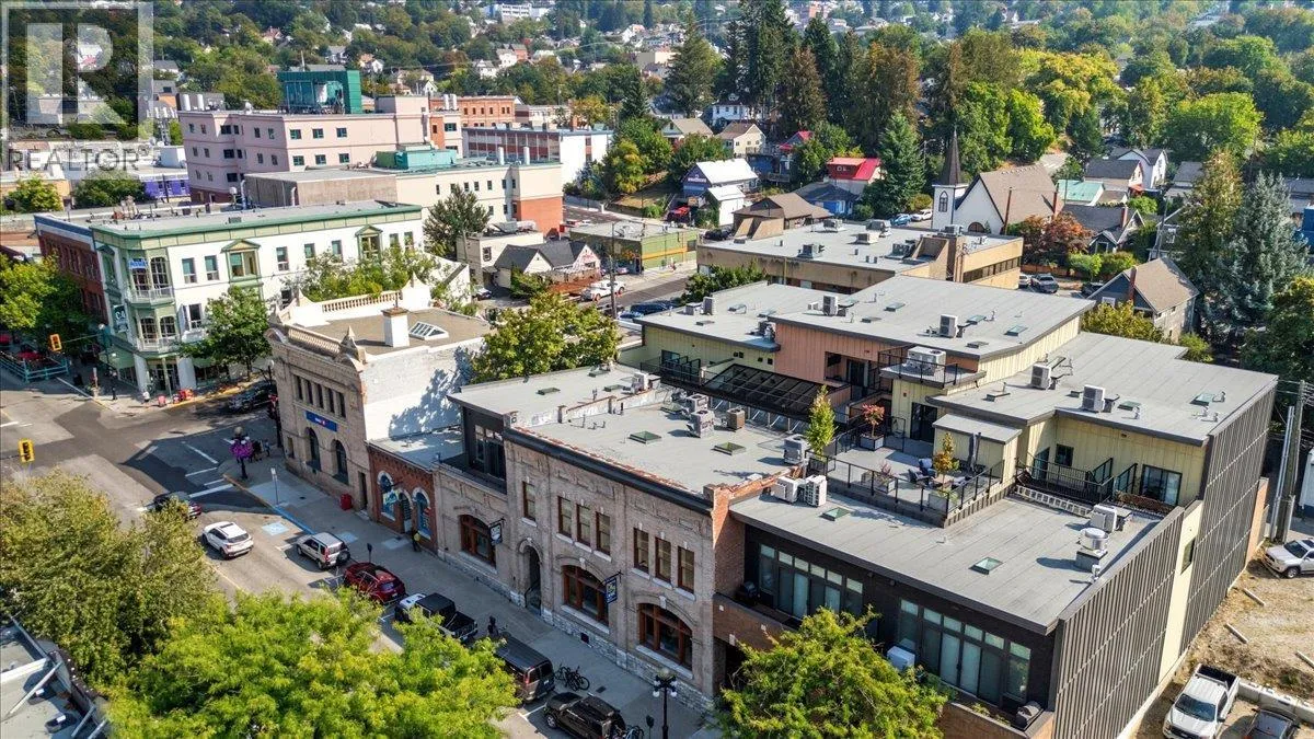 Welcome to Deane Terrace. One and two-storey homes, each with their own address and front door opening onto Deane Lane. A glass roof protects this light-filled brick-clad lane from the elements when you walk from the elevator to your front door. LAST ONE AVAILABLE!! This two-storey townhome is one of six residences on the south side of Deane Lane. The main floor is an open plan with an amazing kitchen, dining room, living room, utility room, powder room and pantry. The ten-foot ceilings allow vast windows to capture the light and glass doors open onto a south-facing terrace. The second floor hosts the master bedroom with ensuite, a second bedroom with its own bathroom, den, and a north-facing patio. The elegant finishing includes hardwood and tile floors, stone counters, gas fireplace plus high end appliances. The residences are on the second floor where homeowners will enjoy a private, more intimate living experience. 10 townhomes above the fray. This concept for downtown living, with few neighbours, and the thoughtful layout of each unique residence sets Deane Terrace apart from all other strata developments in Nelson. Each of the homes is a unique expression of Nelson's lifestyle. Whether it's the direction of the light through the windows, the views from your private terrace or the sun setting from the truly spectacular patio on the roof, you'll want to call Deane Terrace home. Secure parkade, a large storage locker, e-bike & e-vehicle charging station. QUICK POSSESSION!! (id:27476)