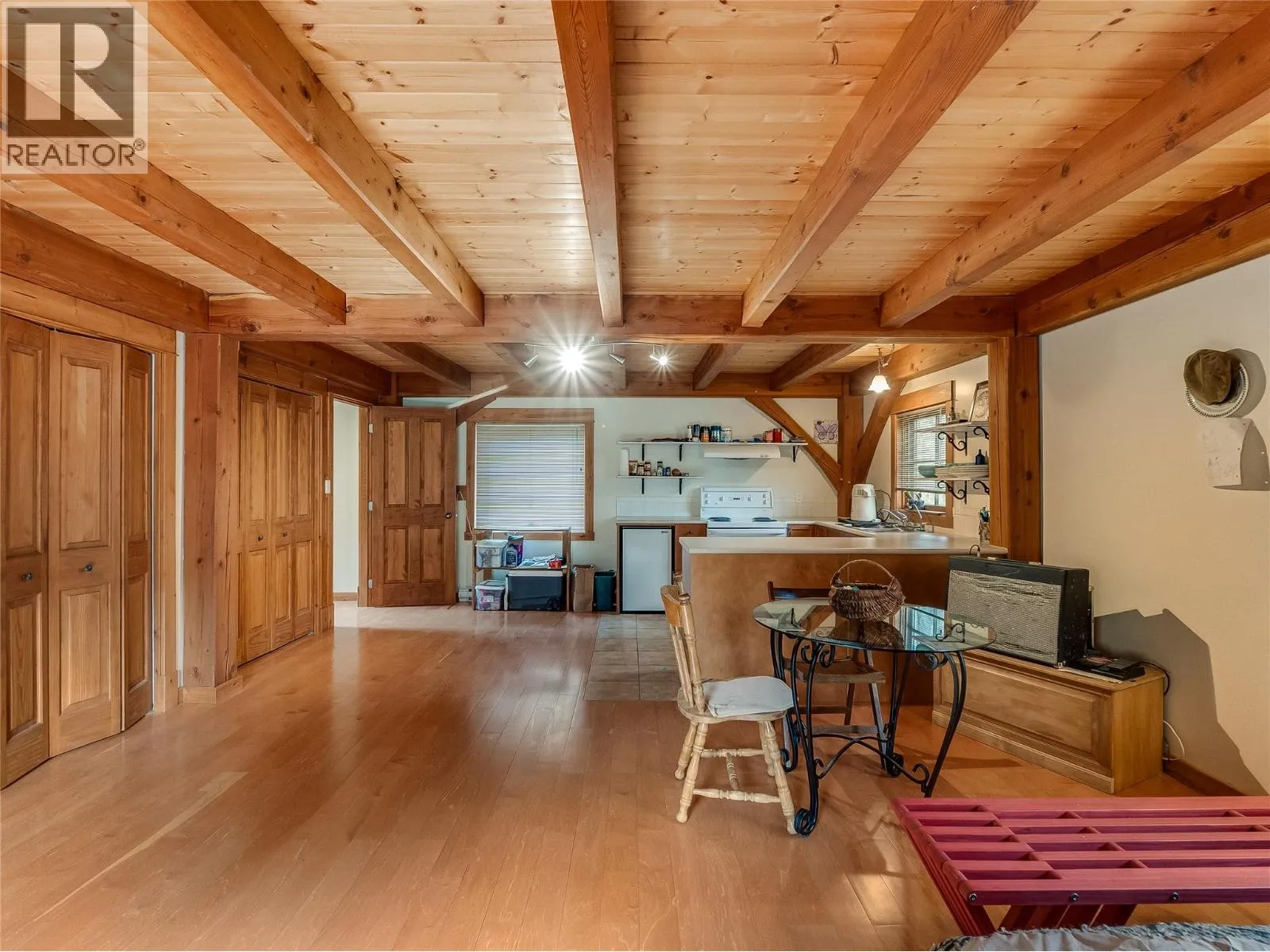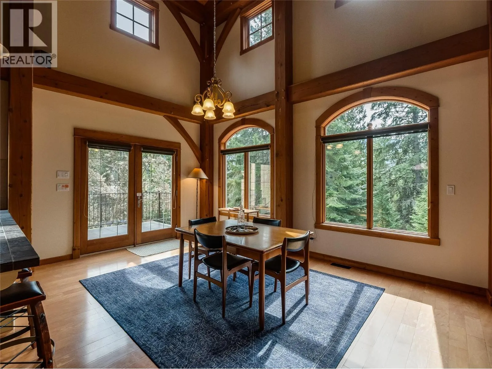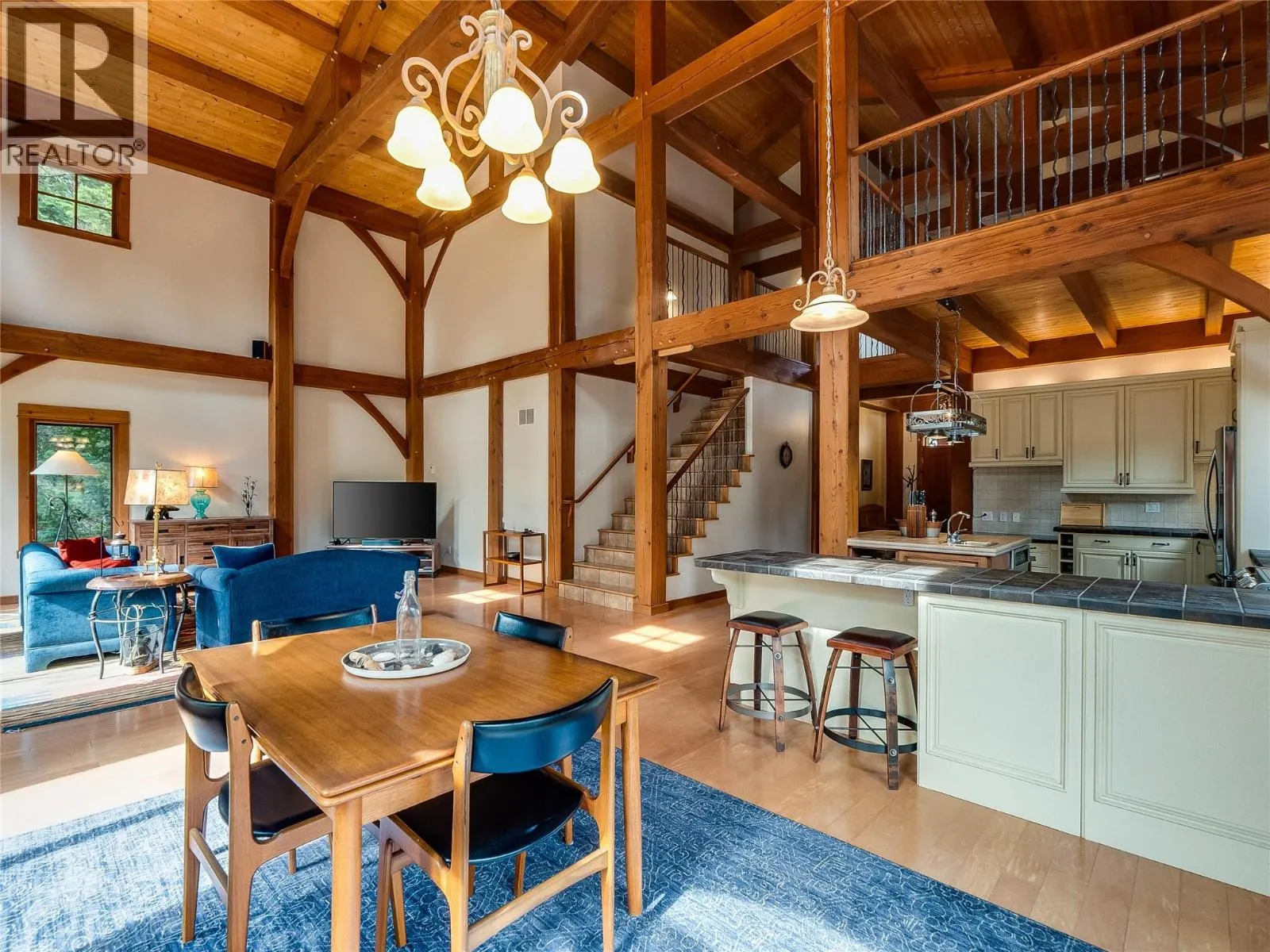 Welcome to 3179 Heddle Road. This custom crafted timber frame home features spectacular 24- foot vaulted ceilings and rests on a professionally landscaped, level, 1.25 acre lot 15 minutes from Nelson on the North Shore of Kootenay Lake. The home offers a well-designed open floor plan and plenty of living area that includes 5-6 bedrooms (three on the main floor), and 5 bathrooms, including a newly installed main-floor walk-in shower. The in-floor heating throughout has recently been updated from electric to gas. Quality finishes complement this post and beam structure with arched windows, hardwood and porcelain tile flooring throughout, and a gourmet kitchen with island open to the living and dining rooms, and main floor deck area, perfect for entertaining guests. There is a spacious double garage with a fully contained studio guest suite above, The backyard is an attractive outdoor living space, including stone patio, landscaped gardens and a forested area. Now priced lower than BC Assessment, this home offers outstanding value to a buyer looking for high quality finished space for a large or extended family, with the option to earn income from the secondary suite. (id:27476)