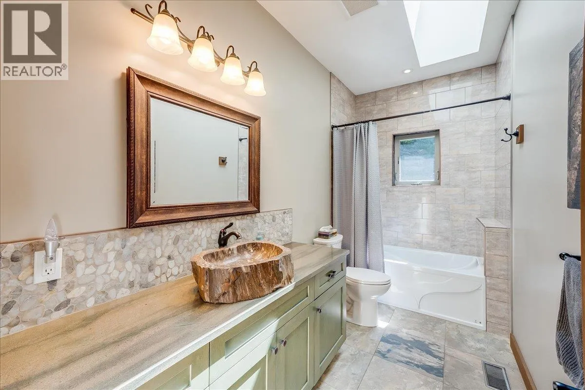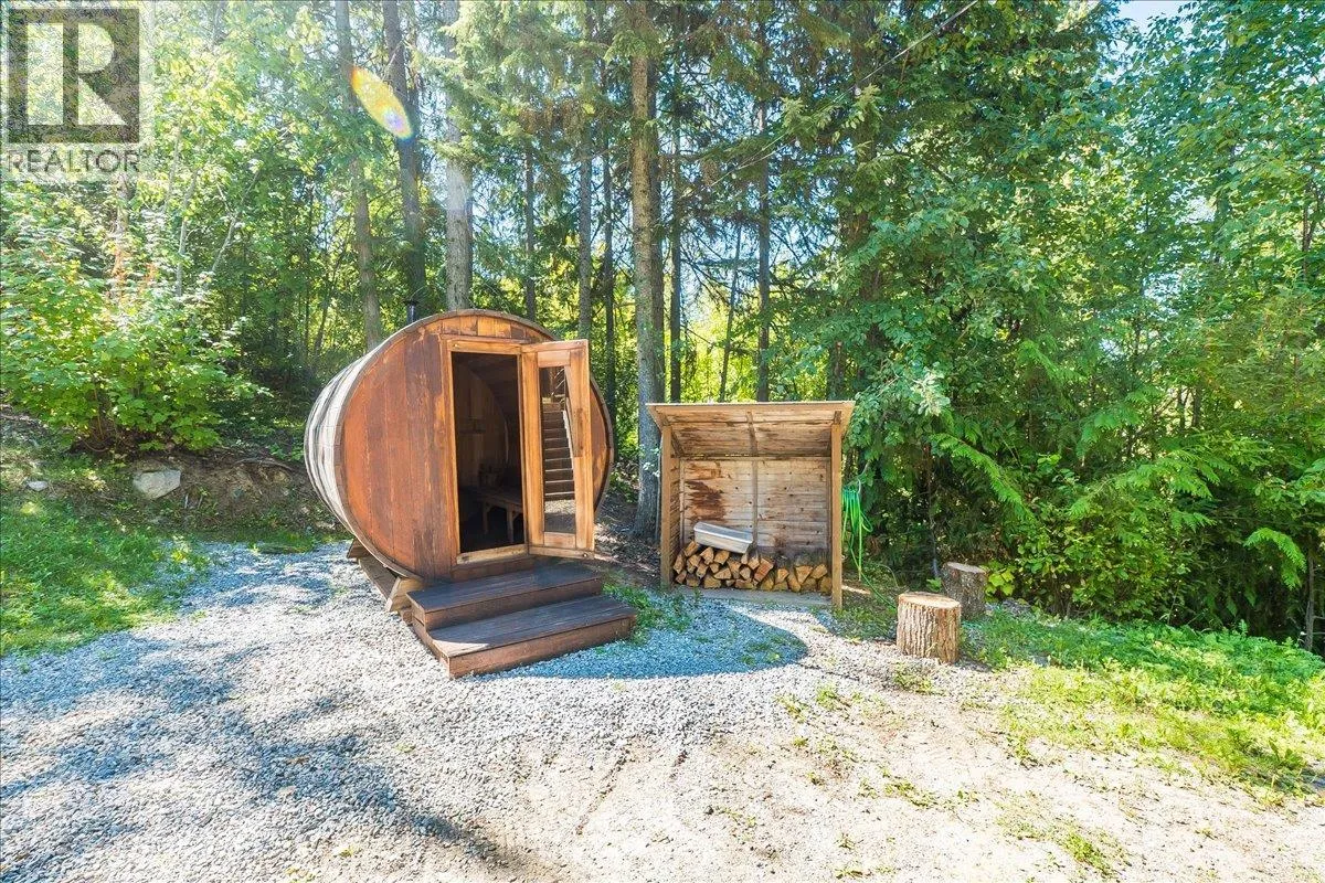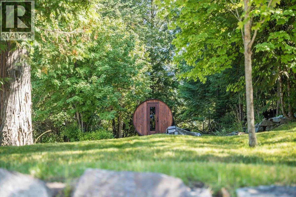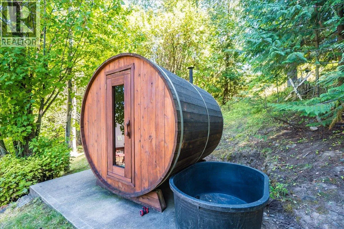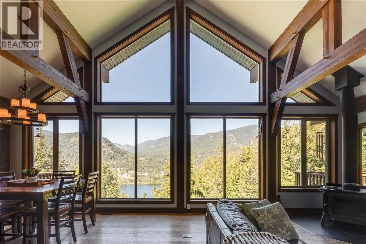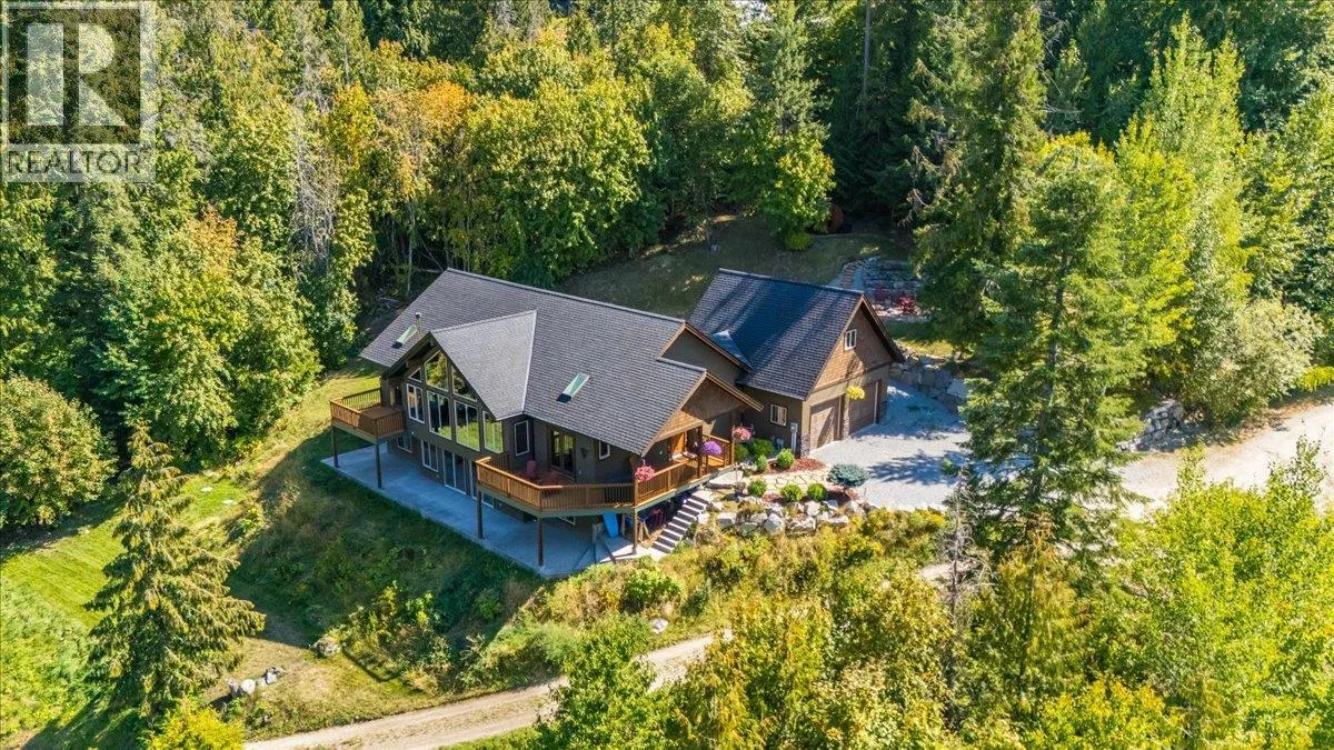 This custom 5-bedroom timber frame home, just 10 minutes outside of Nelson, B.C., offers rare privacy and stunning views of Kootenay Lake and surrounding mountains. Built with longevity in mind, it features locally sourced timber beams from Spearhead Timberworks, hickory flooring, slate tile, and abundant natural light through skylights in almost all the rooms on the main floor and large windows. The chefâs kitchen includes granite countertops, a propane range, and stainless steel appliances, opening to a spacious deck for seamless entertaining. The primary suite has a private deck, walk-through closet, and luxurious ensuite with a soaker tub, glass shower, and heated floors. The main level also has two more bedrooms, a full bathroom including heated floors and granite counter tops, and a well-equipped laundry room with garage access. The finished basement adds two more bedrooms (one is currently set up as a custom gym), a full bathroom with steam shower, rec room, media/games room, and storage. Outside features include a hot tub, fire pit, tiered rock landscaping, and a 6-person wood-fired sauna. A wonderful feature of this property is a separate quality-built income-generating Airbnb cabin, with its own sauna, fire pit, laundry, and lake views, ensures guest privacy. This location is a 30 minute drive to Whitewater Ski Resort and 5 Minutes to Taghum Beach. (id:27476)