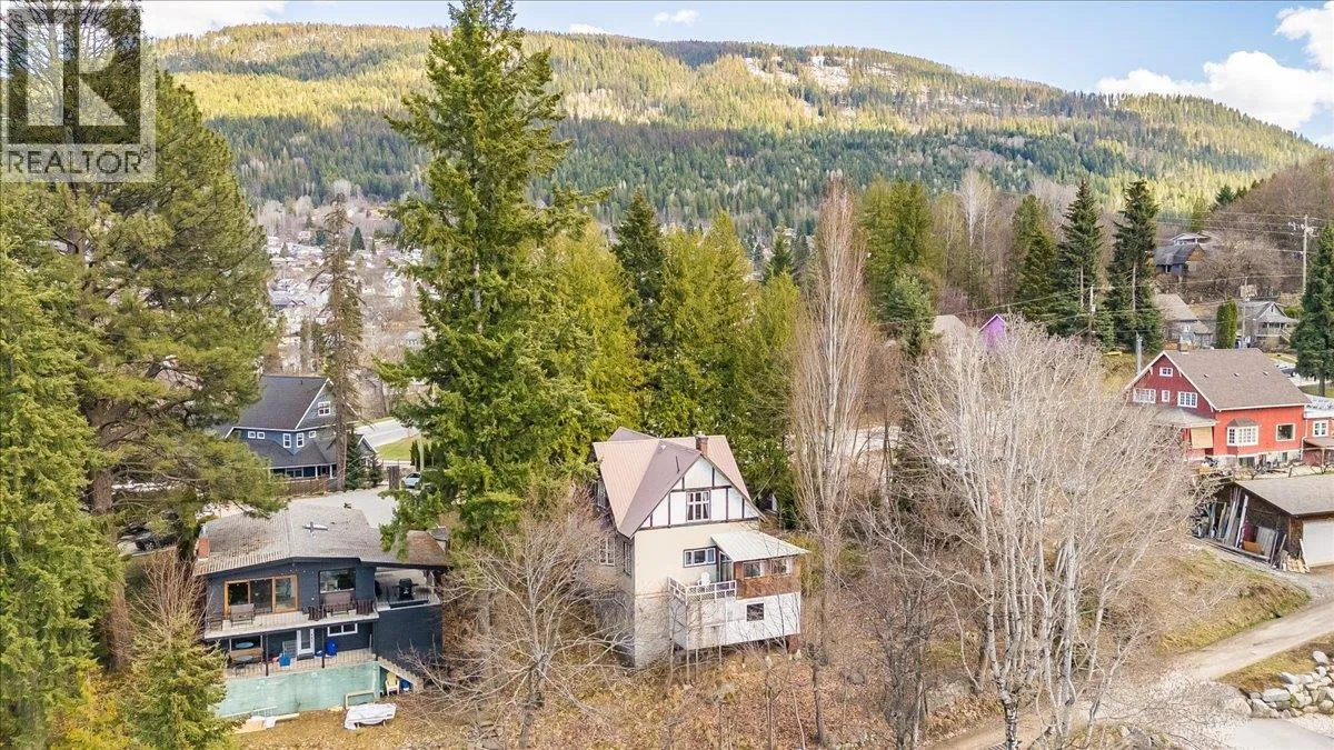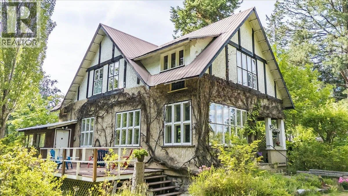 Tucked away on a generous, private lot at the end of a sunny cul-de-sac, this stately Craftsman-style home radiates timeless charm and historic character. Rich in original details, the home showcases gleaming hardwood floors with mahogany inlay, oak-paneled walls, and beautifully preserved doors and moldings that speak to its storied past. French doors add a touch of sophistication to this warm and inviting three-bedroom, two-bath residence. The spacious living room, complete with a classic fireplace, and an elegant formal dining room create ideal spaces for gatherings and entertaining. Upstairs, a large den offers flexibility and could easily be transformed into a fourth bedroom. Take in breathtaking lake and valley views from multiple vantage pointsâperfect for enjoying both sunrises and sunsets. Owned and lovingly maintained by the same family for over 50 years, the property includes two separately titled lots and a vacant road right-of-way, providing exceptional privacy. The detached double garage and striking stone entryway enhance the propertyâs functionality and curb appeal. Outside, discover serene heritage gardens and an expansive, flat front yardâan uncommon treasure in Nelsonâoffering room to play, relax, or entertain. Located in the Rosemont neighbourhood, this home is just a short stroll from schools, shopping, and amenities, with easy access year-round. This rare offering blends historic elegance and unmatched views. View today! (id:27476)