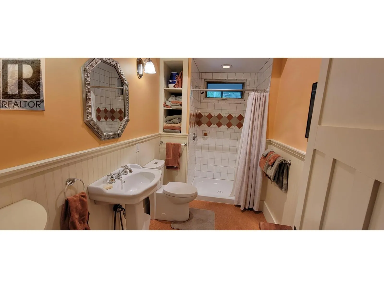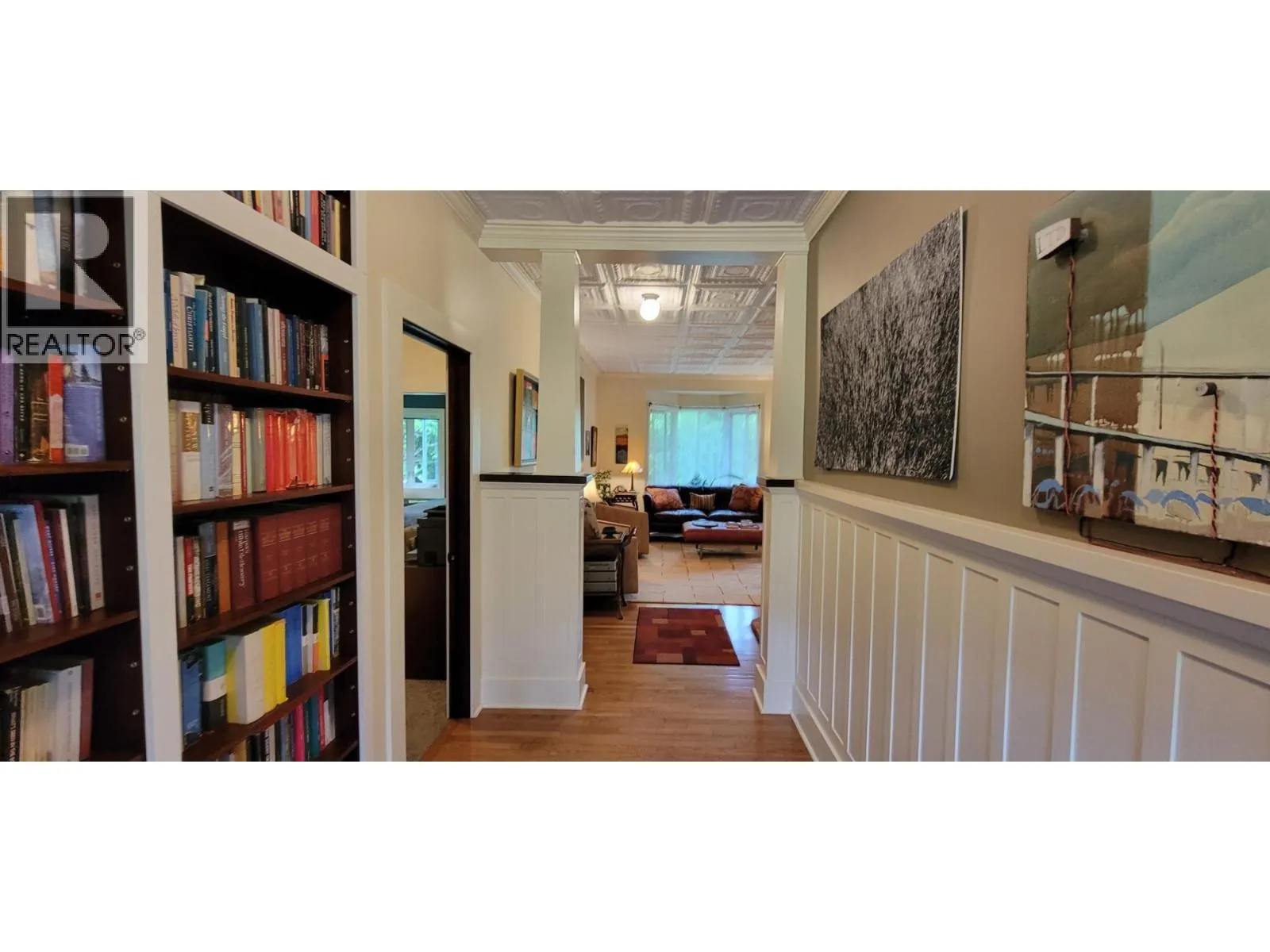 This renovated 1924 farmhouse, on a rural like 0.472 acre lot. Fruit trees, magnolia, new rose garden, lilac and azalea. Fenced garden area. Graceful & spacious with 3 bedrooms, 2.5 bathrooms with attached garage. Wrap-around screened-in veranda catches the morning sun. West-side deck has views of the Valhallas. Understated elegance of the main entrance (with barn-door closet and tall built-in bookshelves). Living area has high coffered ceilings, wainscoting, oak floors, pillars and bookshelves. Aesthetic living room wood stove . The kitchen contains locally crafted cabinets which match the original kitchen dresser, granite countertops, and pastry/bread counter, built-in chopping block, and a copper farm sink. The private master bedroom is off the main entrance hallway with walk-in closet, ensuite bath and king-sized bedroom with wrap-around, half silvered windows for privacy. From the dining room, is a short hallway to the 2 more bedrooms with full bath. One bedroom has private entrance to the veranda; the other has a large walk-in closet which can double as an office or bedroom. Laundry area with deep utility sink, leads to backyard or attached single car shop/garage with 2-piece bath for the gardener or studio occupant. A nearby, separate rebuilt studio was formerly the farm shop. Barn-wood wall and drywall on three sides. Completely wired and heated by a wood stove and electric. New air source heat pump. Licensed water from Malloy Springs for domestic and irrigation use. (id:27476)