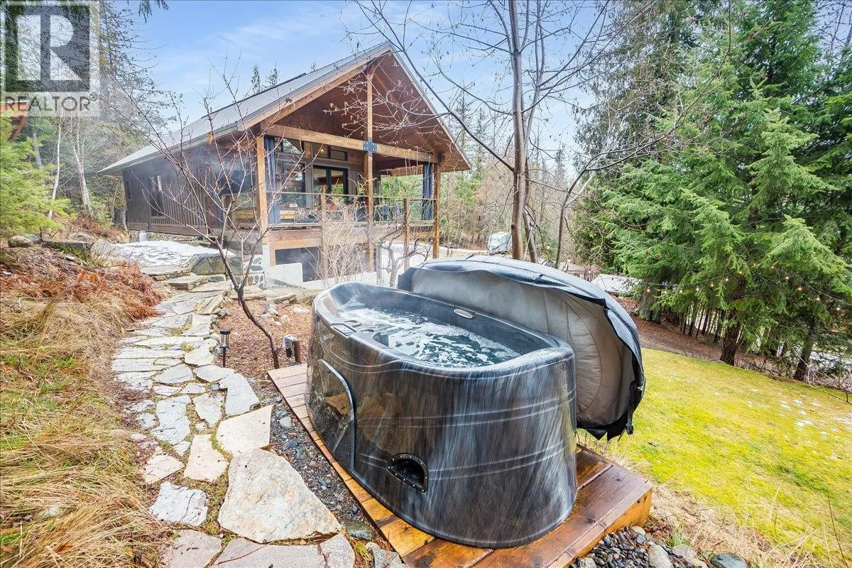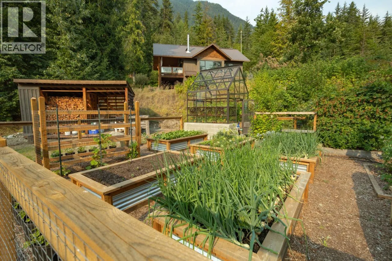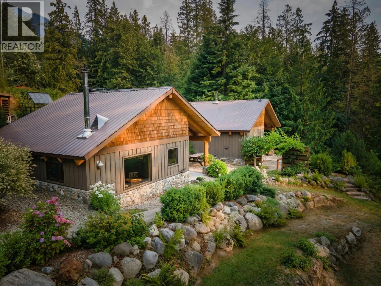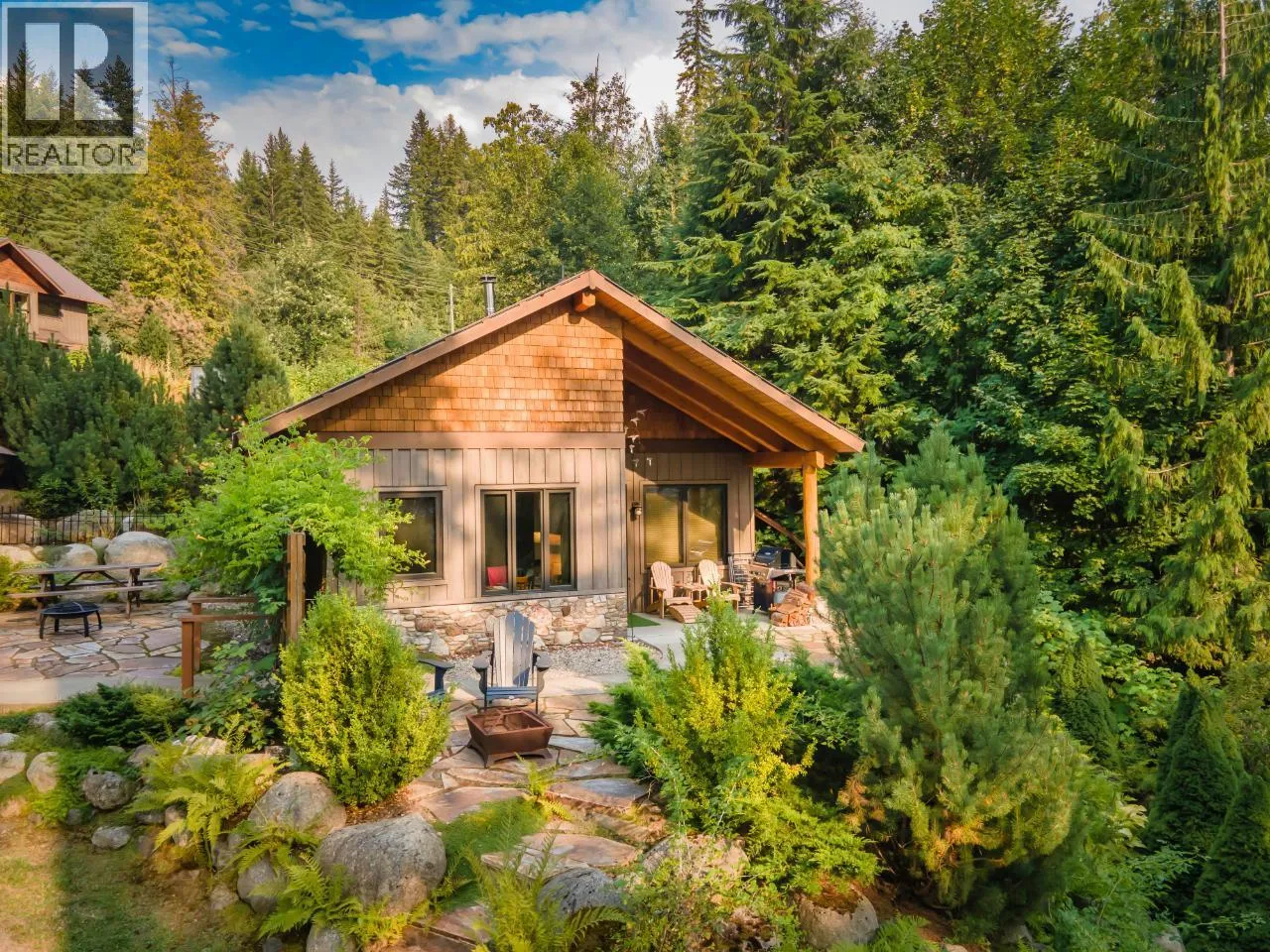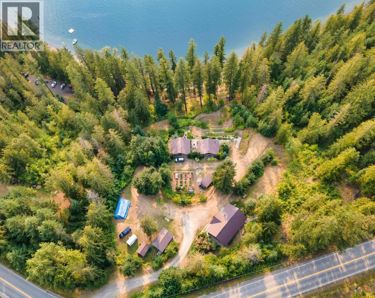 Beautiful 3.5+ acre dream-like waterfront property with 275 feet of gorgeous shoreline on Slocan Lake bordering the town of New Denver. The property includes a 1,578-square-foot two-story main residence, two vacation rental cabins, a new studio office, an RV site (or future building site that has a septic system in place). The main home has two bedrooms and two bathrooms, a 26 x 12 covered deck, a wood stove, an open floor plan, vaulted ceilings on the main floor, and a lower level walk-out, updated custom cabinetry and Murphy bed for guests, plus an attached carport. The two cabins (Freya & Loki) are well separated from the main home and are perched nicely to take in the views of Slocan Lake, New Denver Glacier, and the Valhalla Mountain Range. The beautiful hand-crafted cabins are very private, wheelchair accessible, have wood stoves, full kitchens, washers/dryers, and internet, and have provided great rental income. There is also a 24 x 16 detached garage, a 10 x 16 shed, a wood shed, a hot tub, a large fenced raised garden, and a greenhouse with a built-in root cellar. This property has been lovingly landscaped and there are numerous gardens, pathways, patios, and private lawn areas throughout. The 275 feet of waterfront bordering Bigelow Bay Regional Park is great for swimming, paddle boarding, and all other summer activities. (id:27476)