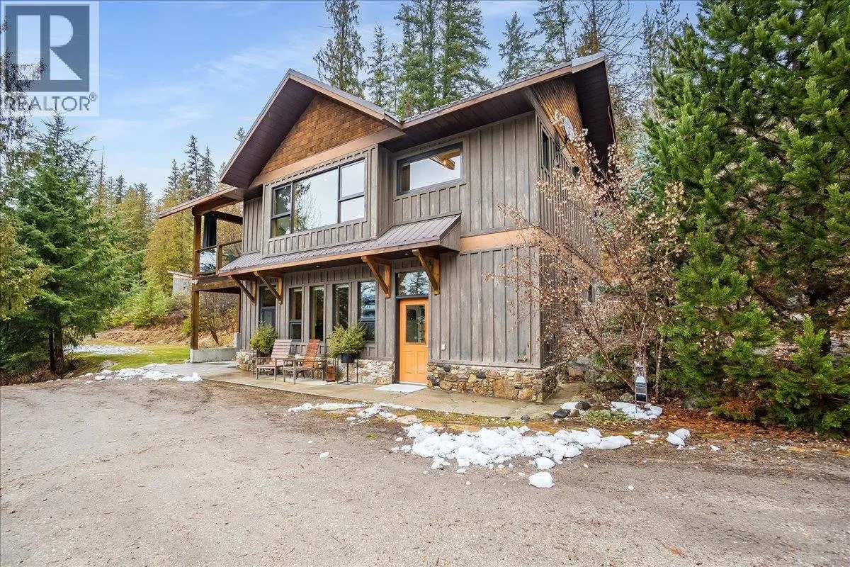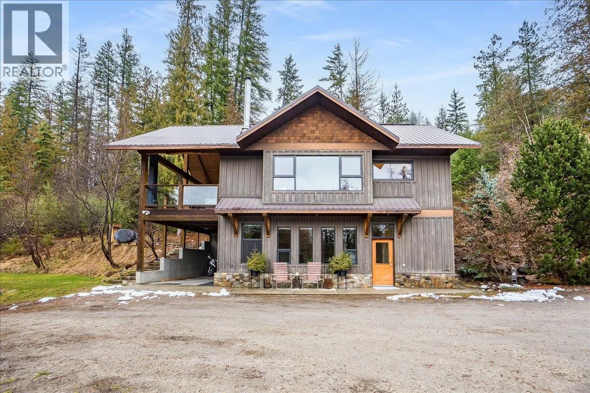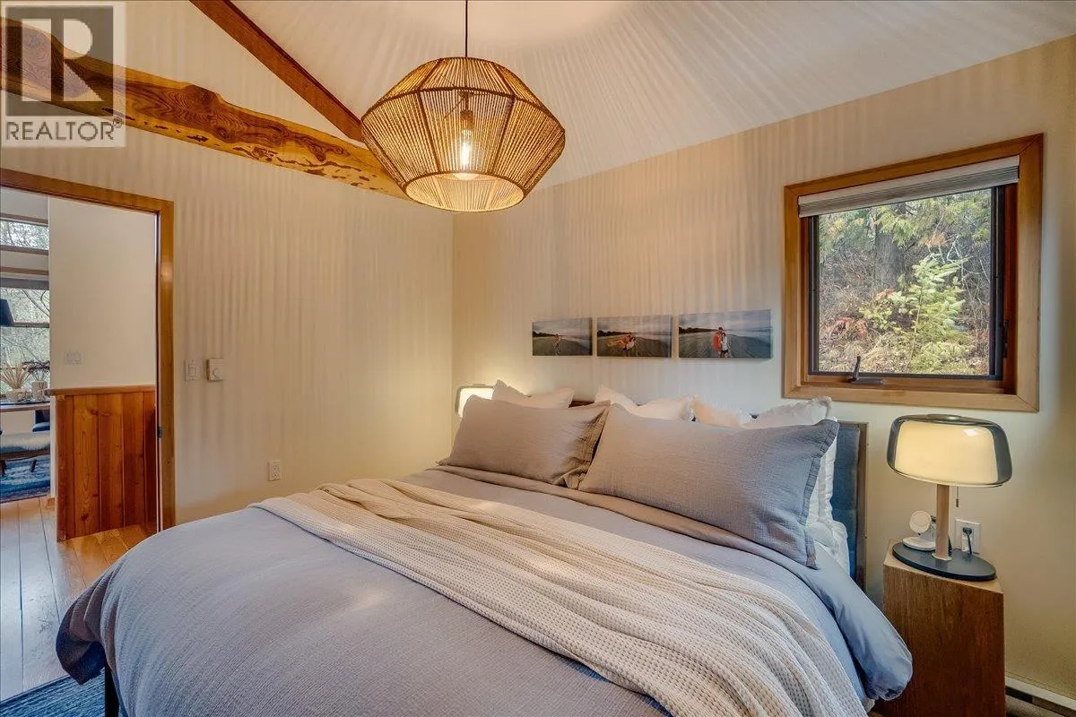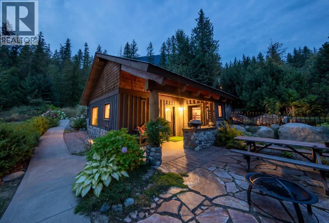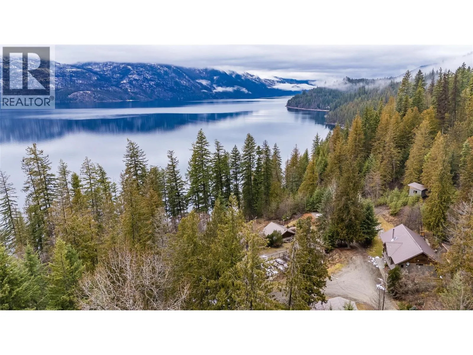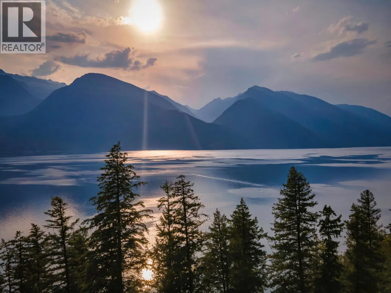 Beautiful 3.5+ acre dream-like waterfront property with 275 feet of gorgeous shoreline on Slocan Lake bordering the town of New Denver. The property includes a 1,578-square-foot two-story main residence, two vacation rental cabins, a new studio office, an RV site (or future building site that has a septic system in place). The main home has two bedrooms and two bathrooms, a 26 x 12 covered deck, a wood stove, an open floor plan, vaulted ceilings on the main floor, and a lower level walk-out, updated custom cabinetry and Murphy bed for guests, plus an attached carport. The two cabins (Freya & Loki) are well separated from the main home and are perched nicely to take in the views of Slocan Lake, New Denver Glacier, and the Valhalla Mountain Range. The beautiful hand-crafted cabins are very private, wheelchair accessible, have wood stoves, full kitchens, washers/dryers, and internet, and have provided great rental income. There is also a 24 x 16 detached garage, a 10 x 16 shed, a wood shed, a hot tub, a large fenced raised garden, and a greenhouse with a built-in root cellar. This property has been lovingly landscaped and there are numerous gardens, pathways, patios, and private lawn areas throughout. The 275 feet of waterfront bordering Bigelow Bay Regional Park is great for swimming, paddle boarding, and all other summer activities. (id:27476)