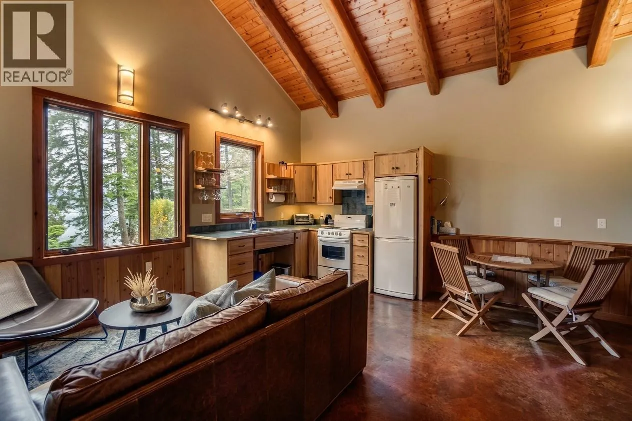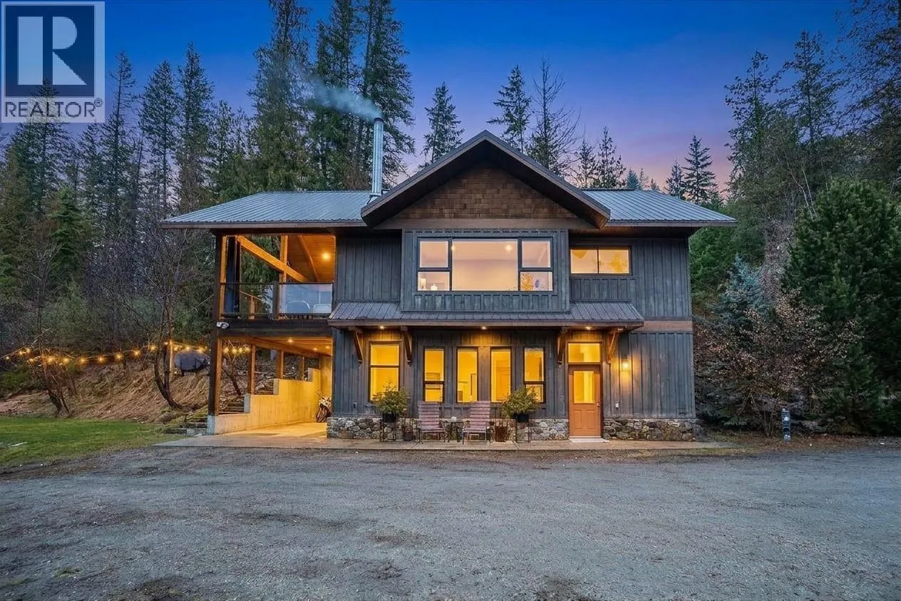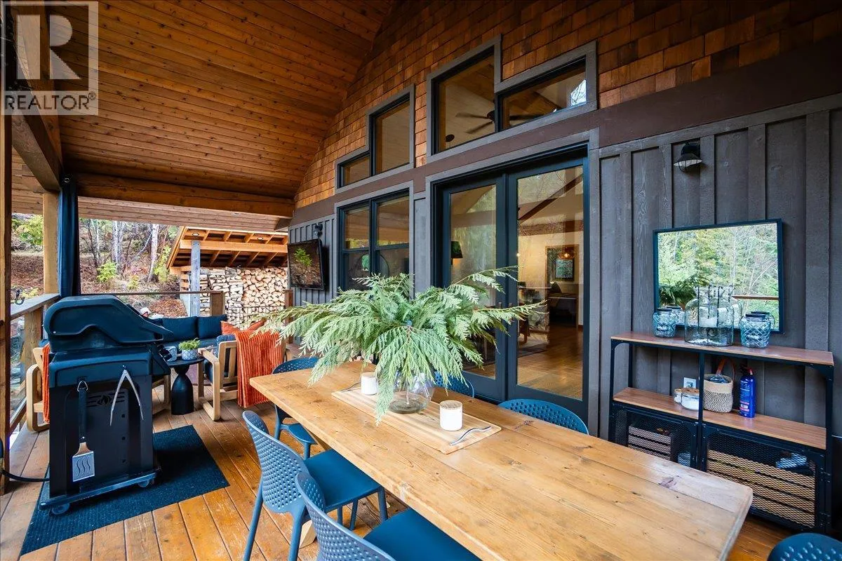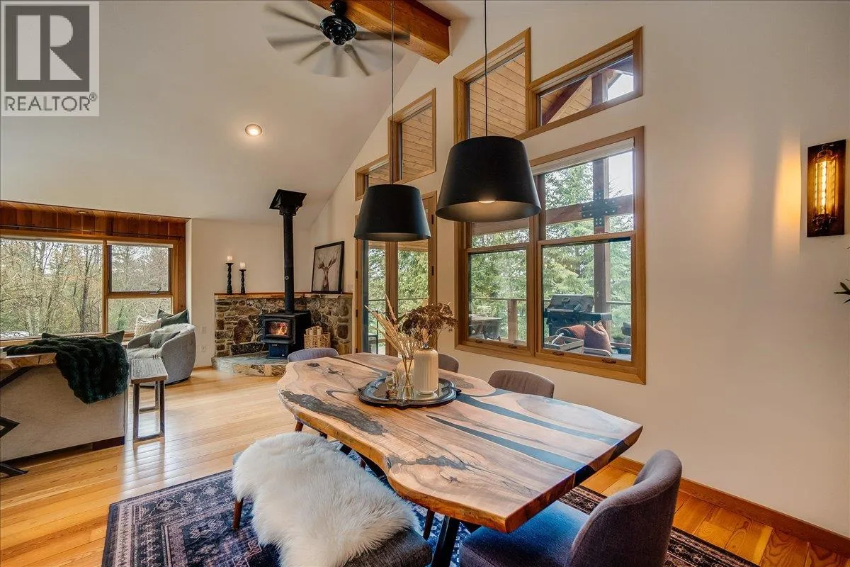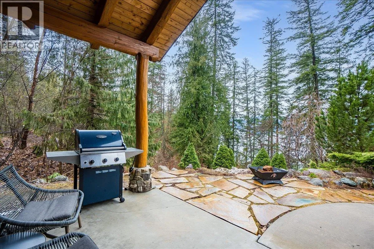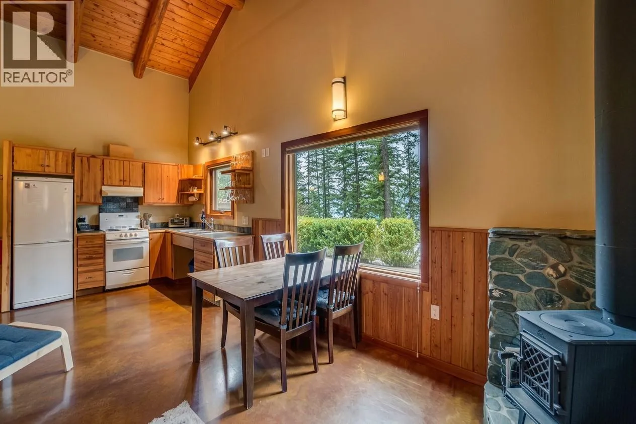 Beautiful 3.5+ acre dream-like waterfront property with 275 feet of gorgeous shoreline on Slocan Lake bordering the town of New Denver. The property includes a 1,578-square-foot two-story main residence, two vacation rental cabins, a new studio office, an RV site (or future building site that has a septic system in place). The main home has two bedrooms and two bathrooms, a 26 x 12 covered deck, a wood stove, an open floor plan, vaulted ceilings on the main floor, and a lower level walk-out, updated custom cabinetry and Murphy bed for guests, plus an attached carport. The two cabins (Freya & Loki) are well separated from the main home and are perched nicely to take in the views of Slocan Lake, New Denver Glacier, and the Valhalla Mountain Range. The beautiful hand-crafted cabins are very private, wheelchair accessible, have wood stoves, full kitchens, washers/dryers, and internet, and have provided great rental income. There is also a 24 x 16 detached garage, a 10 x 16 shed, a wood shed, a hot tub, a large fenced raised garden, and a greenhouse with a built-in root cellar. This property has been lovingly landscaped and there are numerous gardens, pathways, patios, and private lawn areas throughout. The 275 feet of waterfront bordering Bigelow Bay Regional Park is great for swimming, paddle boarding, and all other summer activities. (id:27476)
