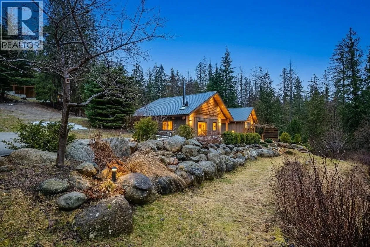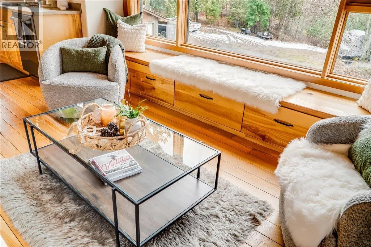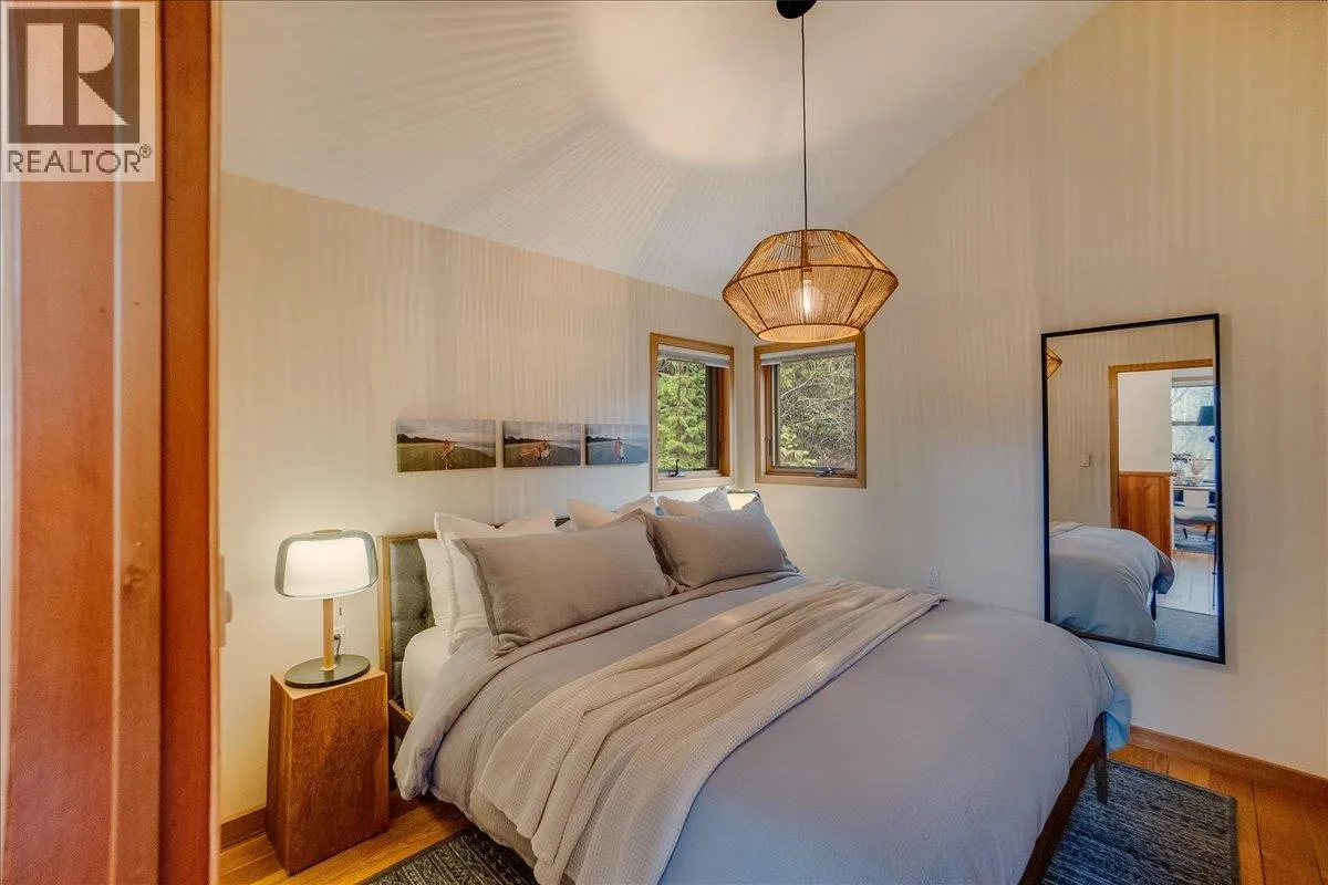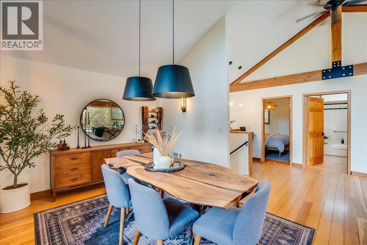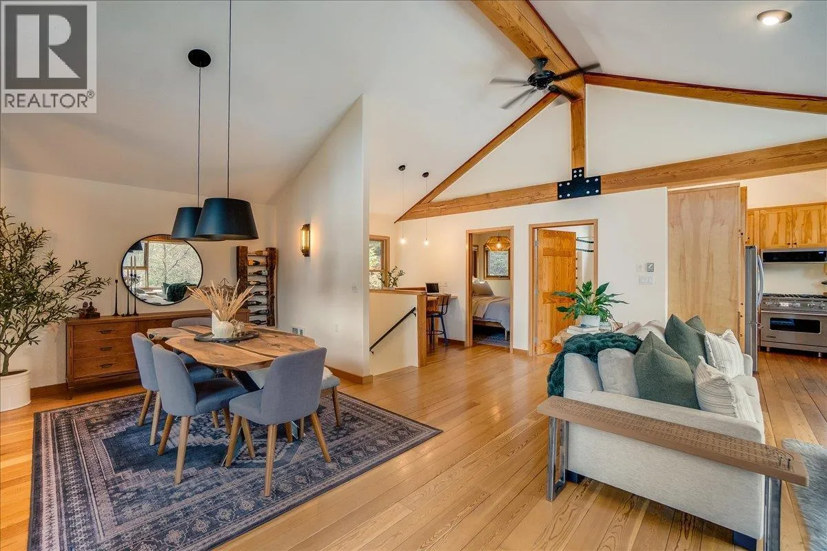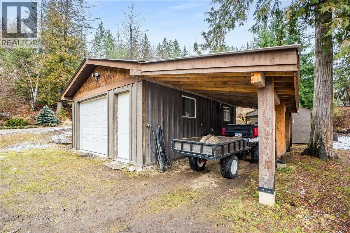 Beautiful 3.5+ acre dream-like waterfront property with 275 feet of gorgeous shoreline on Slocan Lake bordering the town of New Denver. The property includes a 1,578-square-foot two-story main residence, two vacation rental cabins, a new studio office, an RV site (or future building site that has a septic system in place). The main home has two bedrooms and two bathrooms, a 26 x 12 covered deck, a wood stove, an open floor plan, vaulted ceilings on the main floor, and a lower level walk-out, updated custom cabinetry and Murphy bed for guests, plus an attached carport. The two cabins (Freya & Loki) are well separated from the main home and are perched nicely to take in the views of Slocan Lake, New Denver Glacier, and the Valhalla Mountain Range. The beautiful hand-crafted cabins are very private, wheelchair accessible, have wood stoves, full kitchens, washers/dryers, and internet, and have provided great rental income. There is also a 24 x 16 detached garage, a 10 x 16 shed, a wood shed, a hot tub, a large fenced raised garden, and a greenhouse with a built-in root cellar. This property has been lovingly landscaped and there are numerous gardens, pathways, patios, and private lawn areas throughout. The 275 feet of waterfront bordering Bigelow Bay Regional Park is great for swimming, paddle boarding, and all other summer activities. (id:27476)