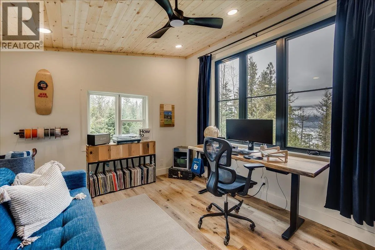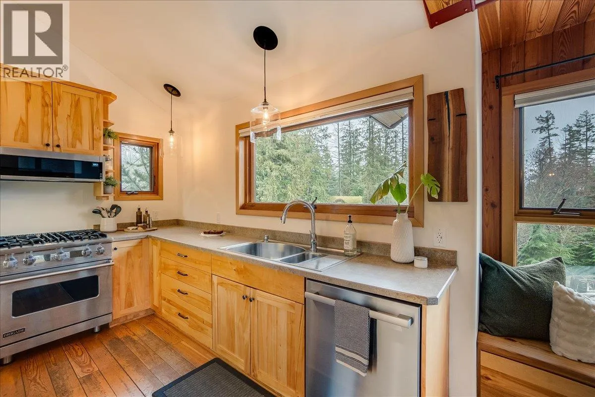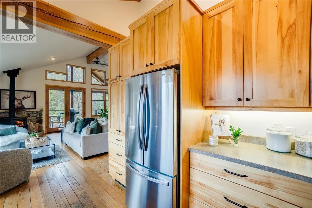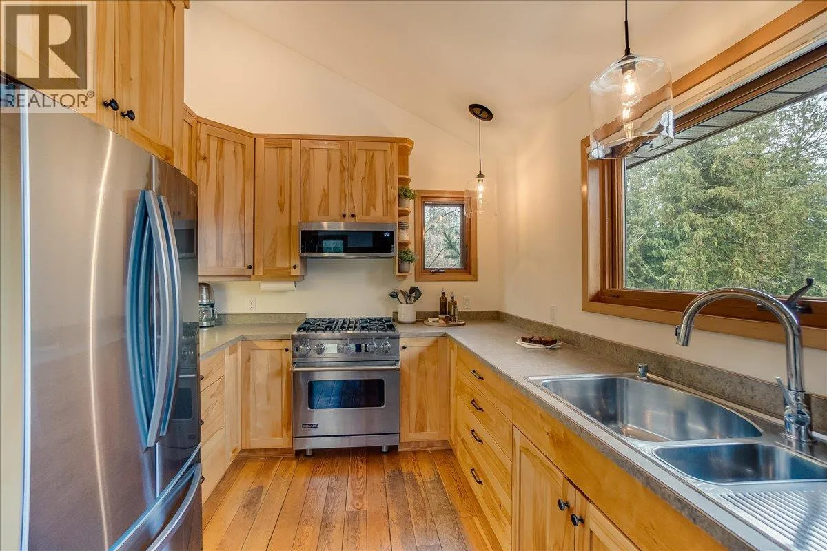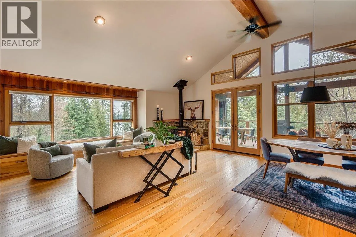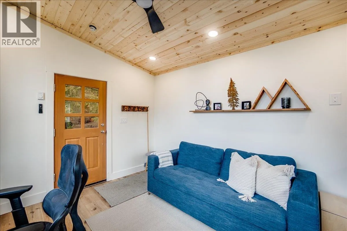 Beautiful 3.5+ acre dream-like waterfront property with 275 feet of gorgeous shoreline on Slocan Lake bordering the town of New Denver. The property includes a 1,578-square-foot two-story main residence, two vacation rental cabins, a new studio office, an RV site (or future building site that has a septic system in place). The main home has two bedrooms and two bathrooms, a 26 x 12 covered deck, a wood stove, an open floor plan, vaulted ceilings on the main floor, and a lower level walk-out, updated custom cabinetry and Murphy bed for guests, plus an attached carport. The two cabins (Freya & Loki) are well separated from the main home and are perched nicely to take in the views of Slocan Lake, New Denver Glacier, and the Valhalla Mountain Range. The beautiful hand-crafted cabins are very private, wheelchair accessible, have wood stoves, full kitchens, washers/dryers, and internet, and have provided great rental income. There is also a 24 x 16 detached garage, a 10 x 16 shed, a wood shed, a hot tub, a large fenced raised garden, and a greenhouse with a built-in root cellar. This property has been lovingly landscaped and there are numerous gardens, pathways, patios, and private lawn areas throughout. The 275 feet of waterfront bordering Bigelow Bay Regional Park is great for swimming, paddle boarding, and all other summer activities. (id:27476)