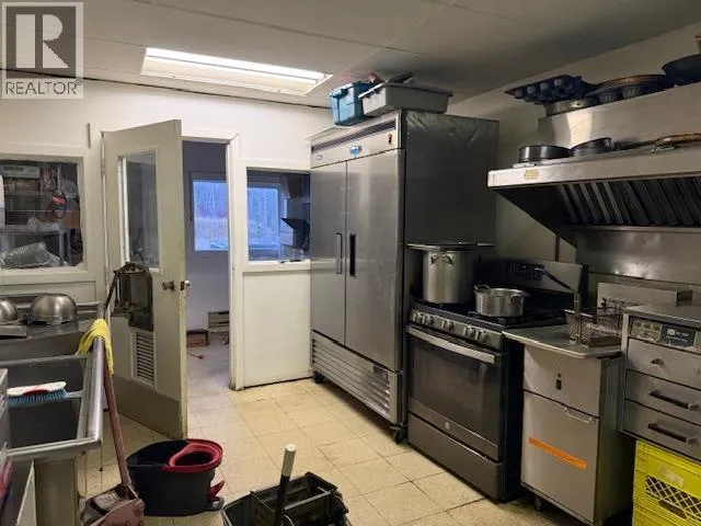 Older 3,600 sq. ft. building on Hwy 16 through-way in New Hazelton. Building has operated in three sections. The Owner ran a Chicken & Chips / Fish & Chips take-out in the main unit, a 25' X 32' kitchen & take-out section w/ storage and delivery bay in the back. All kitchen equipment (5 years old) is included in purchase price. The adjoining unit with connecting doorway and separate outdoor entry was rented out as a retail 2nd hand store but could be used for a dining room to complement the working kitchen. The 3rd unit 20 x 47 with its own washroom again with adjoining door and separate outdoor entry needs some renovations and could be used as a separate rental unit. Building will sell "AS IS WHERE IS". (id:27476)