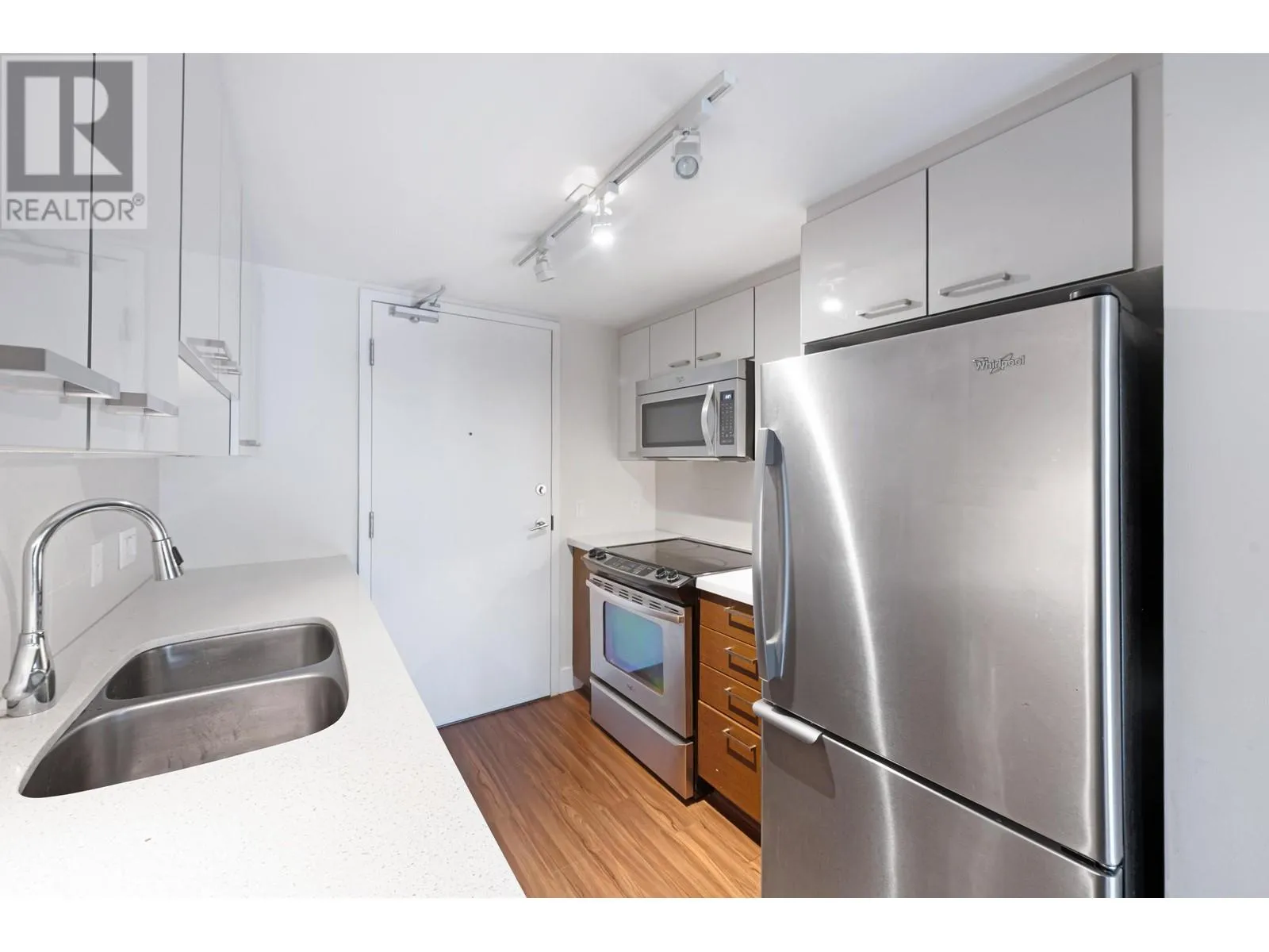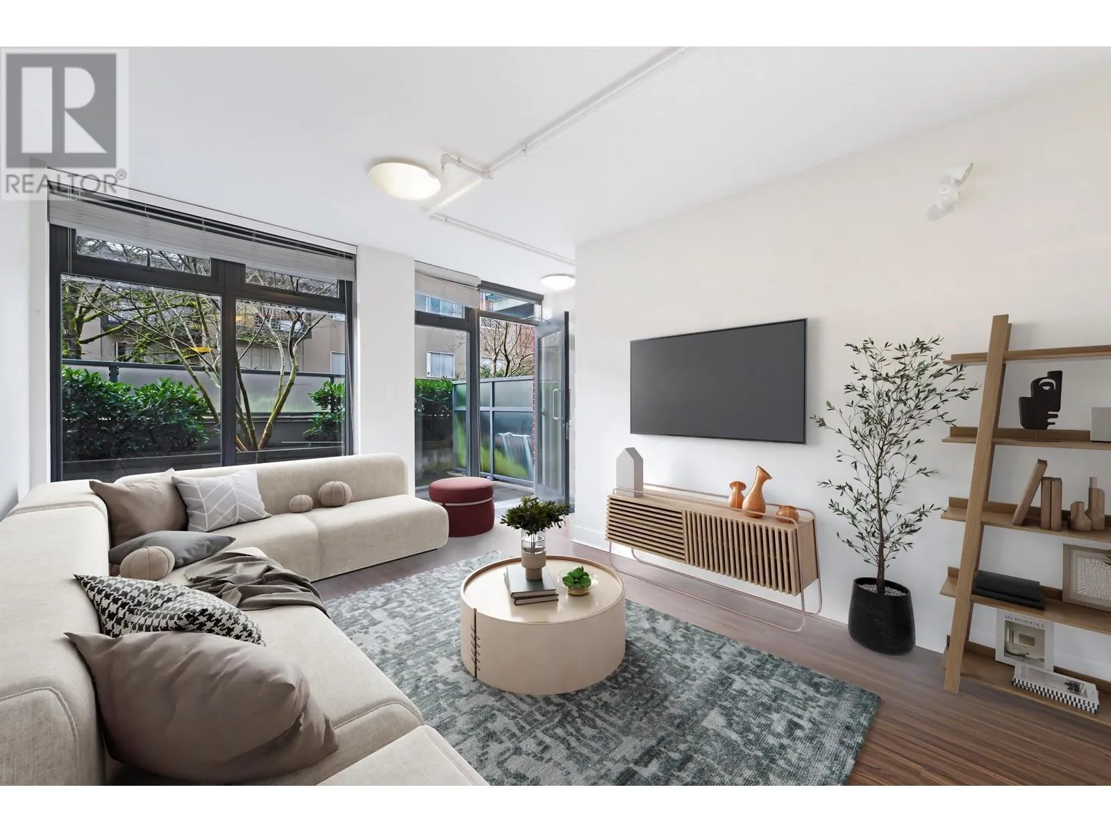 *LIVE/WORK* Modern two-level residence perfect for professionals. Upper floor features pristine contemporary kitchen (stone countertops, stainless appliances), 3-piece bath, and west patio. Lower level offers flexible space with glass-partitioned office/boardroom, easily convertible to bedroom configurations. Includes 2-piece bath and laundry. Both levels have separate entrances and west-facing patios. one parking spot, two storage lockers. Residential zoning ensures simple financing. Ideal for those seeking work-from-home lifestyle without storefront presence. (id:27476)