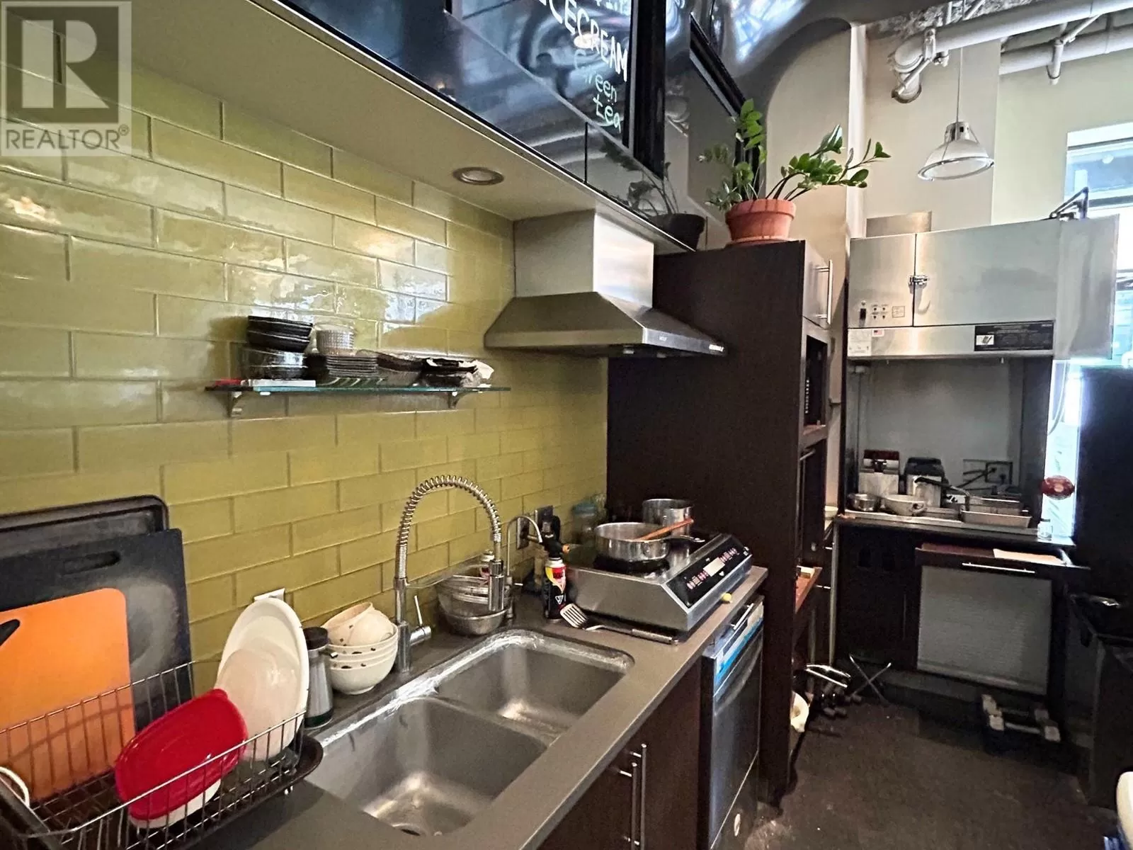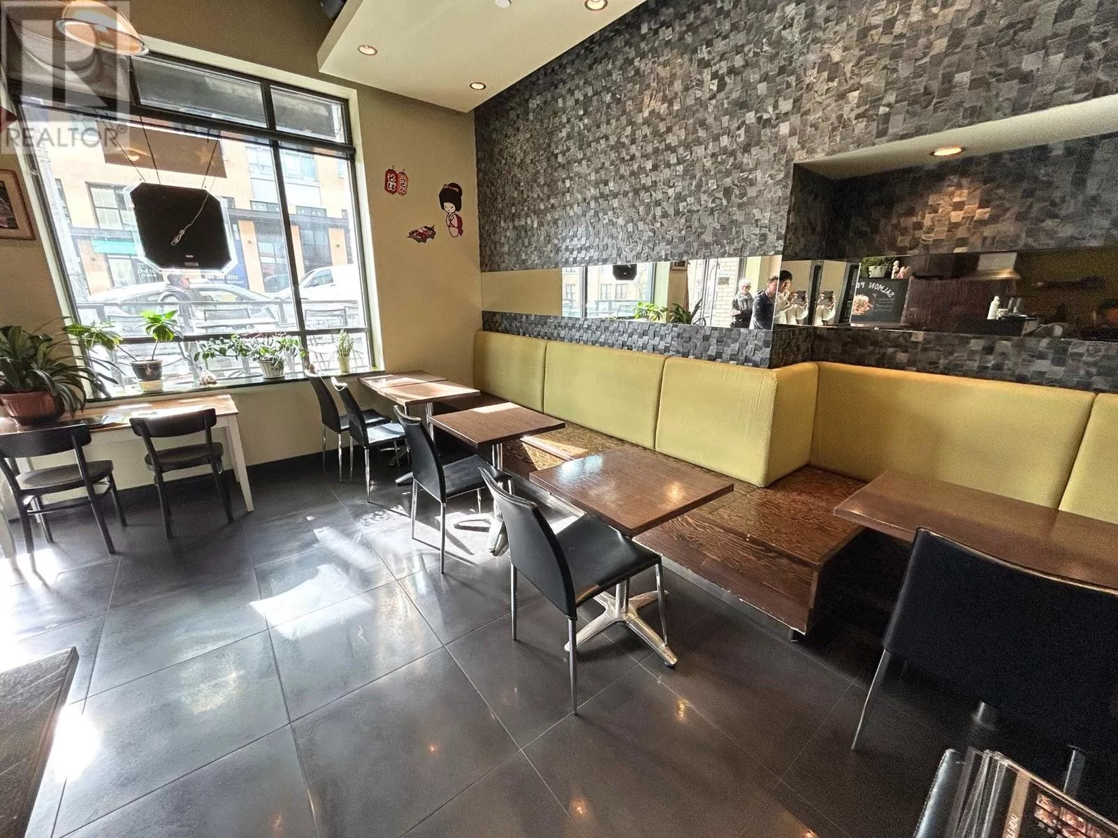 *Showing by appointment only, do not disturb staff. * This 973 sqft restaurant space offers a prime location on the ground floor of a high-rise built by BOSA, surrounded by residential condo buildings, a college, and a SkyTrain station, ensuring steady foot traffic. The next building is a police station, and a provincial court is nearby, further contributing to the area' s consistent activity. The space features an award-winning interior design, a ventless hood system, a liquor license, and an 80 sqft patio, ideal for a sushi restaurant or easily adaptable for a poke bar, sandwich shop, Vietnamese sub restaurant, Indian cuisine, coffee shop, bubble tea cafe, or other quick service concepts. With no demolition clause and a new 3+3 year lease available, this is a secure, long-term investment. Located on a high visibility, busy street, this space offers strong growth potential with the opportunity to integrate delivery app services, expanding the customer base beyond walk-in traffic. (id:27476)