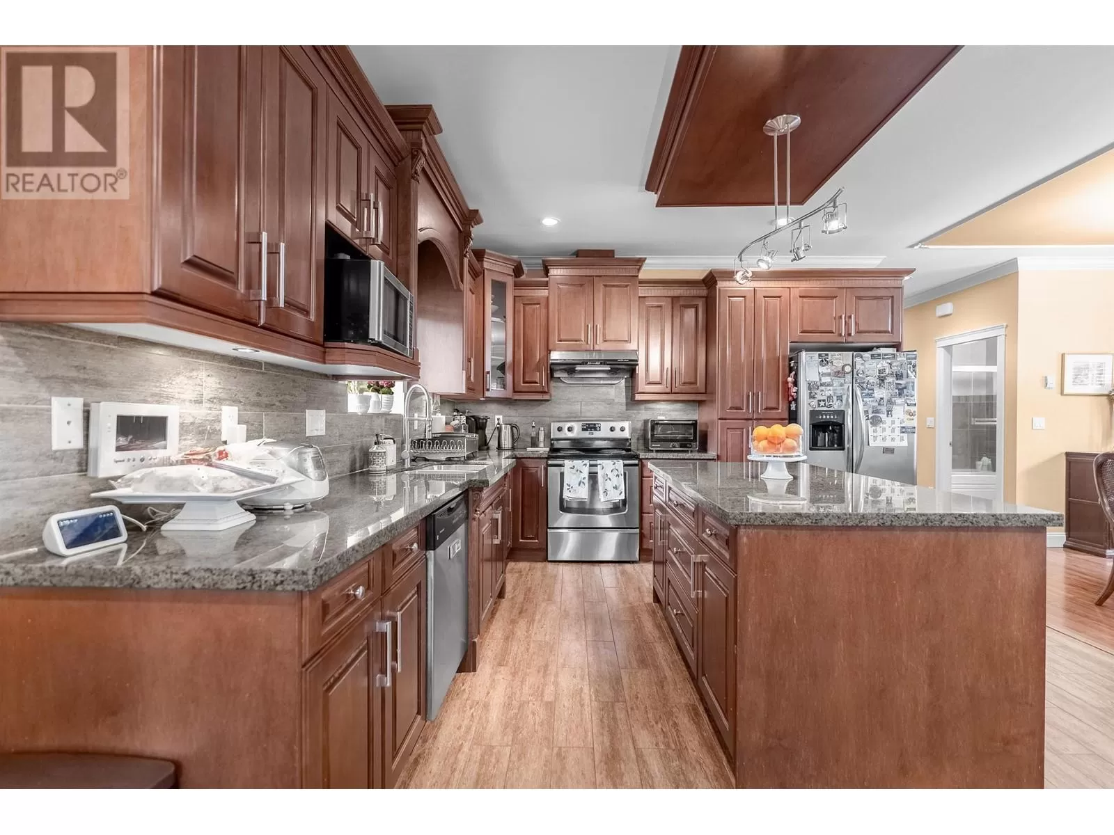 Welcome to this well-maintained home located in a friendly, family-oriented neighbourhood. Offering walkin level living, the main residence features three spacious bedrooms upstairs, three full bathrooms, a bright living room, a modern kitchen, a private family room, and access to a fully fenced backyard with a back patio-perfect for relaxing or entertaining. besides, you'll find a self-contained, two-bedroom legal suite with a separate walk-in entry and approved for home daycare use-a fantastic mortgage helper or investment opportunity. The main house is currently rented for $3,250/month plus 75% of utilities. Enjoy the comforts of radiant heating, gas fireplaces, and an attached tandem two-car garage. OPEN HOUSE at 2-4 on Sunday April 26, 2025 (id:27476)