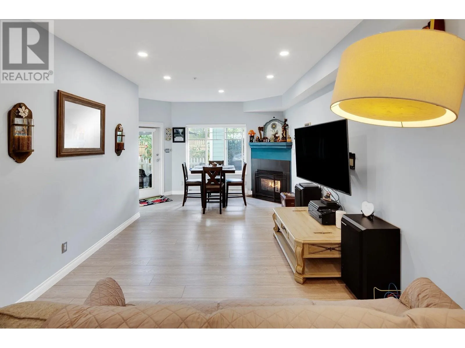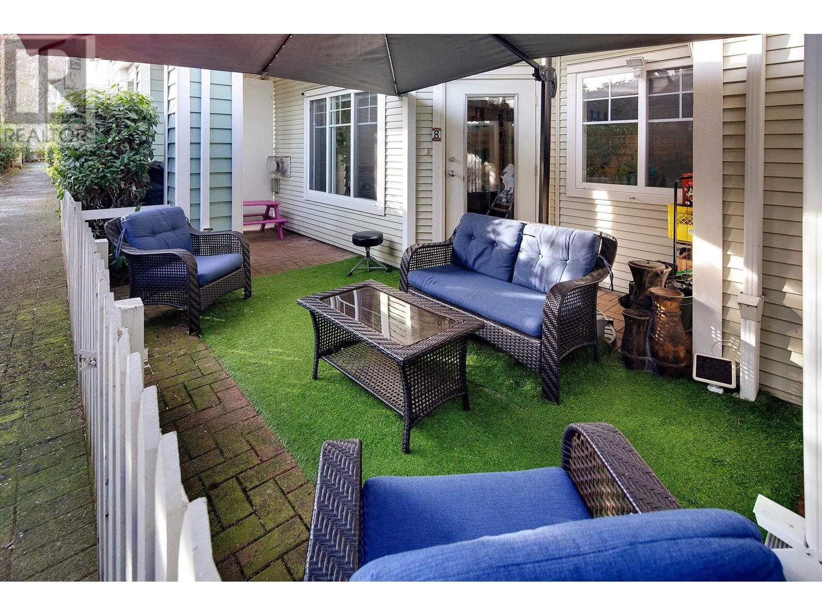 This elegant townhouse features 9' ceilings and a spacious, private south-facing patio on the quiet side of the complex. A rare convenience, the unit offers direct access to a dedicated parking spot from within. Additional storage includes an in-suite storage room and a locker in the parkade. Cozy up by the gas fireplace, with its maintenance covered in the strata fees. Nestled in a prime location, you'll be steps away from Walmart, Save-On-Foods, Douglas College, two SkyTrain stations, schools, shops, restaurants, and parks. Pet-friendly complex (1 cat or dog, no size restrictions). (id:27476)
