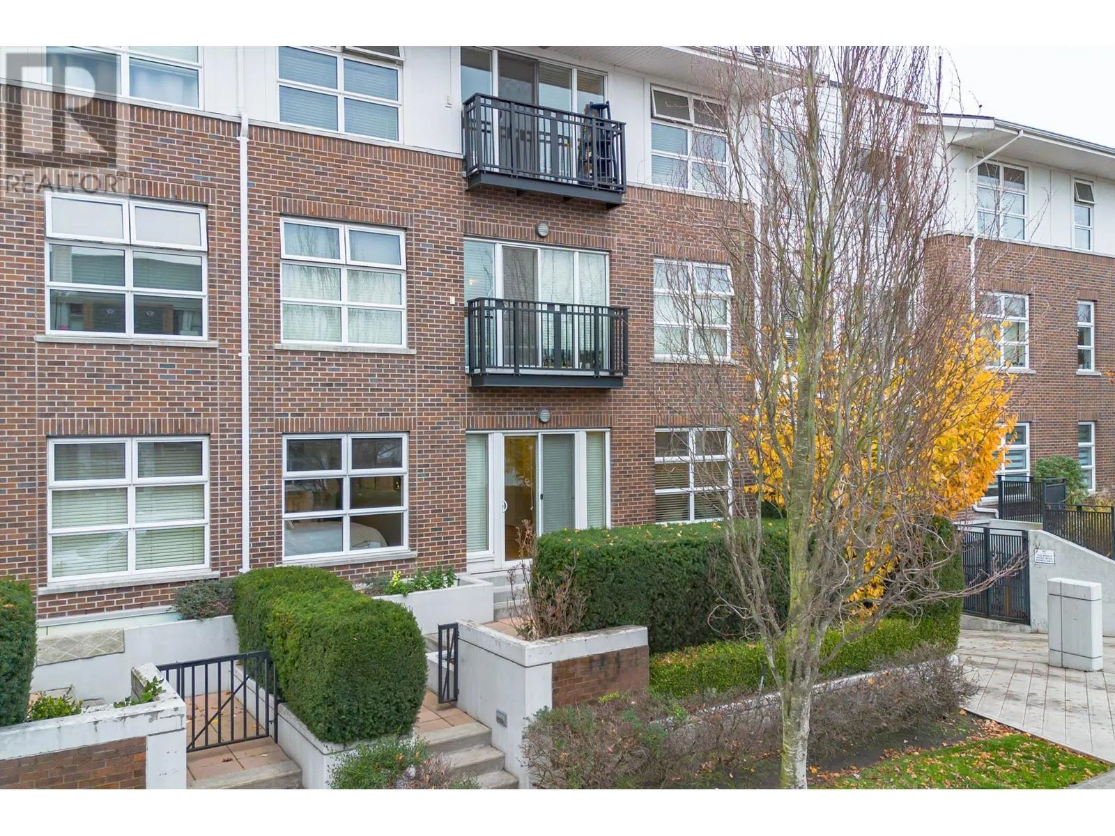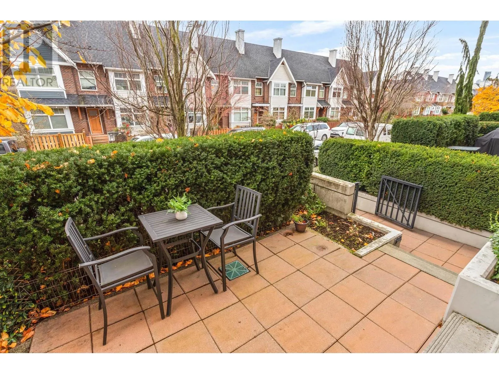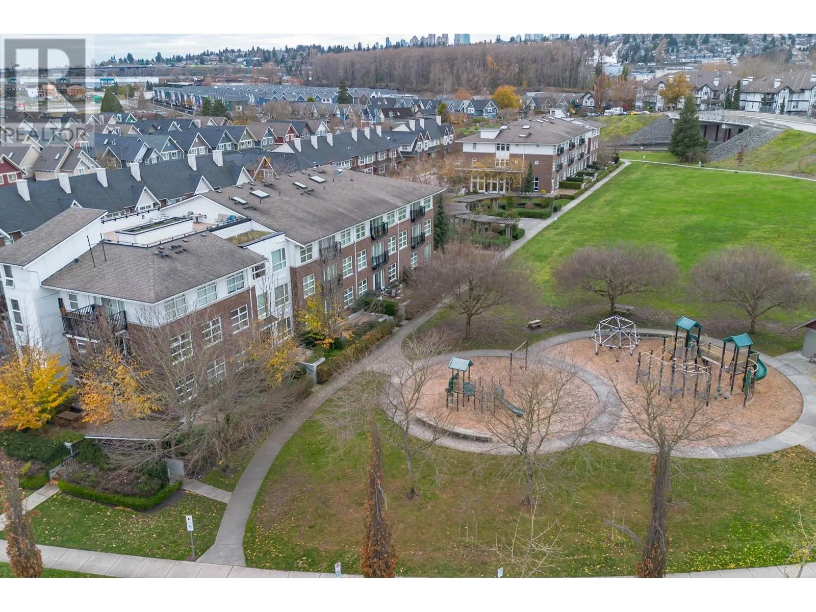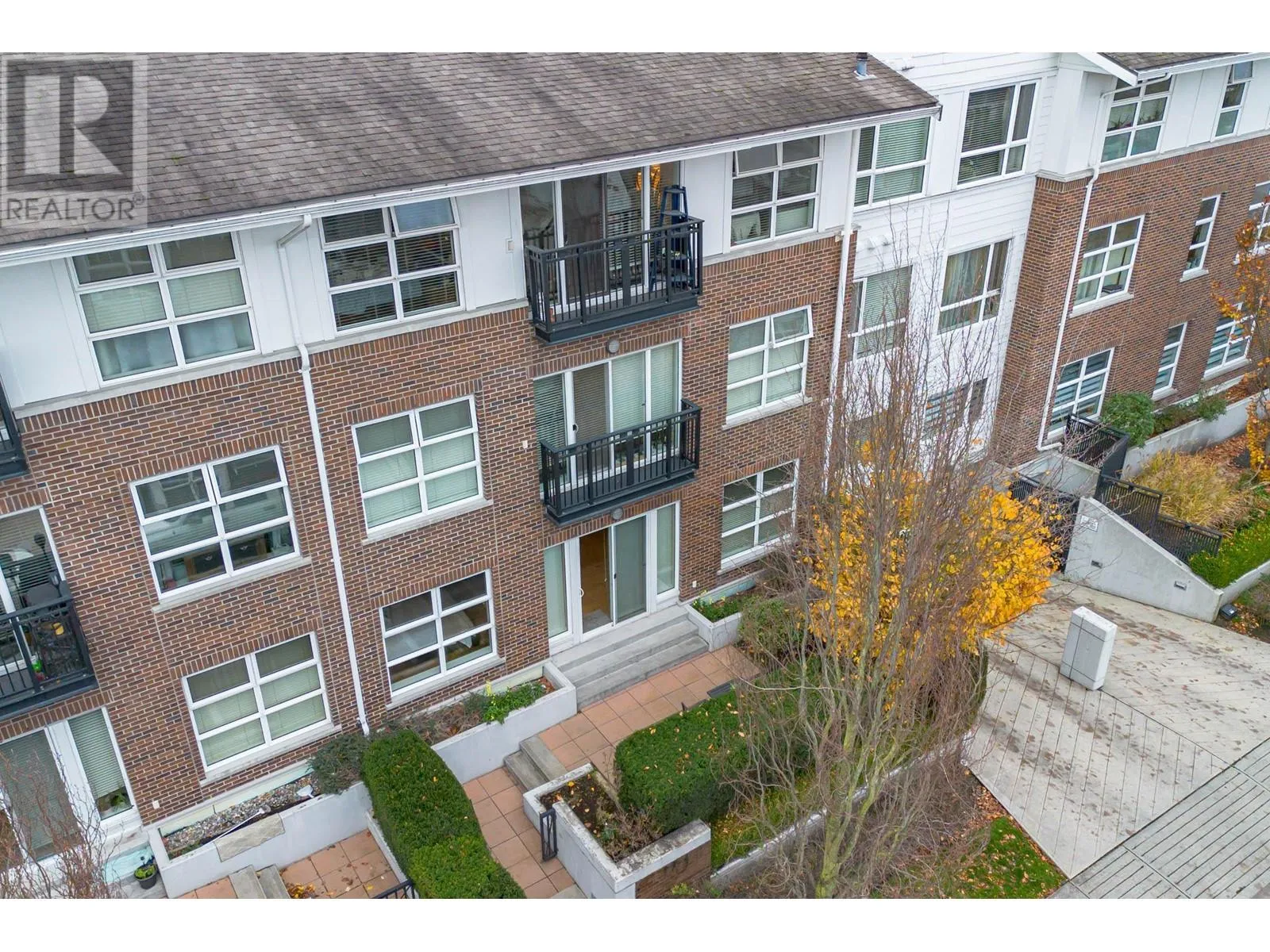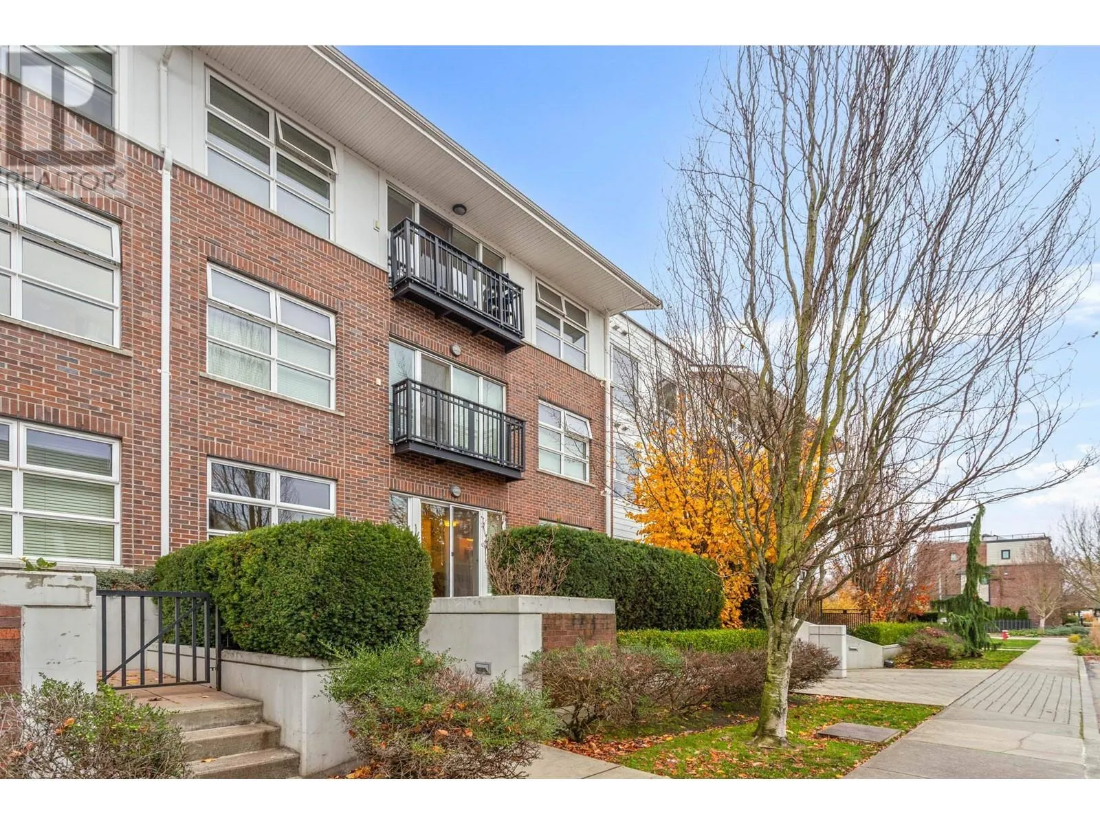 This thoughtfully designed townhome-style 2-bedroom, 2-bathroom home is nestled in the sweetest family-oriented community, filled with parks, playgrounds, waterfront trails & in close proximity to transit, Q2Q ferry & amenities. Boasting the largest floor plan in the building, this home offers an open-concept plan with chef´s kitchen, featuring s/s appliances + gas range, & beautiful updated hardwood floors throughout. Spacious primary bedroom with ensuite & double closets, second bedroom & bath, + laundry room with extra storage. Enjoy seamless indoor-outdoor living with sliding door access to private 176 sq. ft. patio with convenient gated street access. Additional perks incl. rooftop BBQ / community garden, exercise room, secure parking, visitor parking & storage locker. Nothing to do, but move-in! (id:27476)