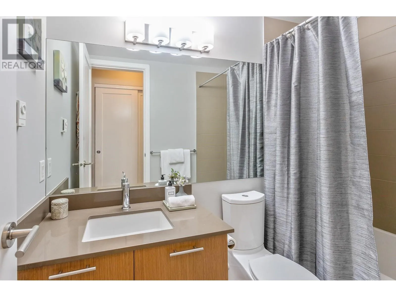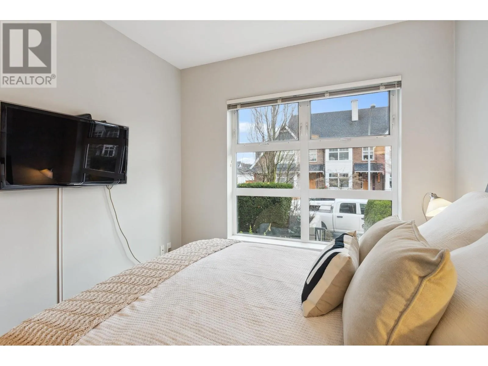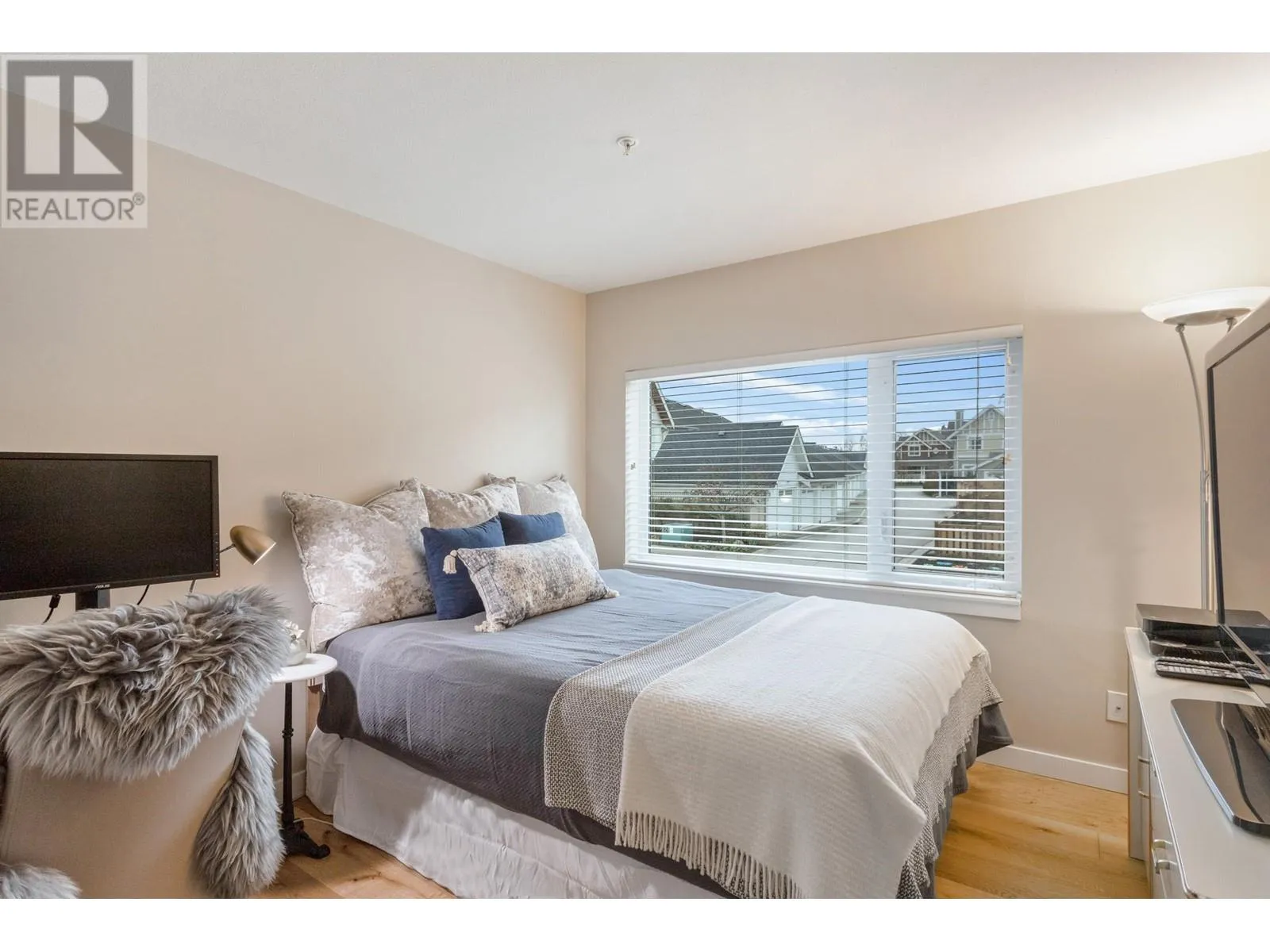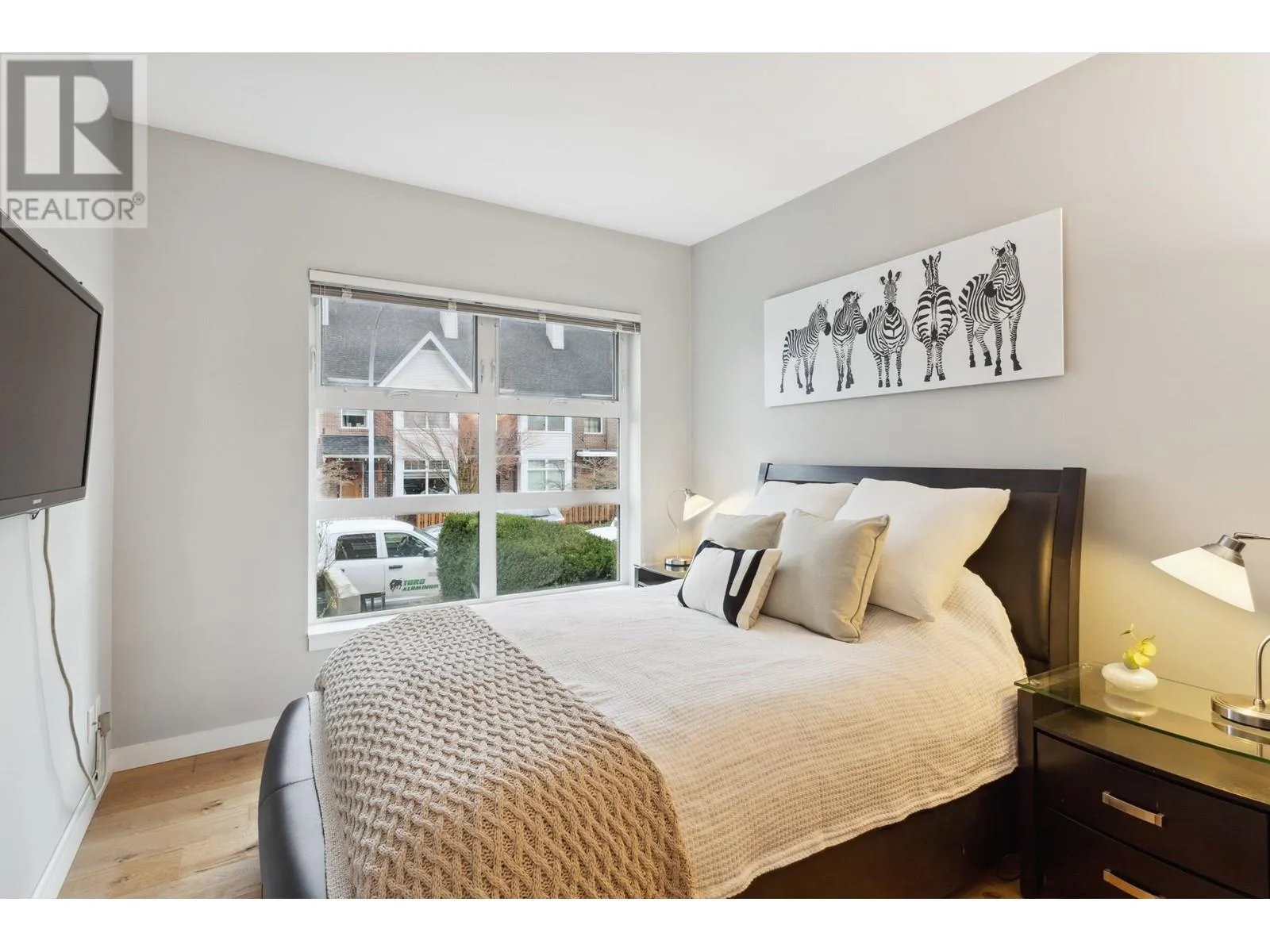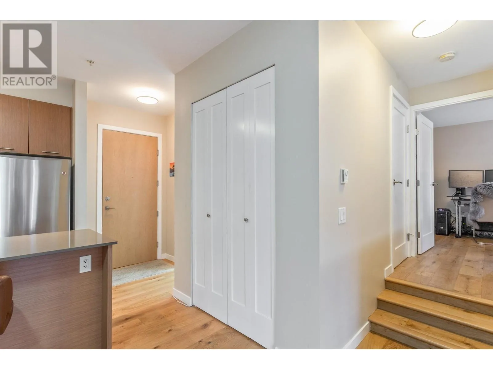This thoughtfully designed townhome-style 2-bedroom, 2-bathroom home is nestled in the sweetest family-oriented community, filled with parks, playgrounds, waterfront trails & in close proximity to transit, Q2Q ferry & amenities. Boasting the largest floor plan in the building, this home offers an open-concept plan with chef´s kitchen, featuring s/s appliances + gas range, & beautiful updated hardwood floors throughout. Spacious primary bedroom with ensuite & double closets, second bedroom & bath, + laundry room with extra storage. Enjoy seamless indoor-outdoor living with sliding door access to private 176 sq. ft. patio with convenient gated street access. Additional perks incl. rooftop BBQ / community garden, exercise room, secure parking, visitor parking & storage locker. Nothing to do, but move-in! (id:27476)