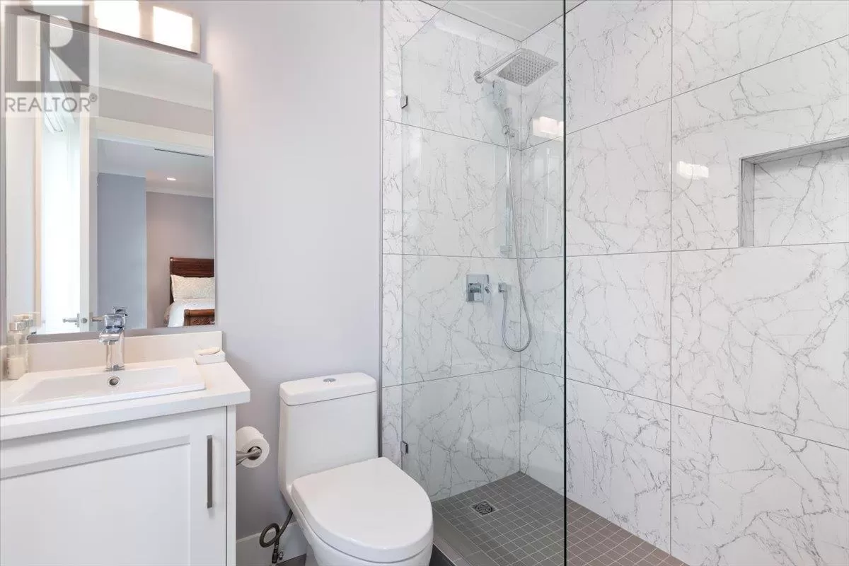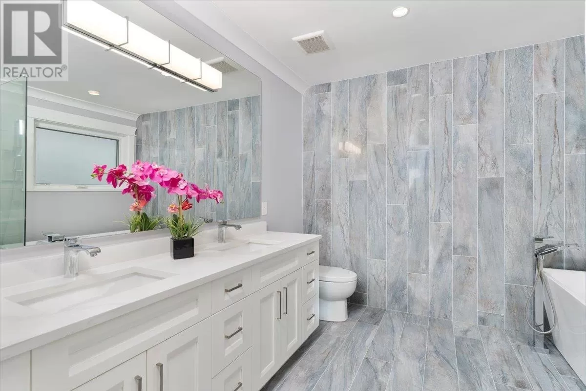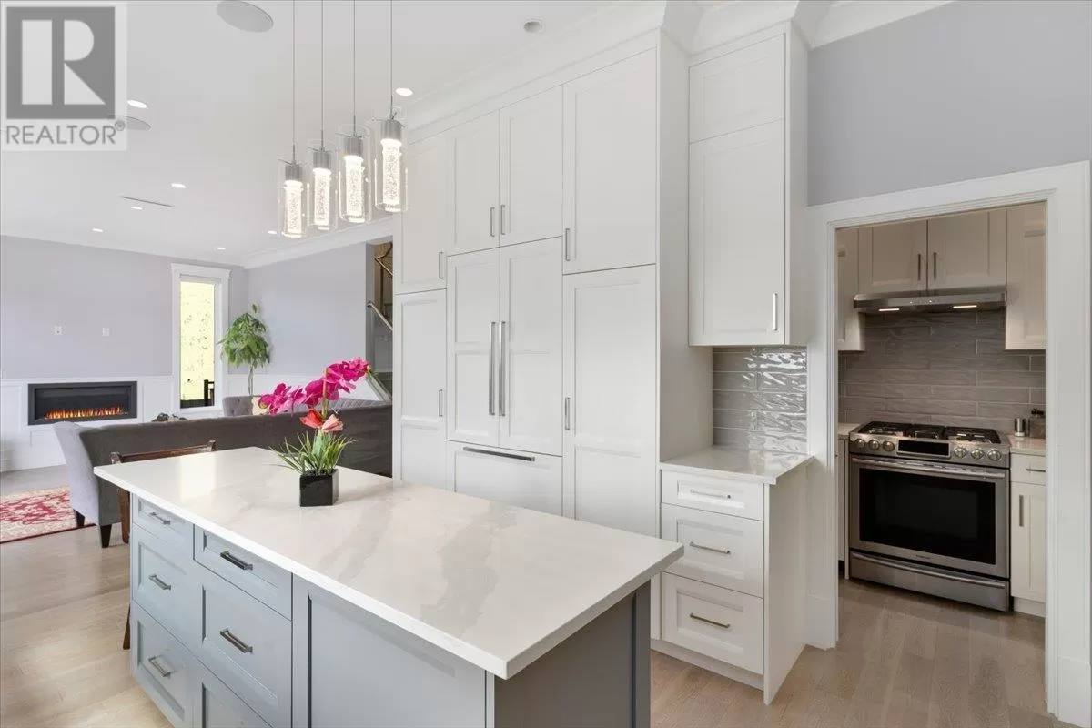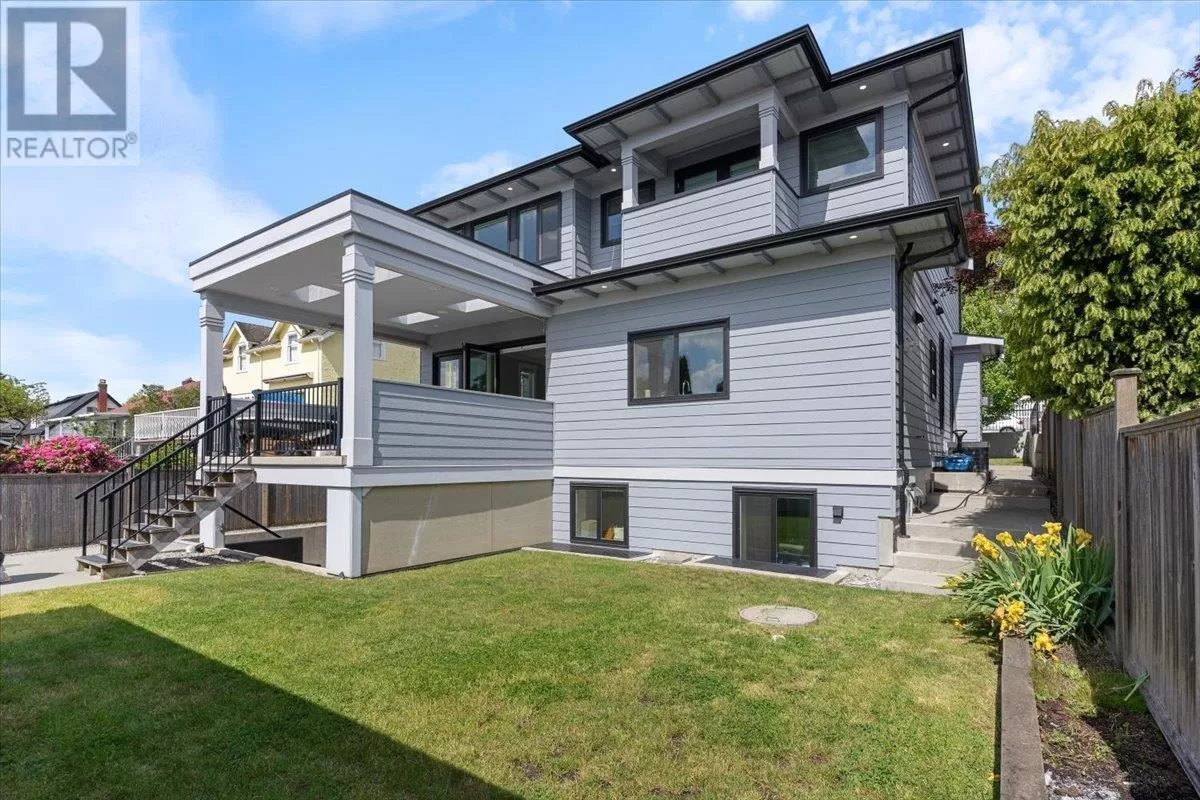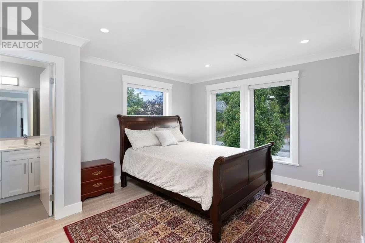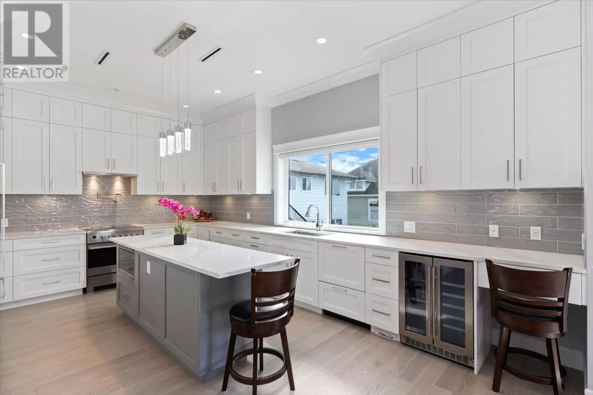 Welcome home to this 4500 sf spectacular custom built home in New West's West End. An extraordinary opportunity to own one of the most elegant single-family homes available. This exquisite residence is designed with superior quality finishes including high-end quartz counters + cabinetry, security system, radiant floor heating, A/C and more! Open concept indoor/outdoor layout with 7 beds + 8 baths, complete with over height ceilings + real hardwood floors, creating a grand atmosphere that provides ample space for entertaining. Legal two bedroom suite on lower level and legal buildable suite in garage. Perfect for those seeking a family neighbourhood that offers a lifestyle of comfort + convenience, all located near excellent schools, parks, shopping + amenities. Come experience modern luxury living and discover the difference! (id:27476)