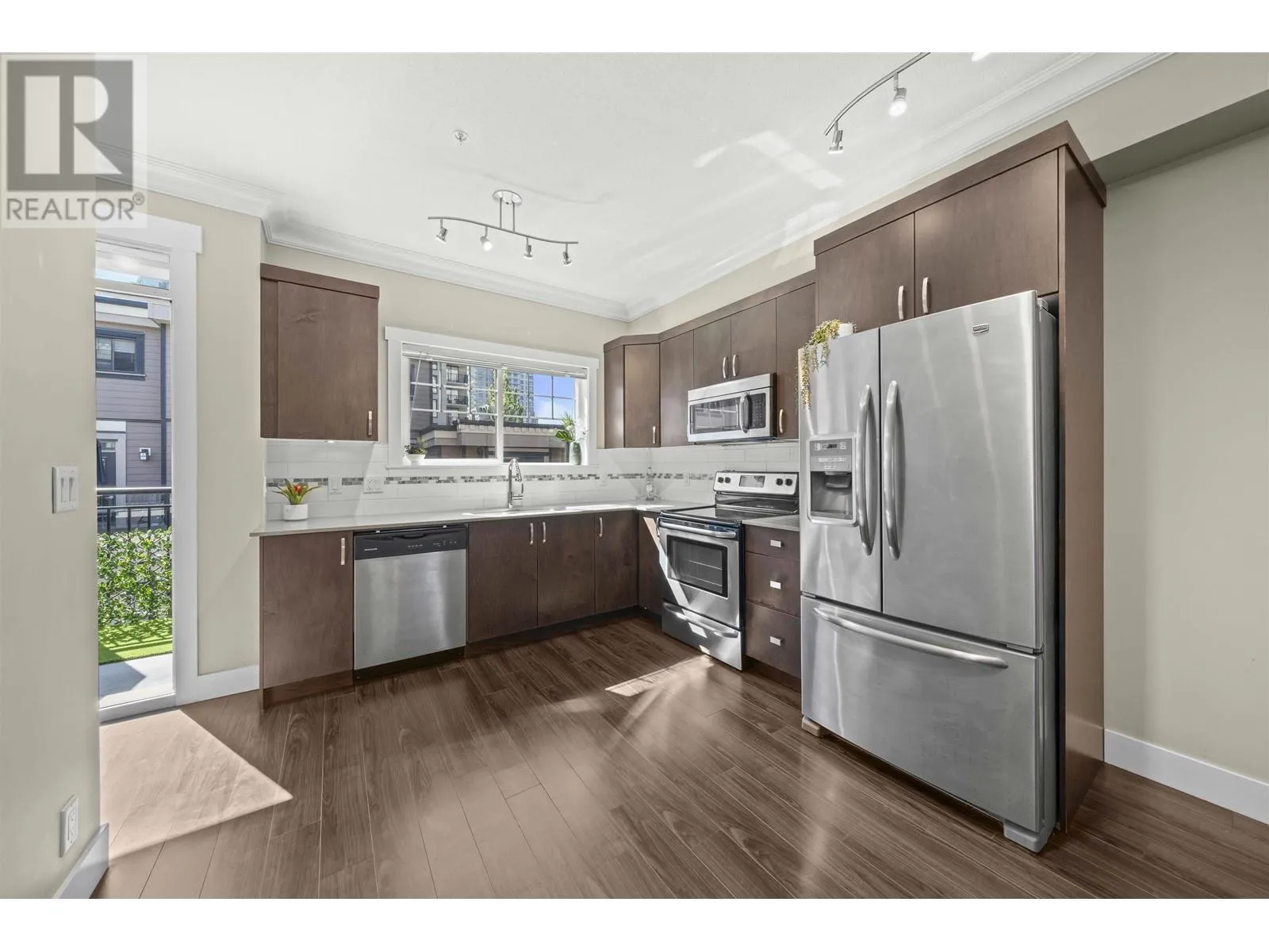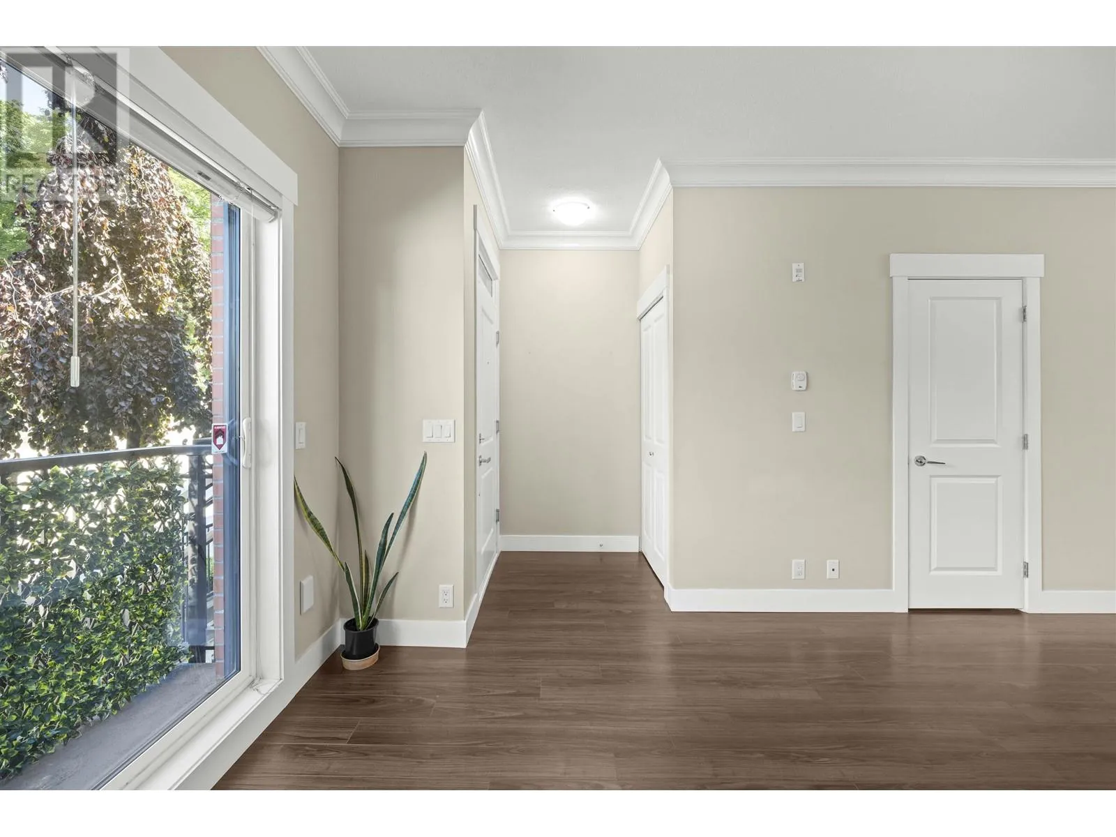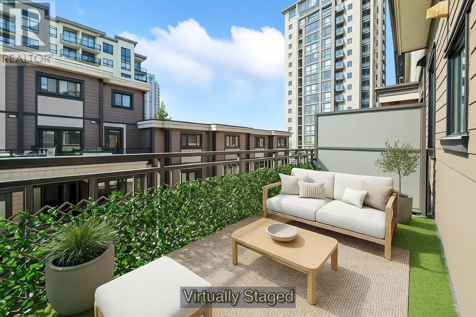Welcome to Brickstone Walk II - a boutique, heritage-inspired townhome community in the heart of historic downtown New West! This bright, sought-after upper-level 2 bed/3 bath home features the developer's upgraded package, soaring almost 9´ ceilings, laminate floors, and a contemporary kitchen with quartz counters, S/S appliances, and south/west exposure. Enjoy a spacious open layout, large sun-filled patio off the main, and a convenient powder room. Upstairs offers 2 generous bedrooms, each with its own bathroom. The primary bedroom boasts a peek-a-boo water view! Flooded with natural light from large front/back windows. Steps to SkyTrain, Douglas College, the Quay, shops & restaurants. Includes 1 parking & elevator access to the garage. (id:27476)