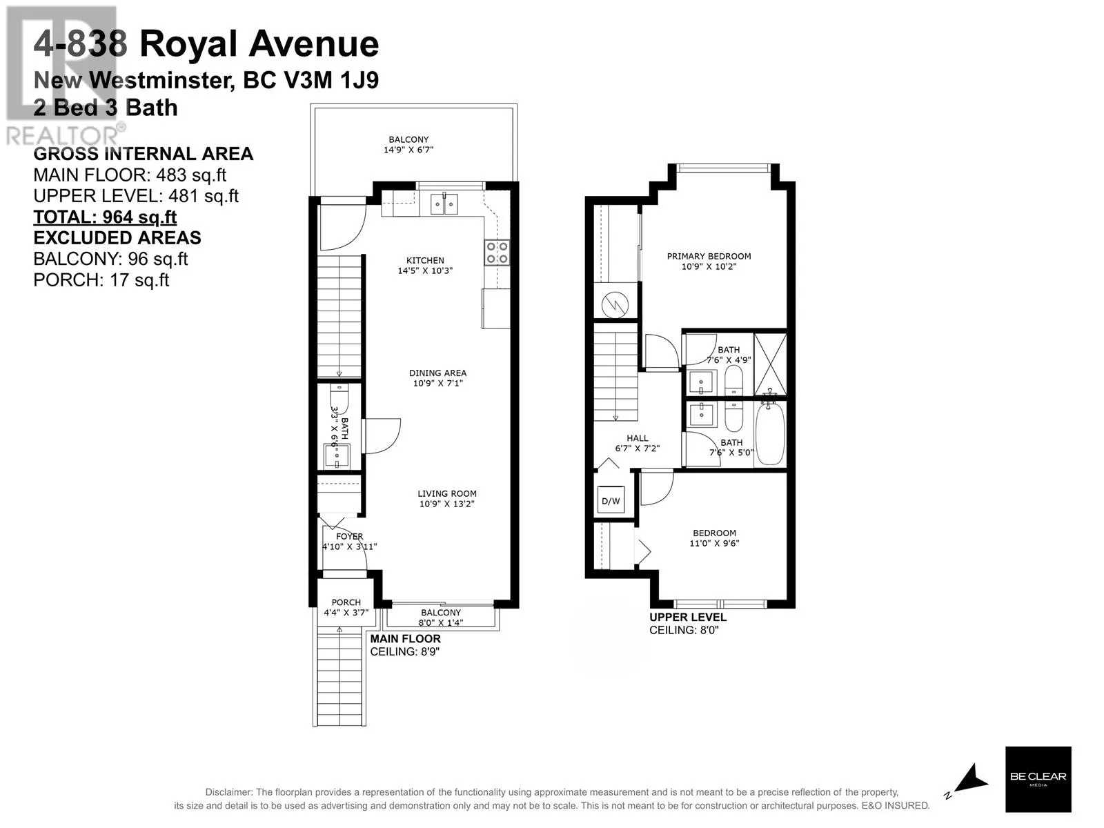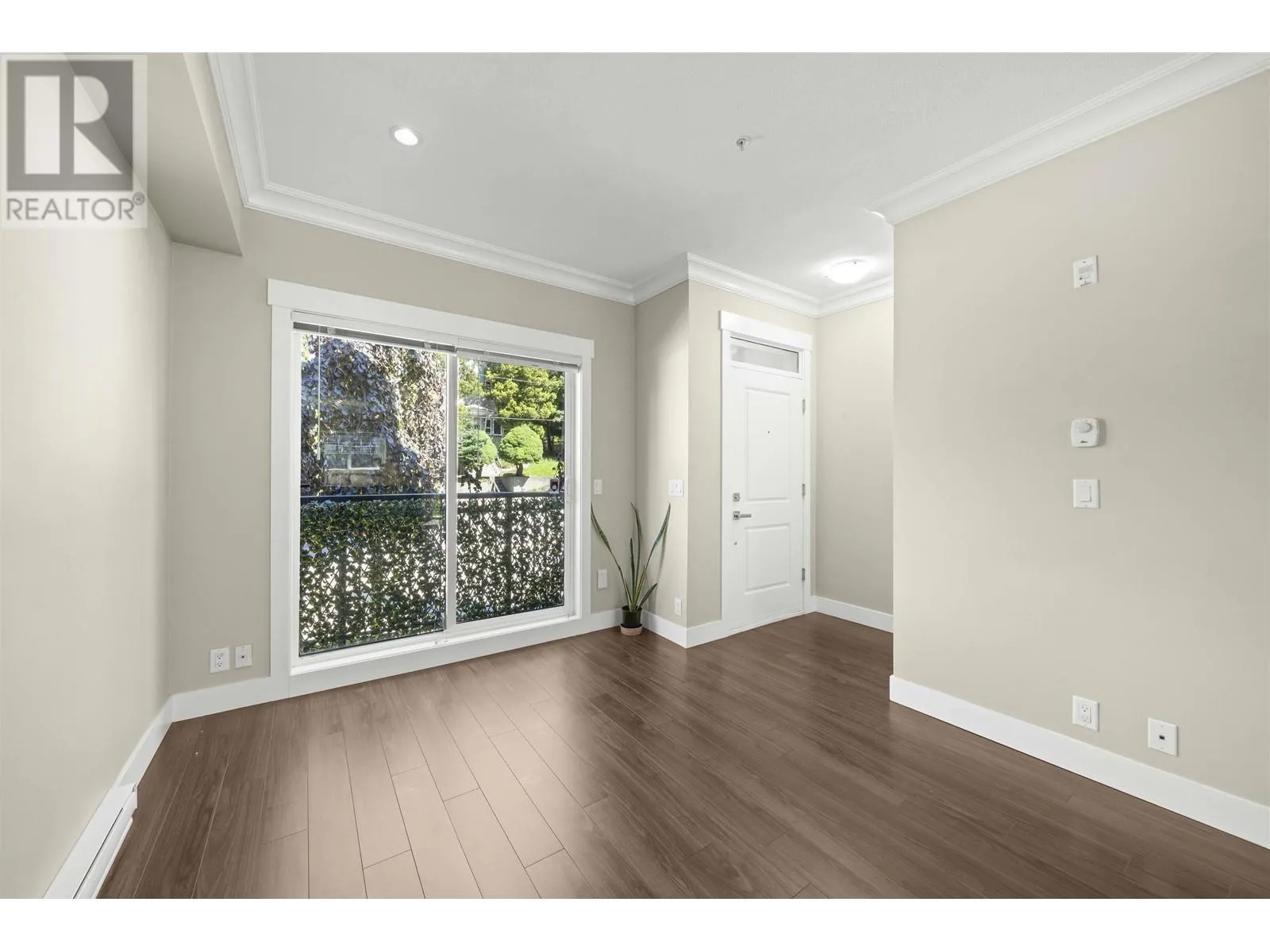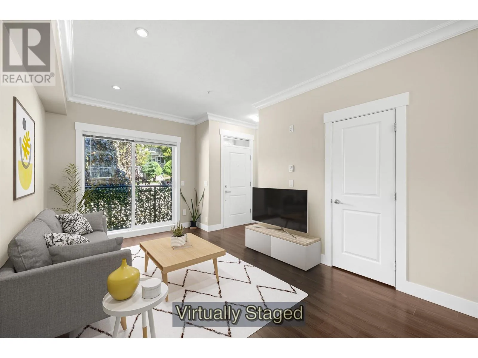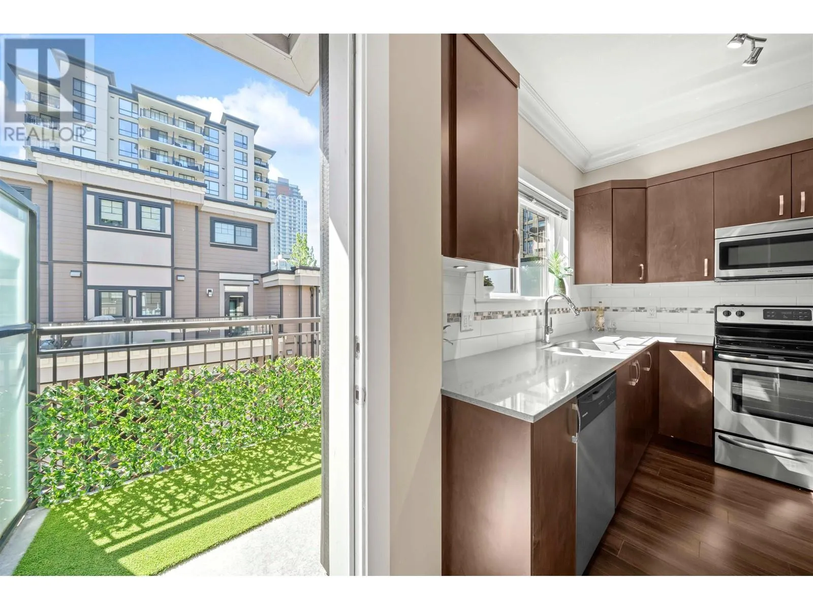 Welcome to Brickstone Walk II - a boutique, heritage-inspired townhome community in the heart of historic downtown New West! This bright, sought-after upper-level 2 bed/3 bath home features the developer's upgraded package, soaring almost 9´ ceilings, laminate floors, and a contemporary kitchen with quartz counters, S/S appliances, and south/west exposure. Enjoy a spacious open layout, large sun-filled patio off the main, and a convenient powder room. Upstairs offers 2 generous bedrooms, each with its own bathroom. The primary bedroom boasts a peek-a-boo water view! Flooded with natural light from large front/back windows. Steps to SkyTrain, Douglas College, the Quay, shops & restaurants. Includes 1 parking & elevator access to the garage. (id:27476)