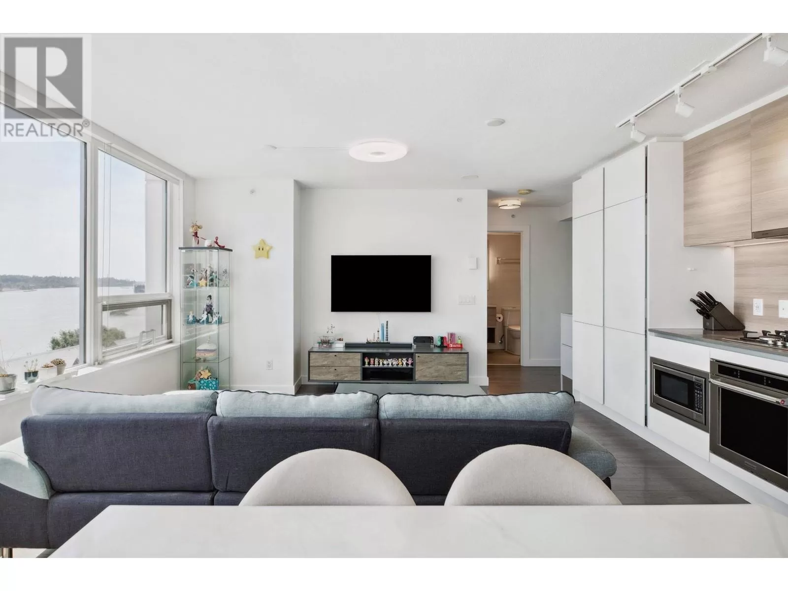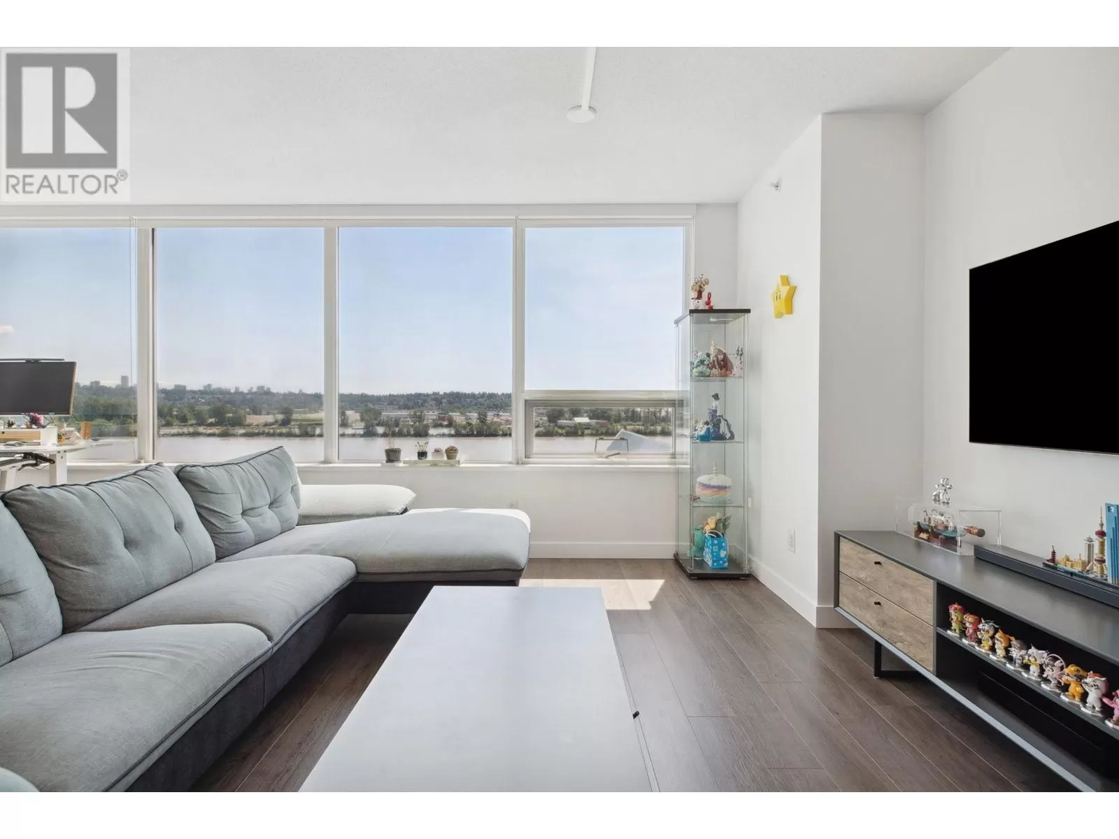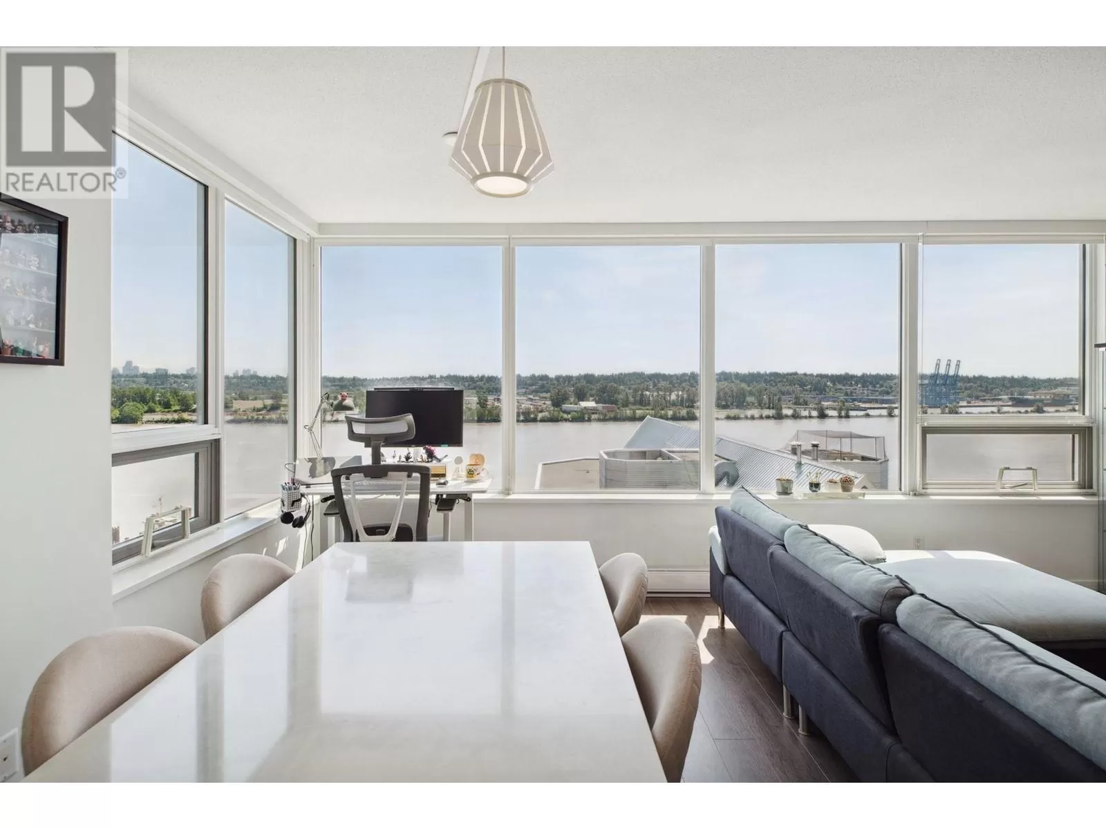 Welcome to RiverSky 2 by BOSA, located in the heart of Downtown New Westminster. This stunning 2-bedroom, 2-bathroom SOUTH-EAST corner offers 900 square ft of beautiful living space with panoramic DIRECT WATER views of the Fraser River and Mt. Baker. The open-concept kitchen features a gas stove, soft-close cabinetry, composite stone countertops, an integrated refrigerator, integrated dishwasher for a very clean modern look. The building offers full-time concierge service and premium amenities including a fully equipped gym, , and a rooftop terrace with sweeping water views, lounge seating, and BBQs. Pet-friendly. and SkyTrain, Anvil Centre, the Quay, shops, restaurants, cafes - newly completed boardwalk. 1 PARKING 1 LOCKER INCLUDED. (id:27476)