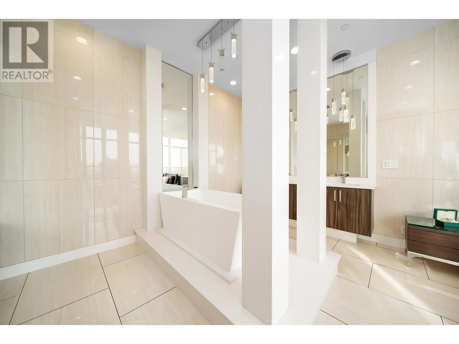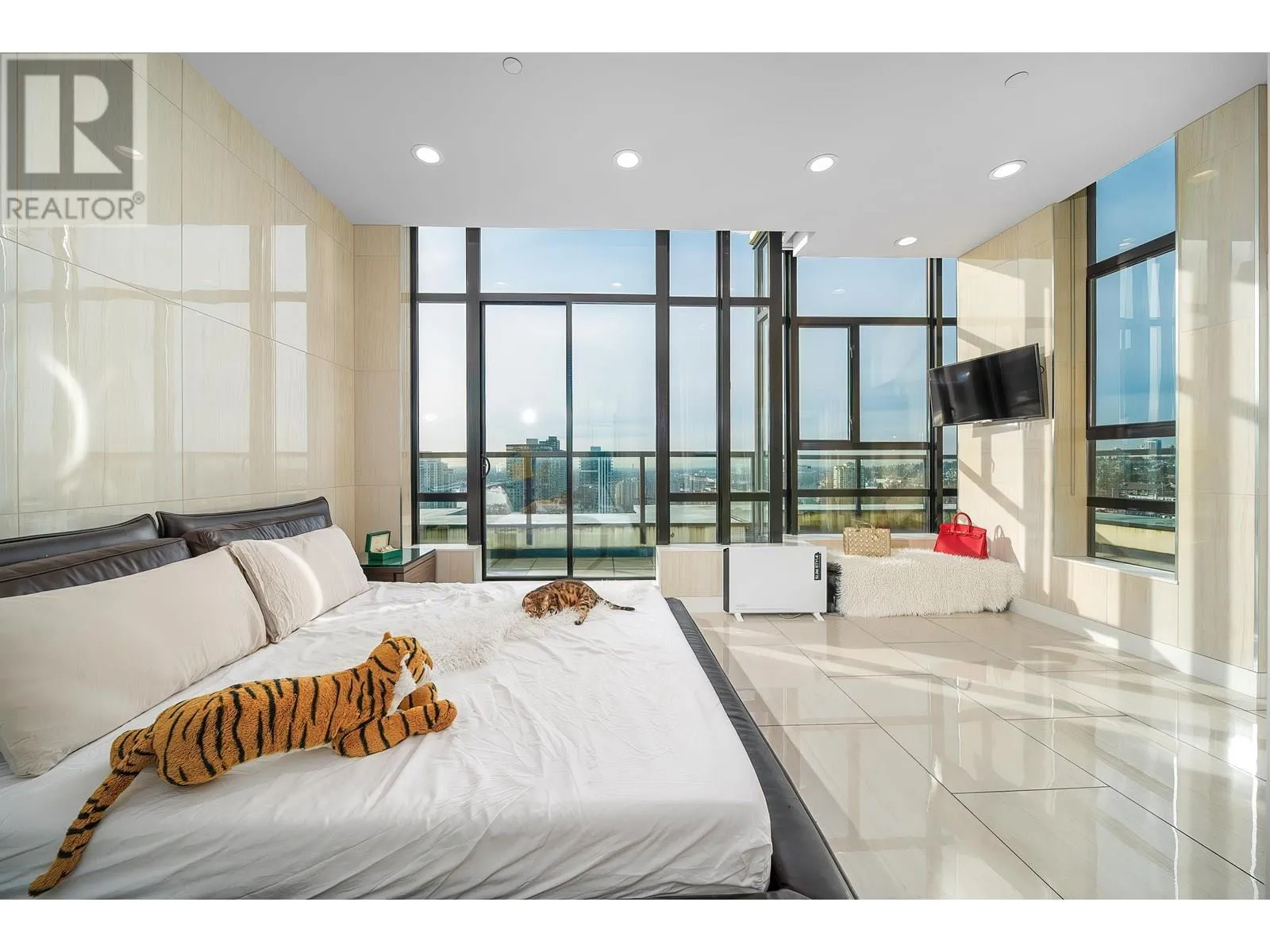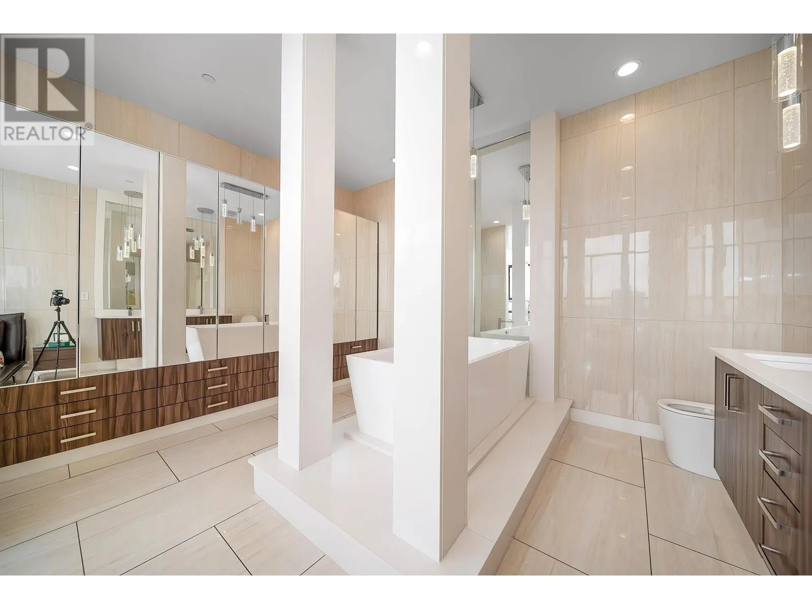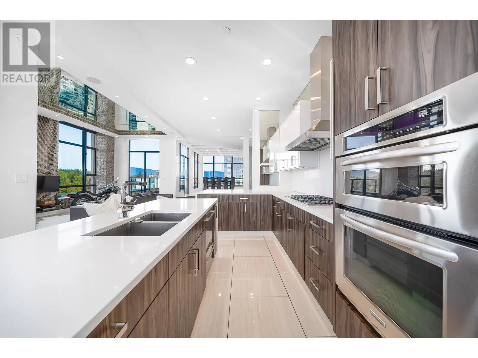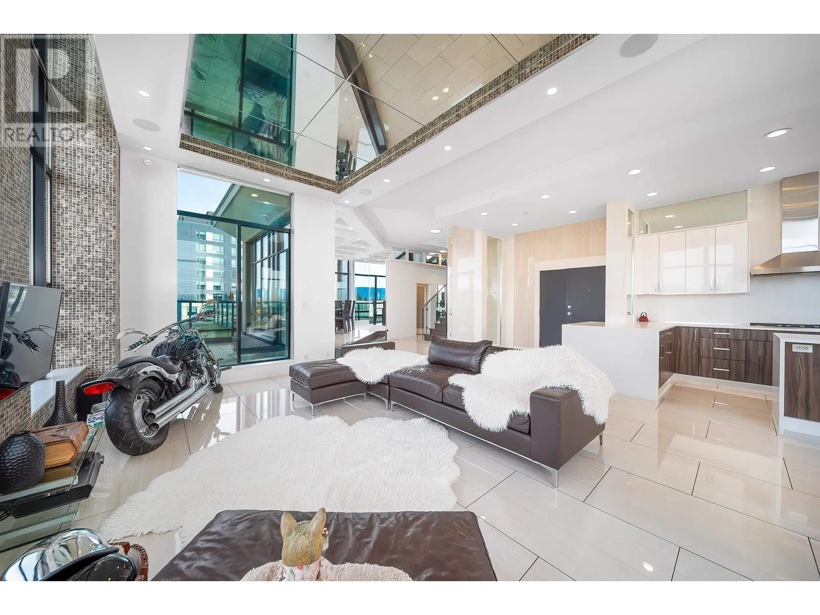 Welcome to this extraordinary 2-level penthouse offering breathtaking Panoramic views of the water, mountains, and city skyline. Fully renovated from top to bottom in 2015, this home showcases exquisite craftsmanship with premium Italian Caesarstone & tiles elegantly extended to the walls throughout. This luxury residence features: Two spacious primary bedrooms, each with its own ensuite bathroom, A sleek guest bathroom. Fully integrated smart home system and built-in premium sound system. An expansive wraparound balcony on the main level. An oversized private rooftop terrace spanning over 2,000 sq. ft., perfect for entertaining or relaxing under the stars. A dedicated yoga room and climate-controlled storage room, Three secured parking spots. Book your VIP showing now. (id:27476)