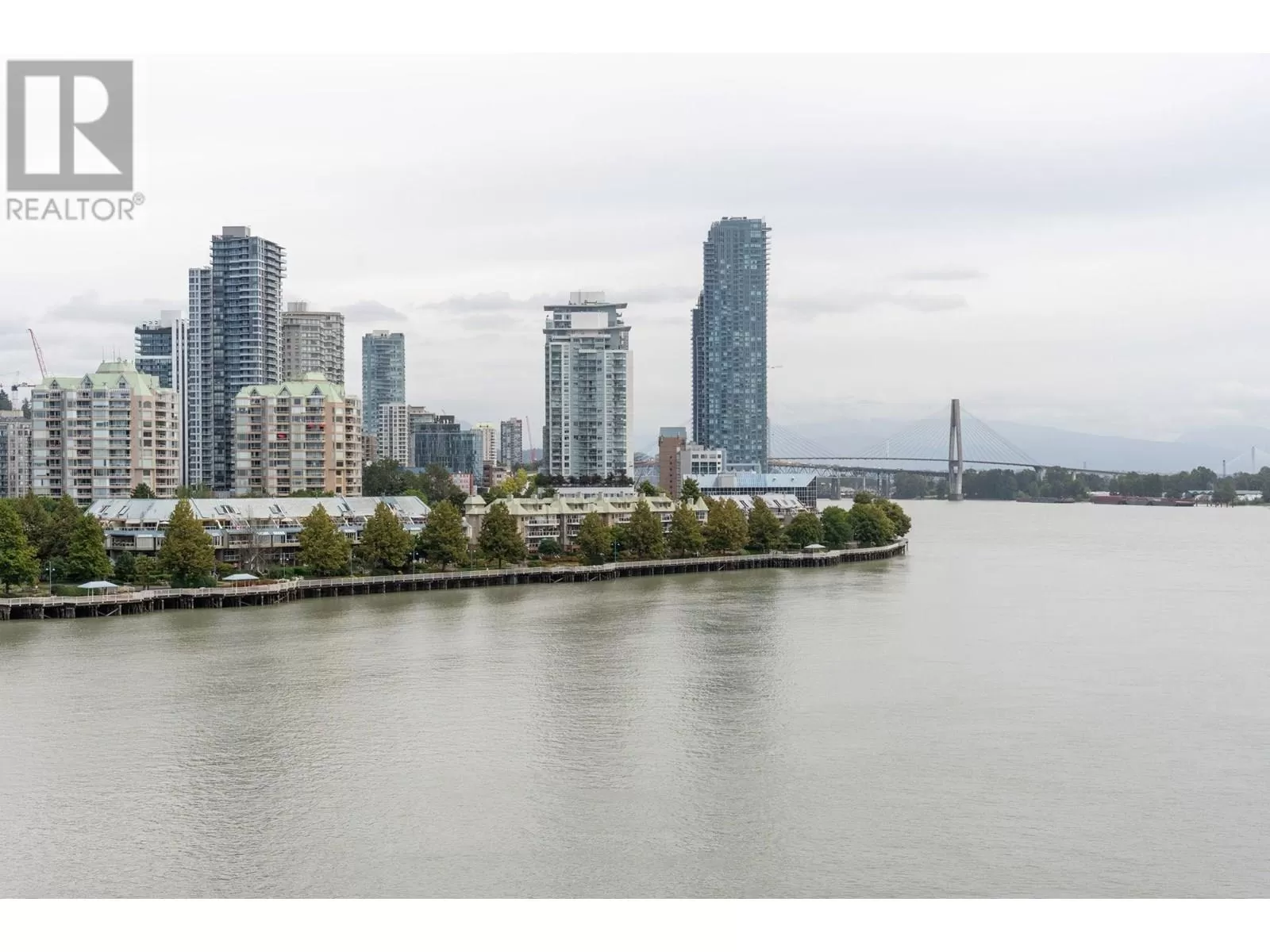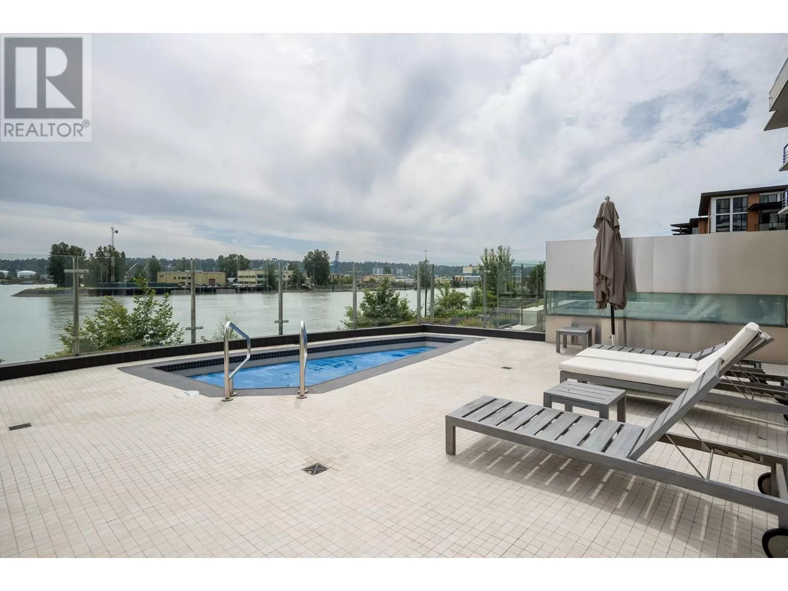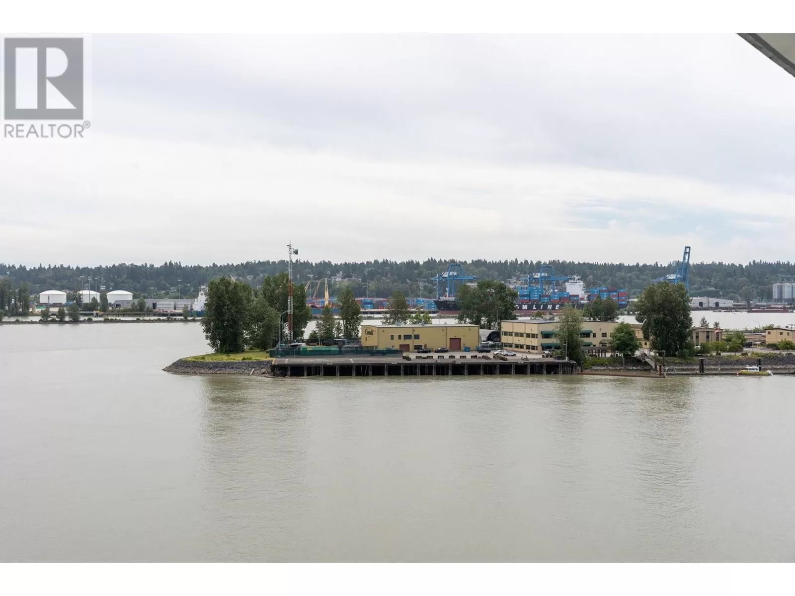 Welcome to this 2 bed 2 bath luxury unit. Located in Port Royal on the Fraser River waterfront. NE facing corner unit which overlooks the Fraser River and has unobstructed views of the city skyline and mountains. Engineered hardwood floors with geothermal heating/cooling throughout. Open kitchen concept with island and breakfast bar, Gaggeneau appliances & Italian cabinets. Living room includes an electric fireplace on a custom wood-paneled feature wall. Master bedroom has walk in closet with ensuite containing 2 sinks, heated floors, tub and shower. 5 mins drive from Hwy 91, Marine Drive and Queensborough Landing for shopping and services. Situated right beside river trail, and a short walk to Port Royal Park and local community garden. (id:27476)