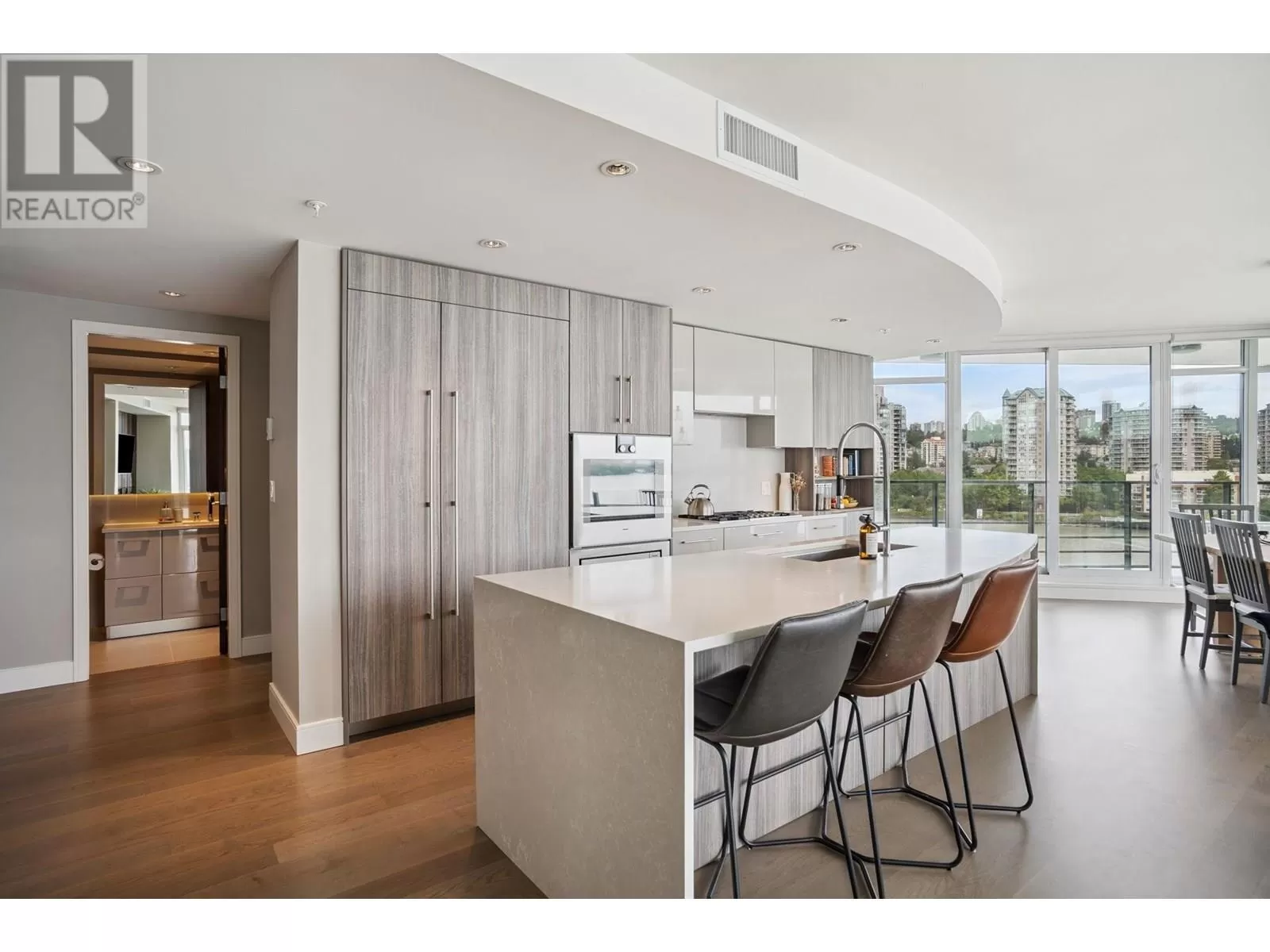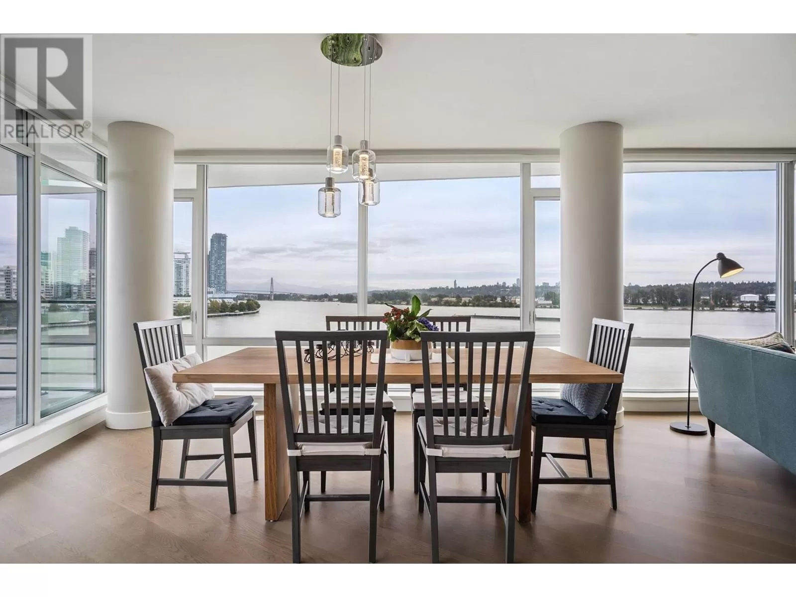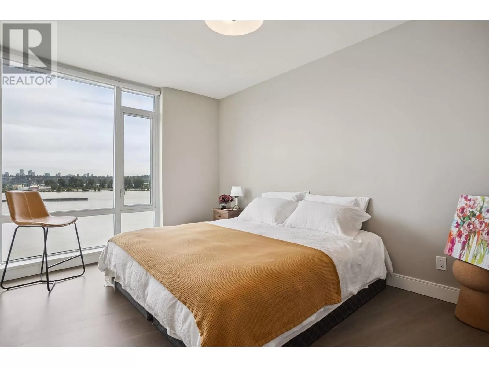 Welcome to this 2 bed 2 bath luxury unit. Located in Port Royal on the Fraser River waterfront. NE facing corner unit which overlooks the Fraser River and has unobstructed views of the city skyline and mountains. Engineered hardwood floors with geothermal heating/cooling throughout. Open kitchen concept with island and breakfast bar, Gaggeneau appliances & Italian cabinets. Living room includes an electric fireplace on a custom wood-paneled feature wall. Master bedroom has walk in closet with ensuite containing 2 sinks, heated floors, tub and shower. 5 mins drive from Hwy 91, Marine Drive and Queensborough Landing for shopping and services. Situated right beside river trail, and a short walk to Port Royal Park and local community garden. (id:27476)