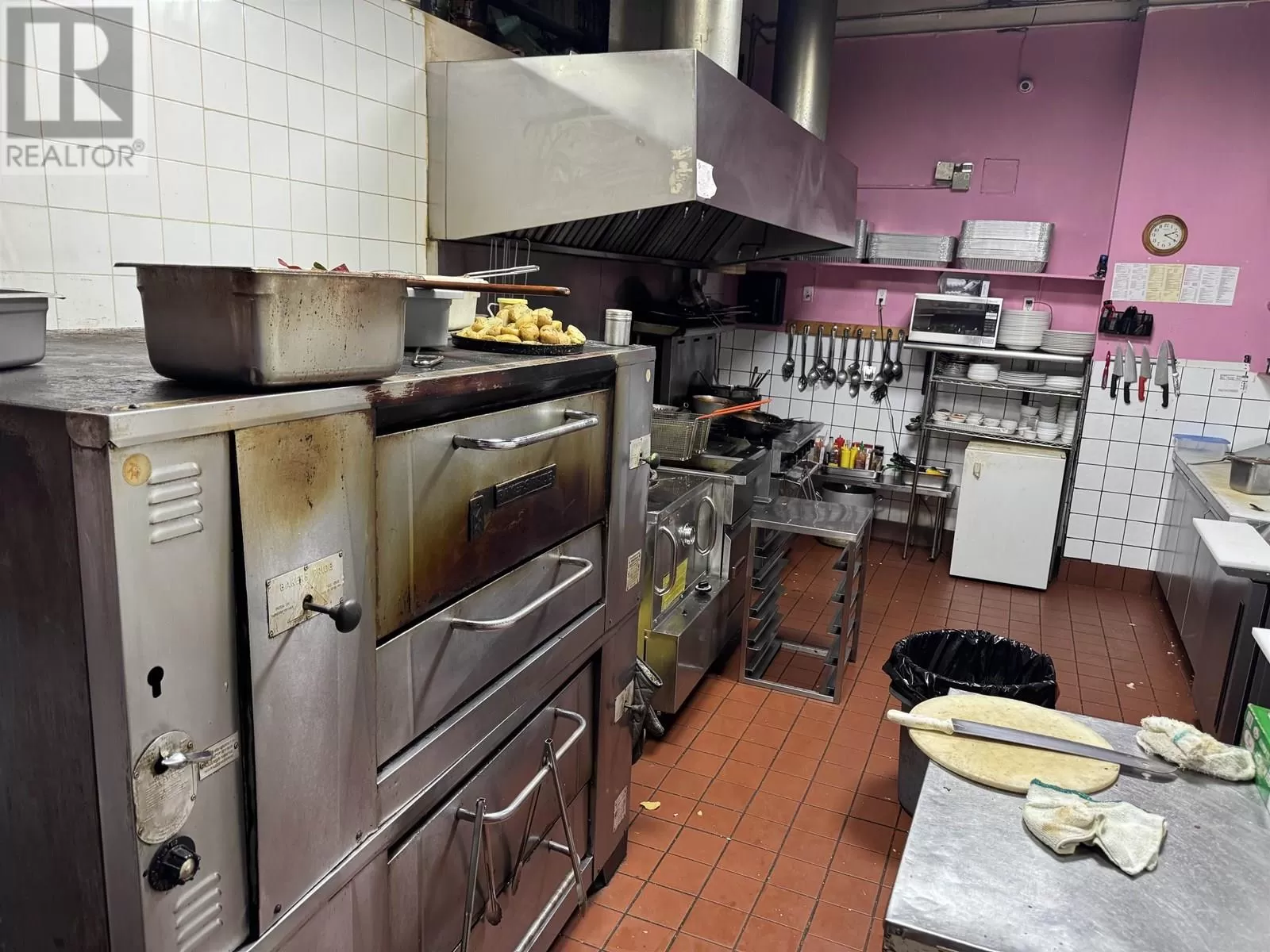 Mediterranean Restaurant and Sports Bar. This restaurant, equipped with a fully equipped commercial kitchen, a 10' exhaust hood, a double-deck pizza oven, a tandoor oven, and a walk-in cooler, is designed to accommodate any culinary style. It boasts an expansive 110-seat dining area, a visible central bar, and a spacious patio. Additionally, the restaurant features a separate meeting or private dining room, suitable for groups of 8 to 12 individuals. Situated in a prime neighbourhood with substantial growth potential, this establishment invites inquiries for further details. No cuisine restriction. Contact: 604-767-7867 for info. (id:27476)