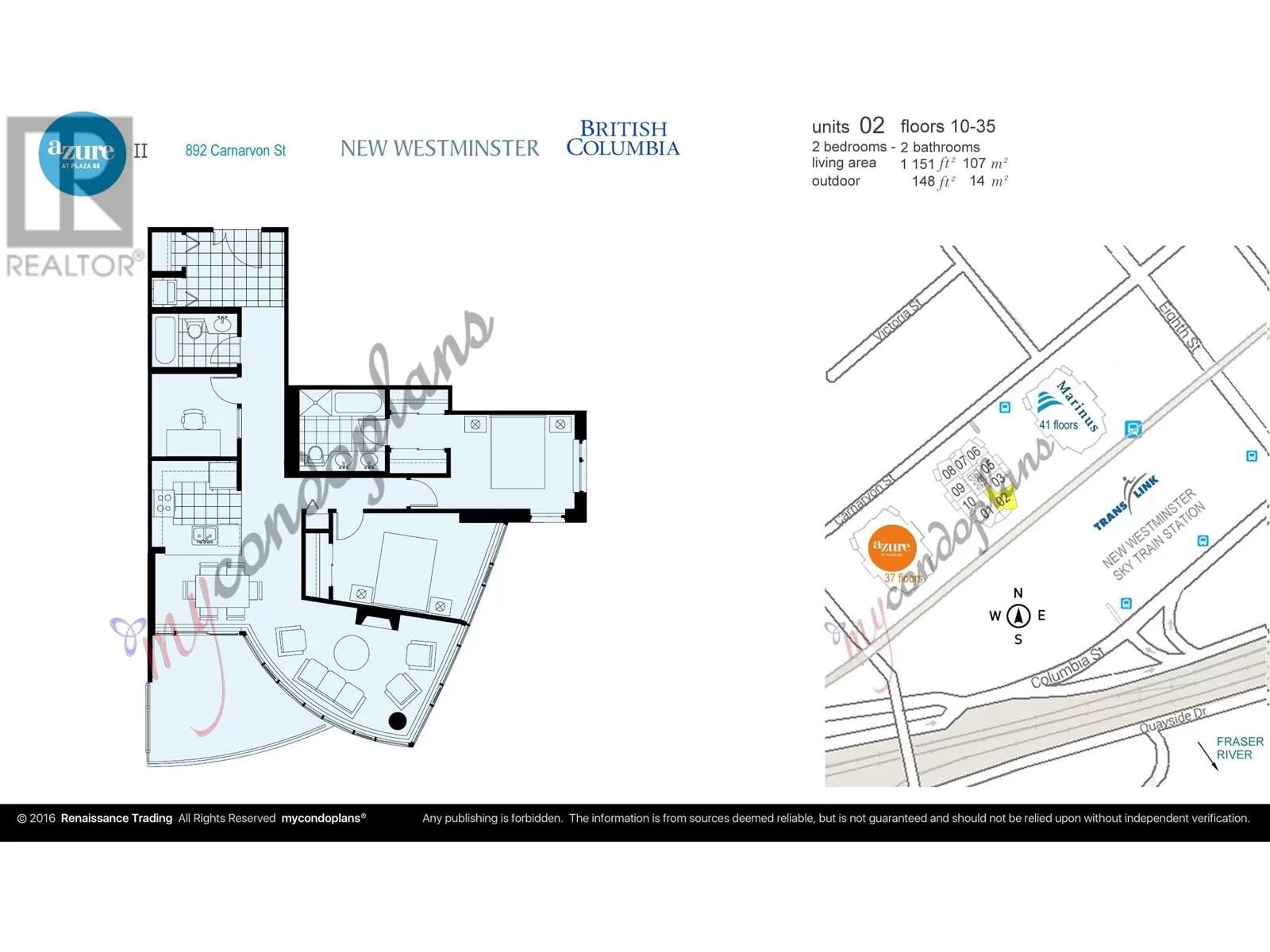 Ideal Urban Living in New Westminster. Sunny and South-Facing 2 Bedrooms Plus Den with Bathroom Suite. This suite offers 1152 sq/ft of living space and an expansive balcony with stunning views overlooking the cityscape, bridges, and Fraser River. The amenities, including a gym, steam shower, party room, and storage locker, are conveniently located on the 9th floor of the complex. Perfectly integrated with the SkyTrain, shopping mall, Cineplex, banks, and a variety of dining options, residents have access to all essentials and entertainment. (id:27476)