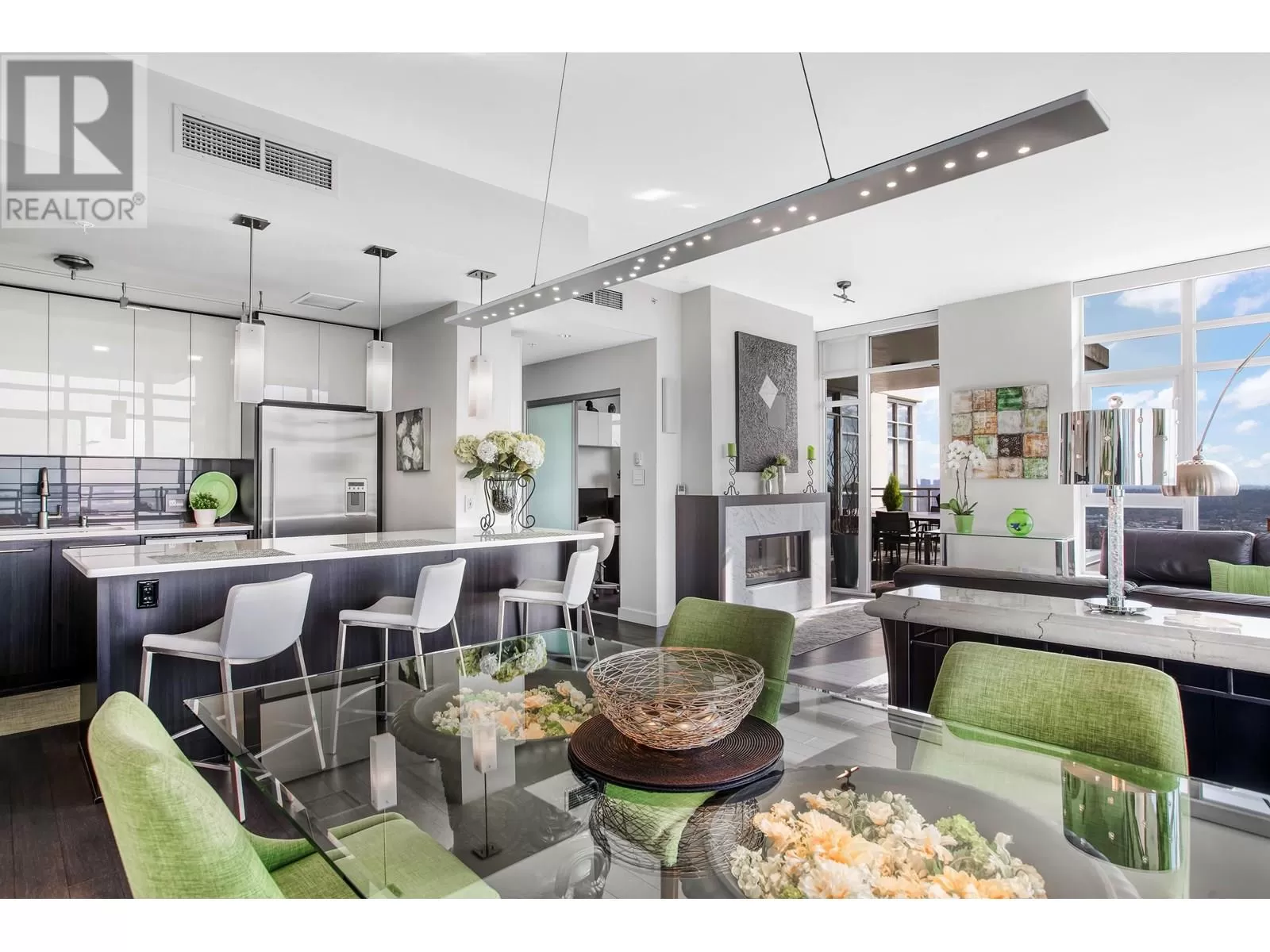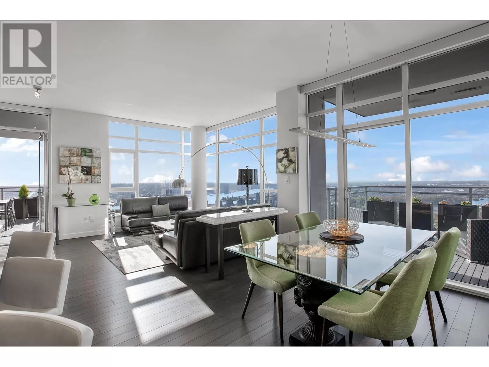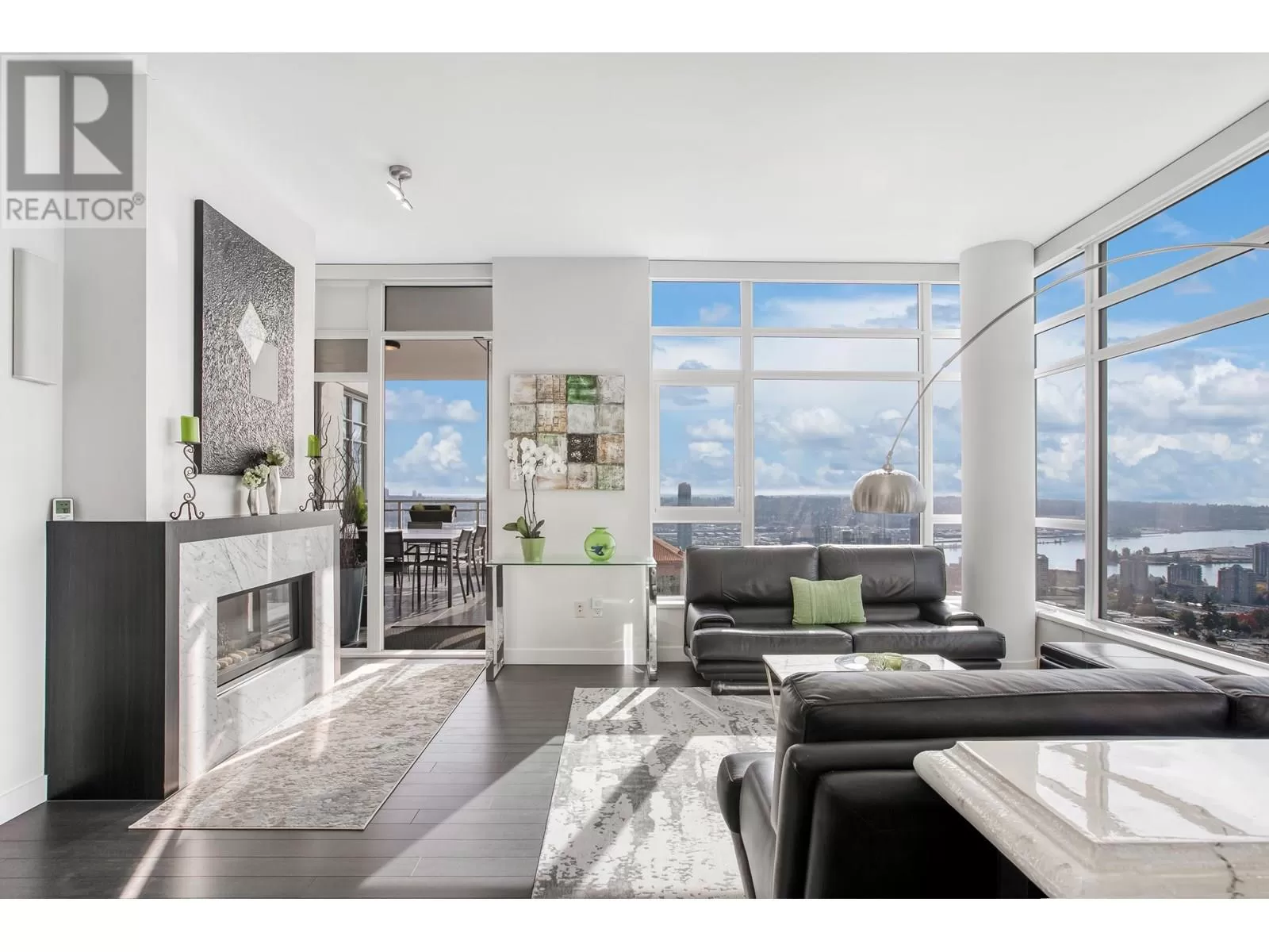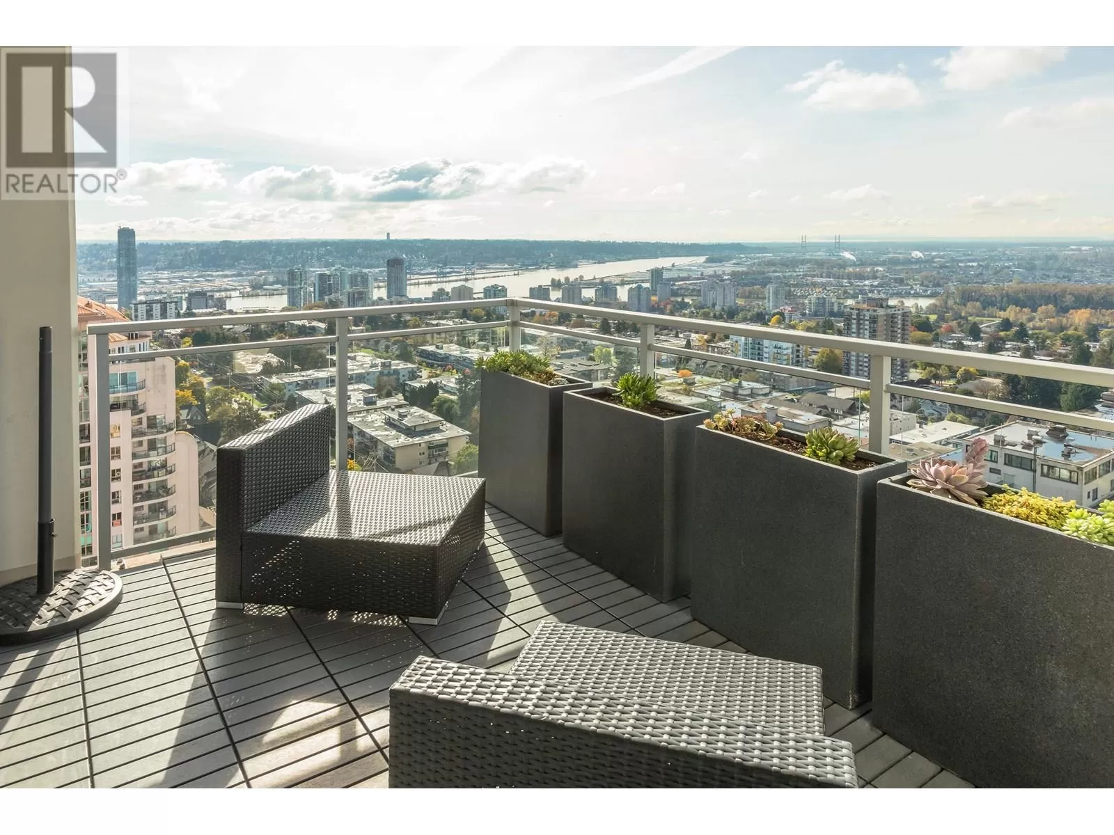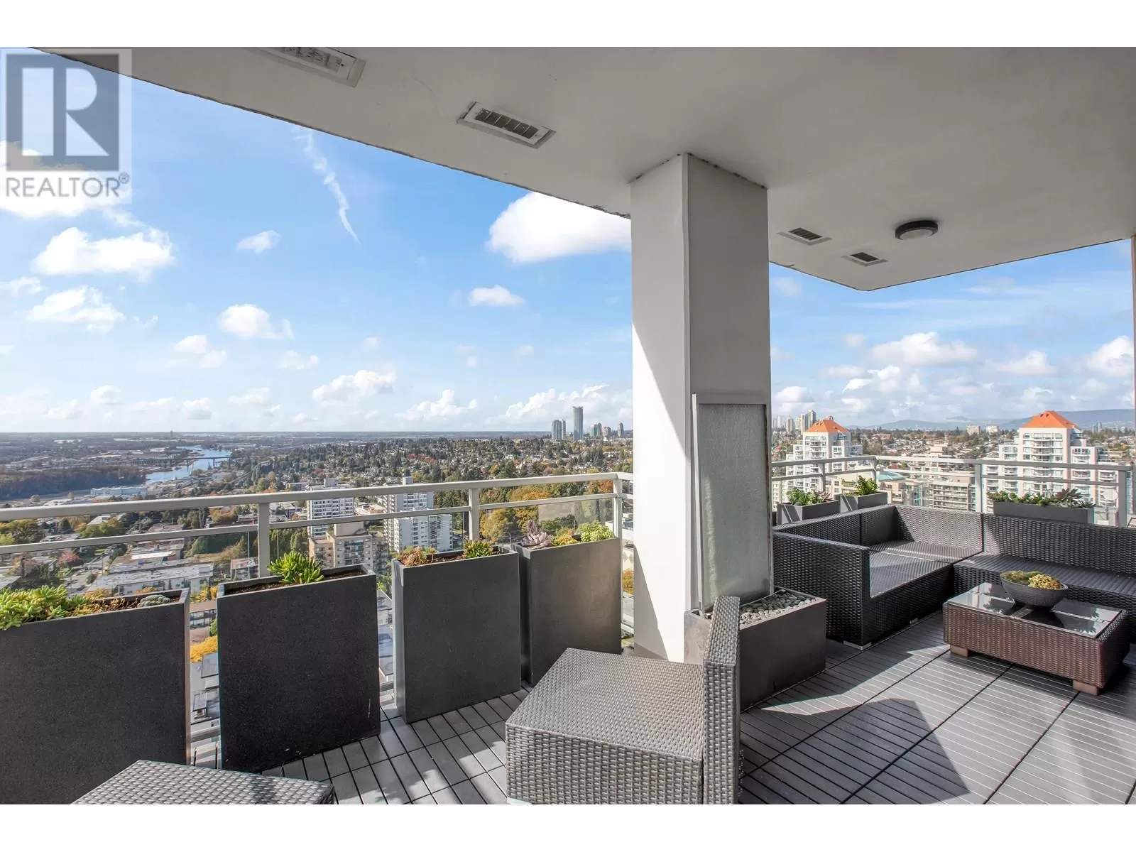 Views... Views.... Views! Located at the highest point of Uptown New West. Stunning 2 bed + den Penthouse in award winning "Viceroy" by Bosa. One level living of approx. 1,900 sqft. indoor / outdoor living. Panoramic wrap around views. High ceilings and extensive updates including new lighting, automated shades, custom drapery, gas fireplace, extensive new cabinets throughout and full HVAC system. Two full spa bathrooms + powder room. High end appliances. Close to restaurants, shops and more. Call today for private viewing. Ask about the current Beautification Project - Uptown Streetscape Vision: https://drive.google.com/file/d/17OPvEqt_n6OgdgeE44lIMw75xLJwusoF/view?usp=drive_link (id:27476)