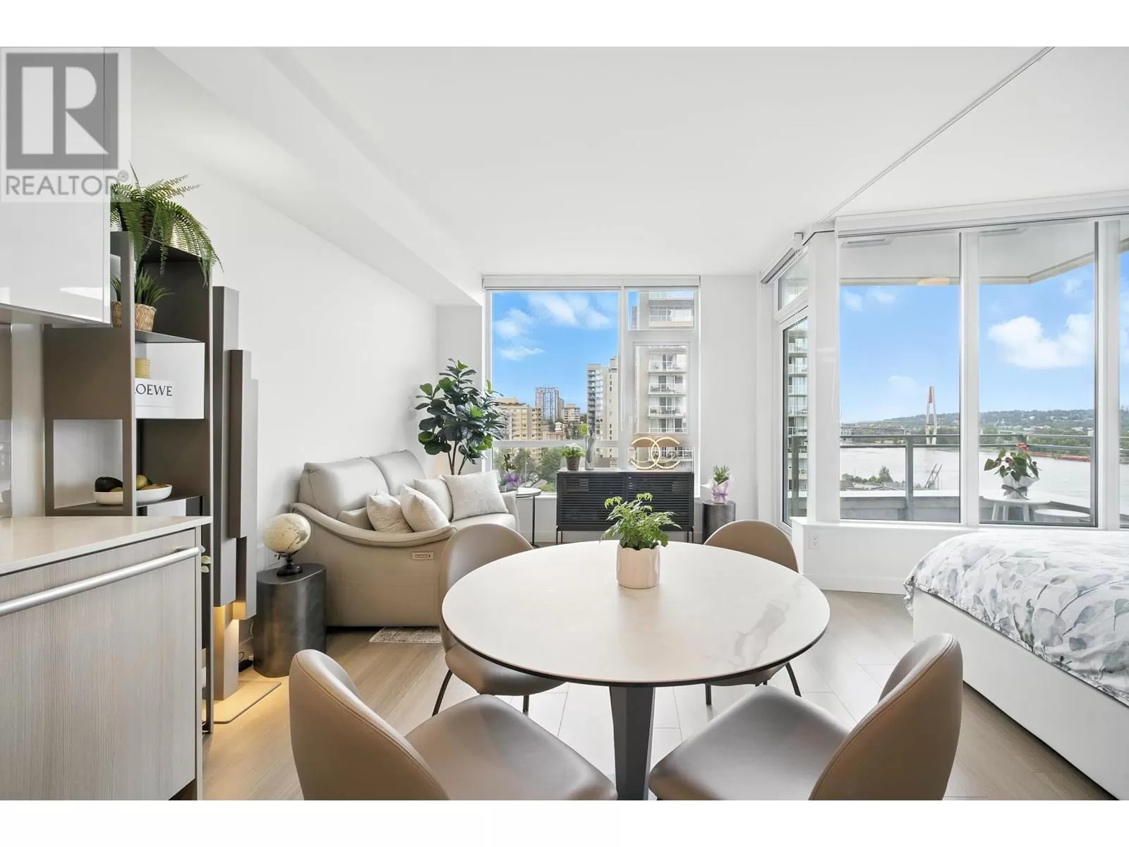 Like new boutique condo studio unit on Level 12 in the heart of New Westminster at 618 Carnarvon offers a spectacular view of Fraser River, Mount Baker, and the city. L-shaped kitchen offers ample prepping space, premium Bosch appliances, gas range and double sinks. High-efficiency Mitsubishi A/C system, East and South facing floor-to-ceiling windows, and custom made blackout shades and curtains boost your comfort. Conveniently located between 2 SkyTrain stations, near local parks, restaurants, shops, and parks, it is great home all year round. Amenities include TV lounge with event kitchen, outdoor patio with barbecue and fire pit, kid playground, dog run, garden, fitness centre, guest suite, on-site building manager. 1 storage included! (id:27476)