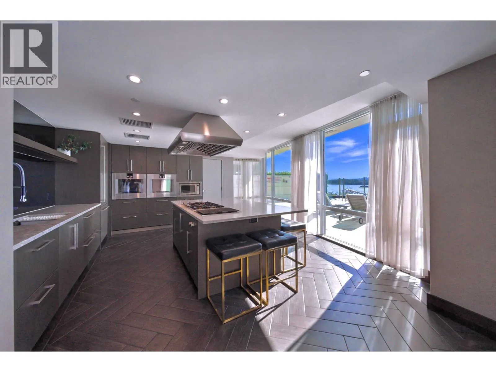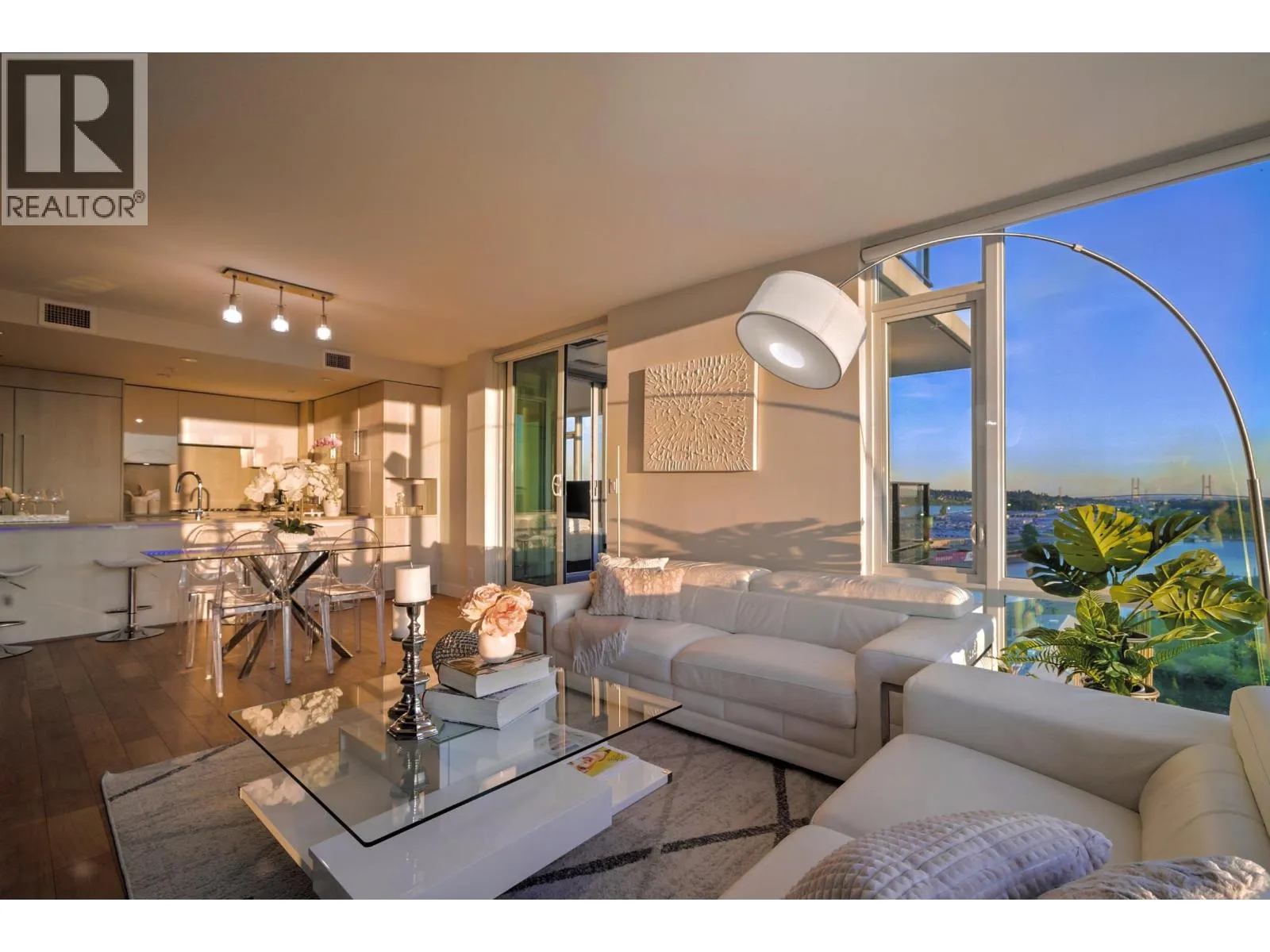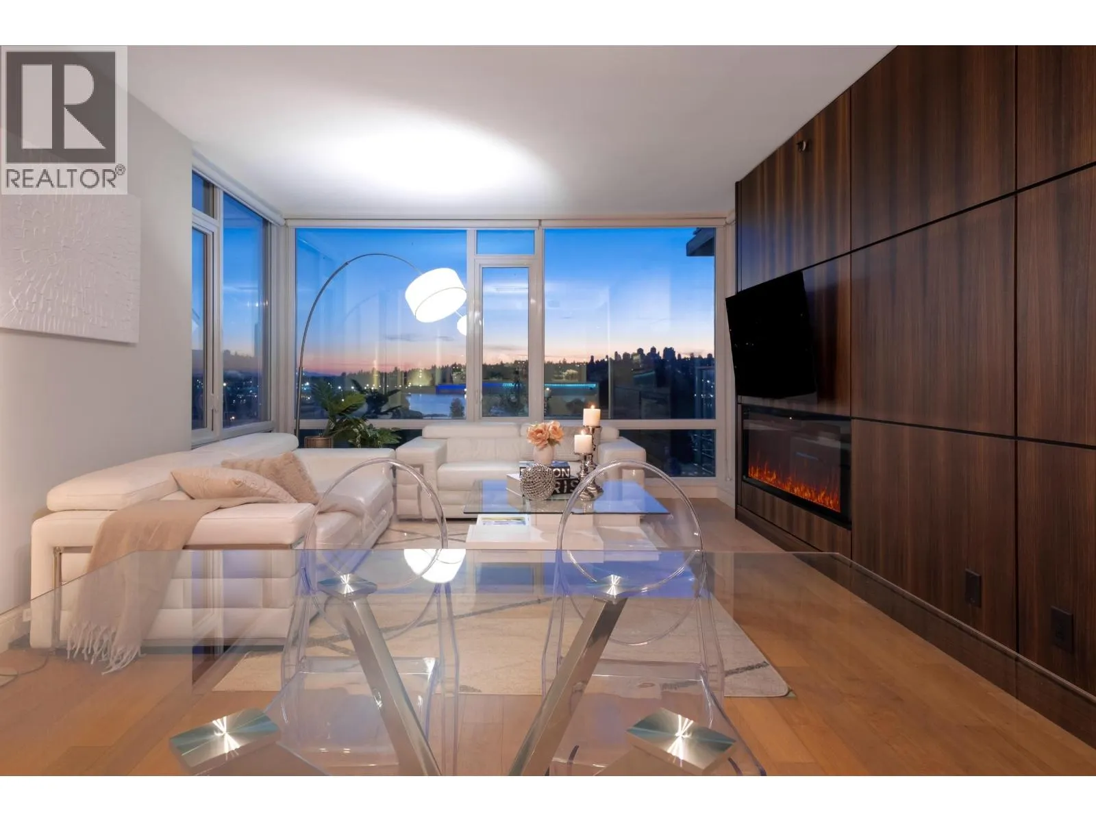 The Peninsula at Port Royal redefines waterfront luxury. This two bed, three bath corner home revels in panoramic water, mountain and city views; southwest glass walls capture every sunset. Airy open living centers a chef´s kitchen with bespoke cabinetry and integrated Gaggenau appliances, hardwood floors & fireplace. Features exclusive to this layout include Two primary style bedrooms, both with ensuites, Two large patios for an additional 218 Sqft of outdoor living space + a powder room. The primary retreat features a walk-in closet and windowed spa bath with dual vanities and a large soaking tub. Enjoy resort amenities: a waterfront jacuzzi, steam room, fitness studio, chef´s lounge, billiards, BBQ terrace, cinema & concierge to complete an unmatched lifestyle. Steps to waterfront boardwalks, cafés, groceries, Queensborough Landing boutiques and the River Market, or hop the Q2Q ferry for a scenic link to Pier Park and riverfront dining. Includes A/C, secure parking & storage locker. (id:27476)