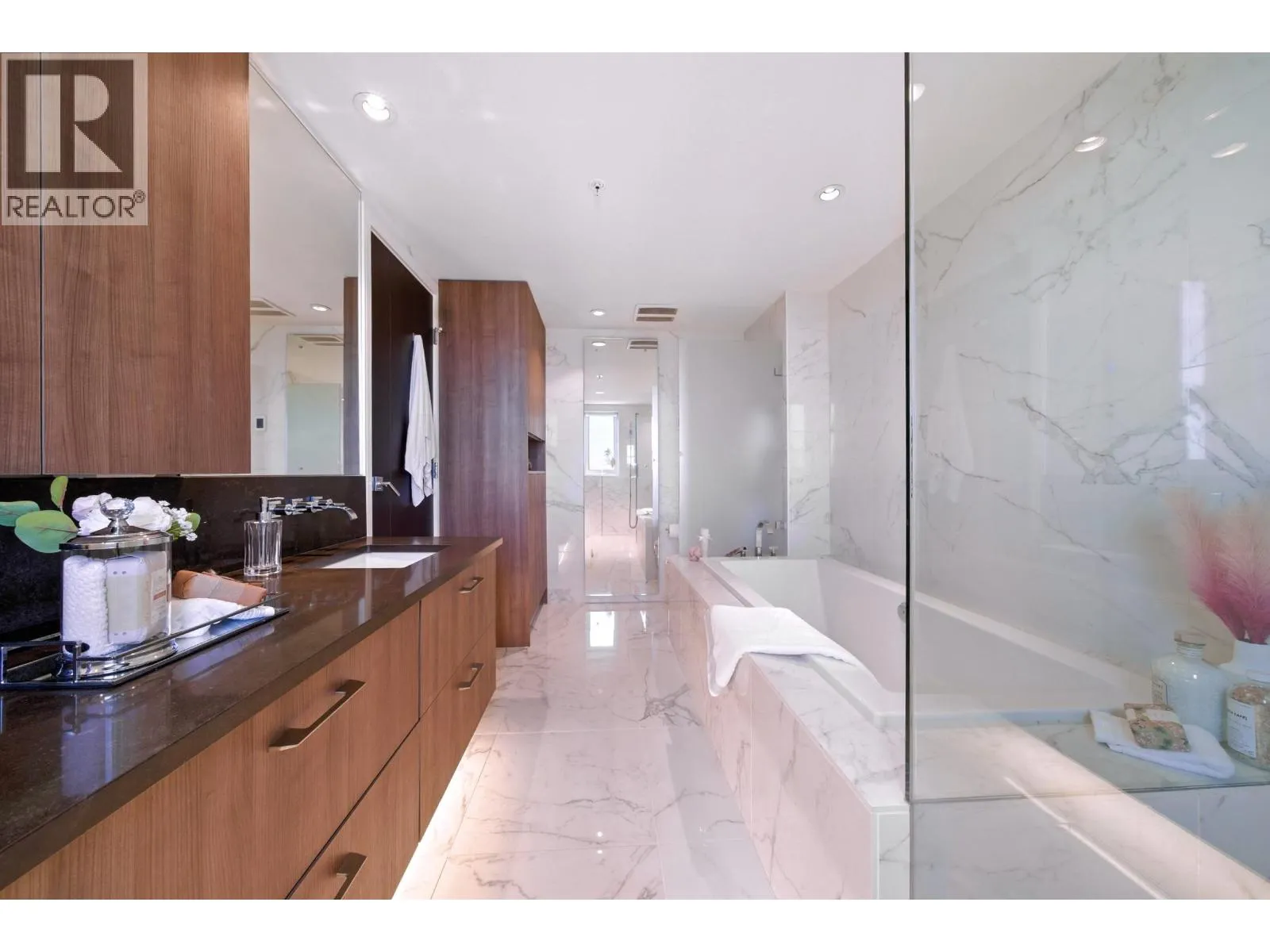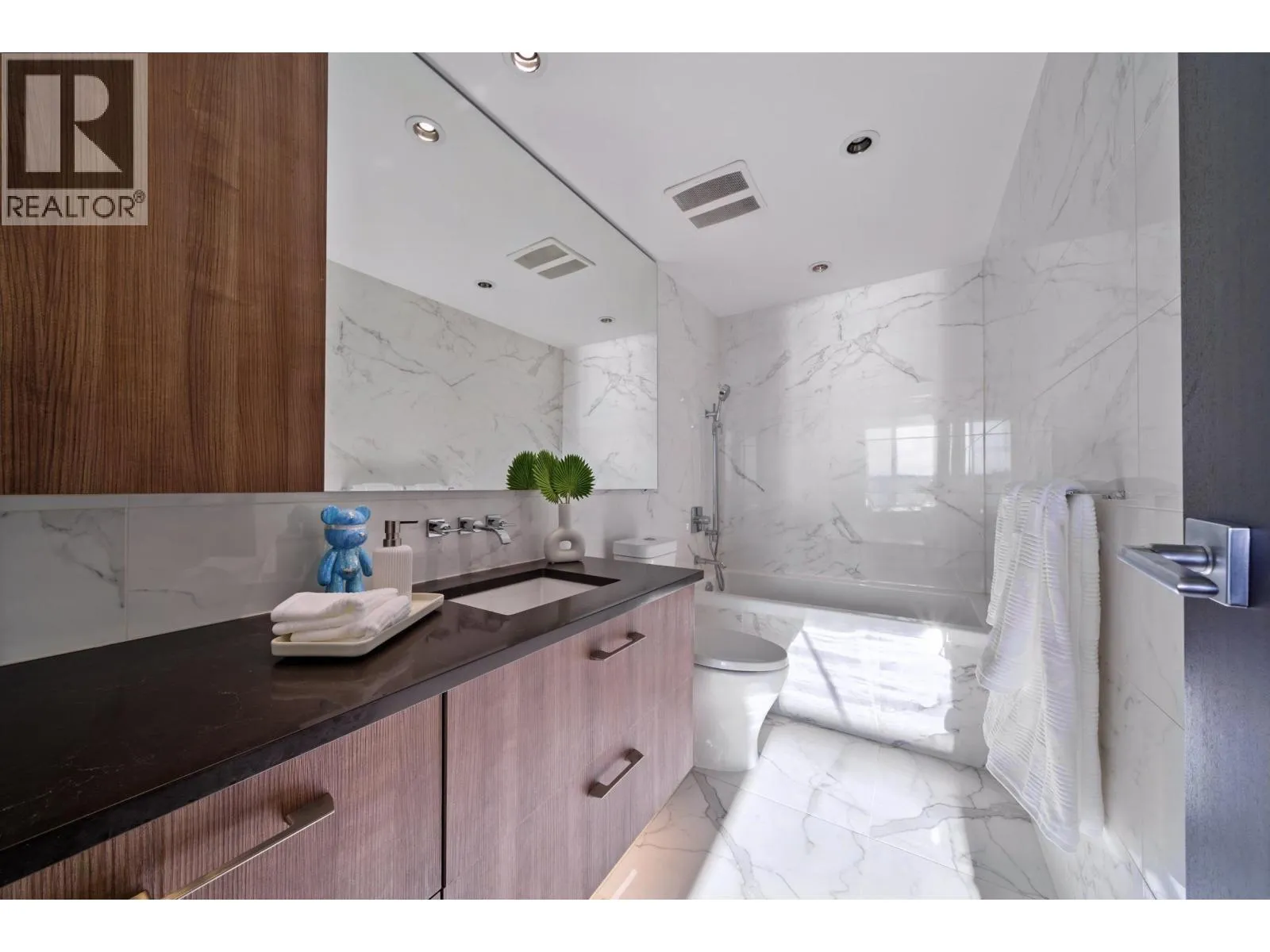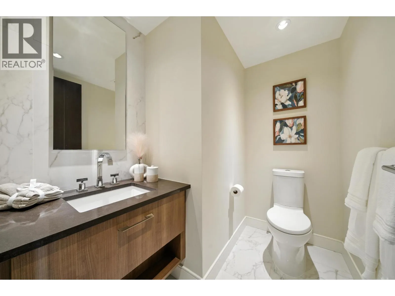 The Peninsula at Port Royal redefines waterfront luxury. This two bed, three bath corner home revels in panoramic water, mountain and city views; southwest glass walls capture every sunset. Airy open living centers a chef´s kitchen with bespoke cabinetry and integrated Gaggenau appliances, hardwood floors & fireplace. Features exclusive to this layout include Two primary style bedrooms, both with ensuites, Two large patios for an additional 218 Sqft of outdoor living space + a powder room. The primary retreat features a walk-in closet and windowed spa bath with dual vanities and a large soaking tub. Enjoy resort amenities: a waterfront jacuzzi, steam room, fitness studio, chef´s lounge, billiards, BBQ terrace, cinema & concierge to complete an unmatched lifestyle. Steps to waterfront boardwalks, cafés, groceries, Queensborough Landing boutiques and the River Market, or hop the Q2Q ferry for a scenic link to Pier Park and riverfront dining. Includes A/C, secure parking & storage locker. (id:27476)