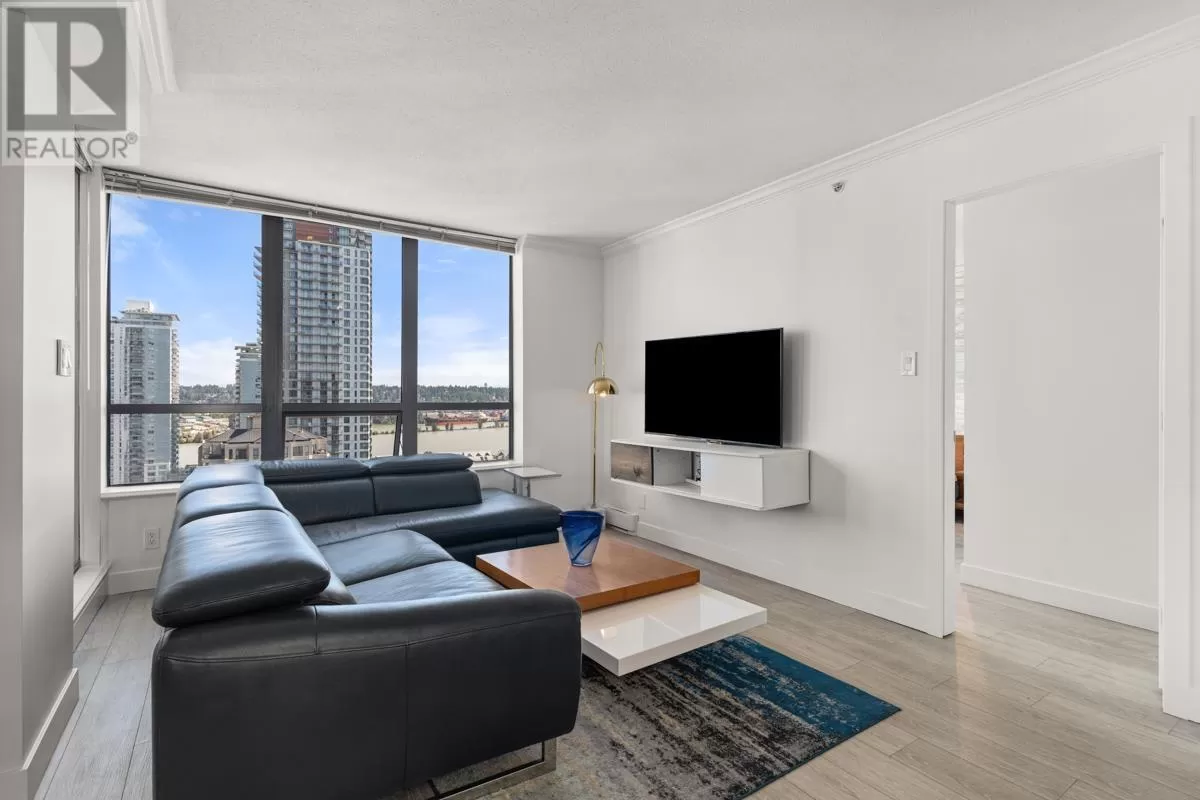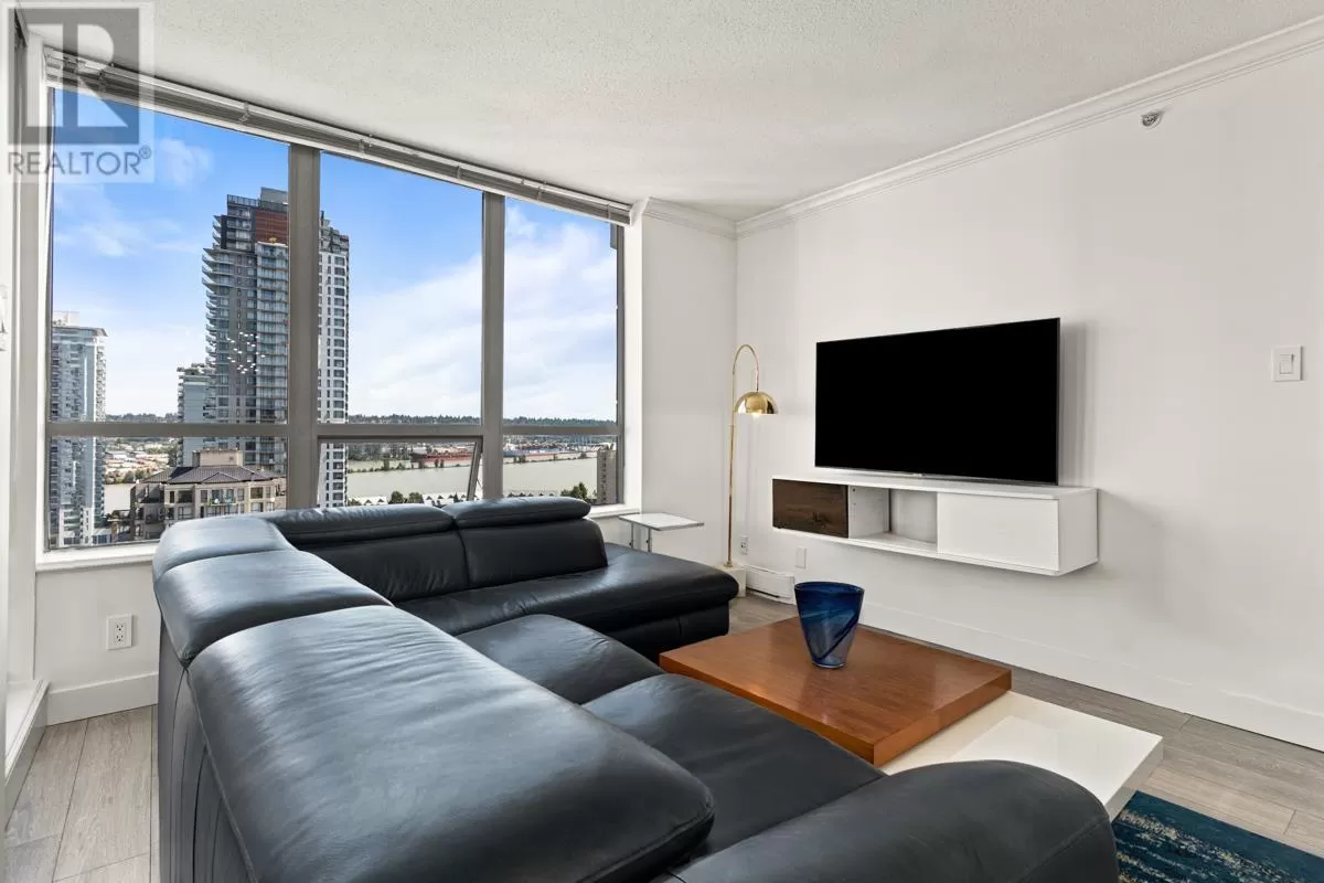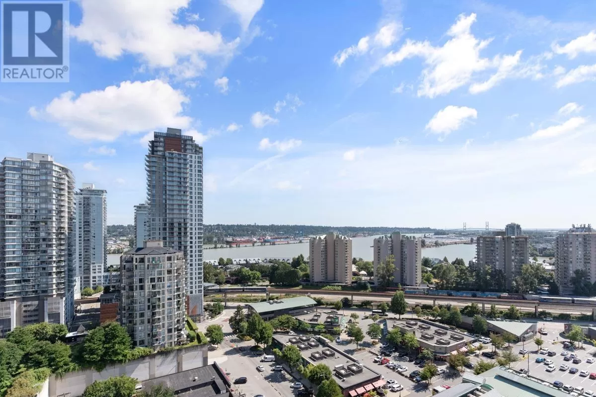 NEW PRICE! FRESHLY PAINTED: 2021 RENO ($55K) 2 BEDROOM PLUS DEN/3RD BR | WRAP AROUND WATER + MOUNTAIN VIEWS | MOST DESIRABLE FLOOR PLAN + HIGH FLOOR | WALK TO SKYTRAIN, QUAY, RESTAURANTS, GROCERIES, THEATRE - Stunning views, floor-to-ceiling windows; south facing sunshine await in this renovated 2 BR + DEN/3RD BR corner home with the best floor plan in the building. Wide plank flooring, brushed gold fixtures, gloss white cabinets, stainless steel/white appliances, barn sink, & custom Italian tile backsplash. Breathtaking views of the Fraser River enjoyed year-round from inside or on your spacious balcony that extends your living area in the warmer months. Primary bedroom has a river-view and renovated ensuite. Additional BR and den/BR share a stylish 3-piece bath and mountain views. Steps to New West Skytrain station, Westminster Quay, shopping/groceries, restaurants, & convenience right at your door. Parking, storage, gym, & INSPECTION REPORT INCL. for peace of mind as well. (id:27476)