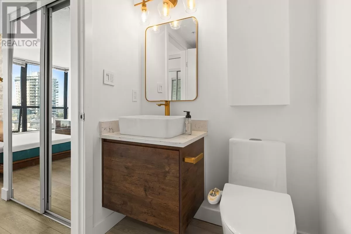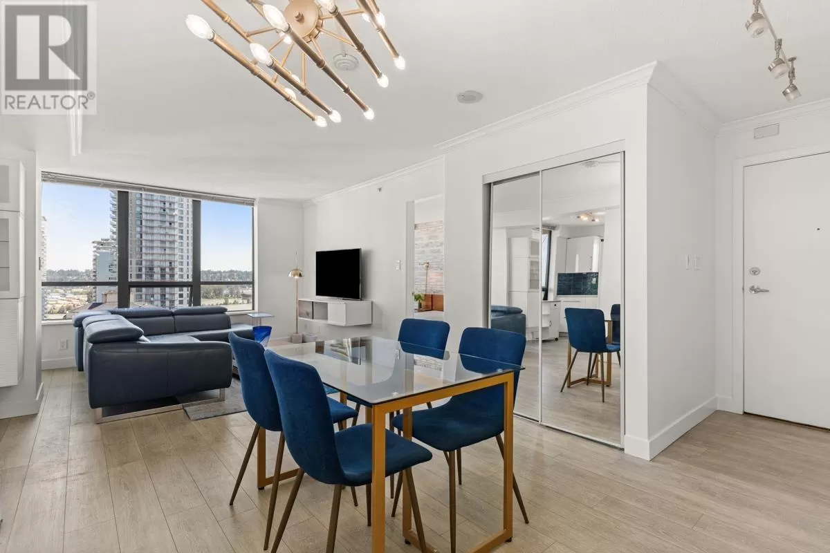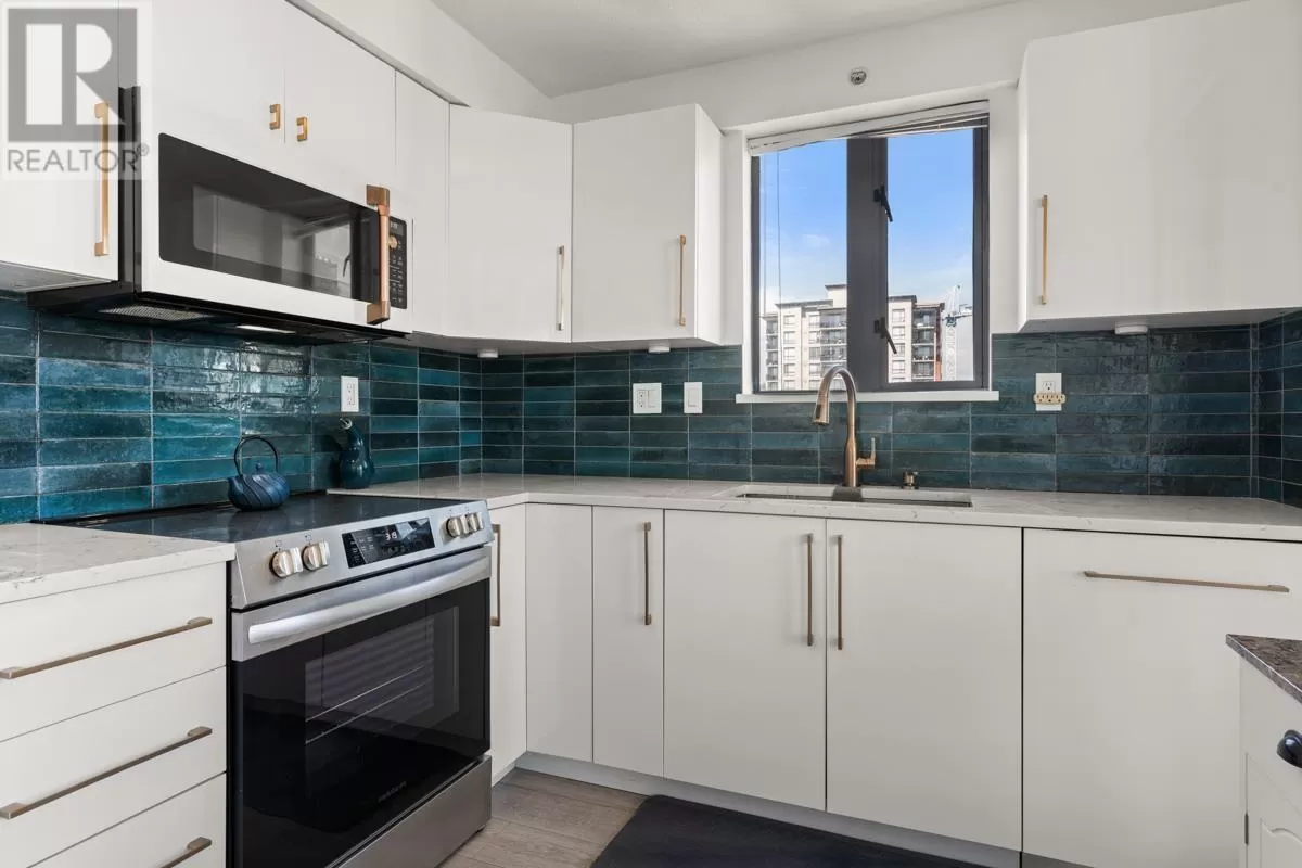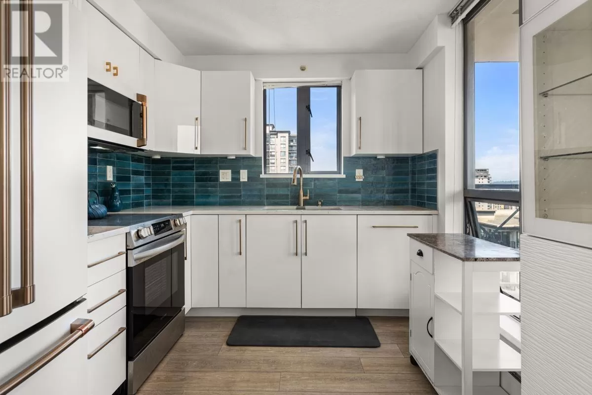 NEW PRICE! FRESHLY PAINTED: 2021 RENO ($55K) 2 BEDROOM PLUS DEN/3RD BR | WRAP AROUND WATER + MOUNTAIN VIEWS | MOST DESIRABLE FLOOR PLAN + HIGH FLOOR | WALK TO SKYTRAIN, QUAY, RESTAURANTS, GROCERIES, THEATRE - Stunning views, floor-to-ceiling windows; south facing sunshine await in this renovated 2 BR + DEN/3RD BR corner home with the best floor plan in the building. Wide plank flooring, brushed gold fixtures, gloss white cabinets, stainless steel/white appliances, barn sink, & custom Italian tile backsplash. Breathtaking views of the Fraser River enjoyed year-round from inside or on your spacious balcony that extends your living area in the warmer months. Primary bedroom has a river-view and renovated ensuite. Additional BR and den/BR share a stylish 3-piece bath and mountain views. Steps to New West Skytrain station, Westminster Quay, shopping/groceries, restaurants, & convenience right at your door. Parking, storage, gym, & INSPECTION REPORT INCL. for peace of mind as well. (id:27476)