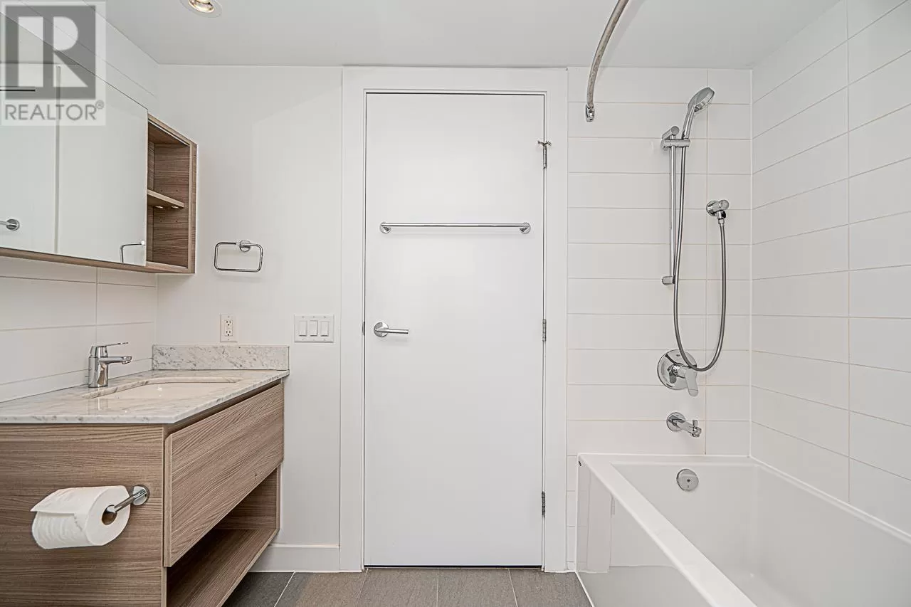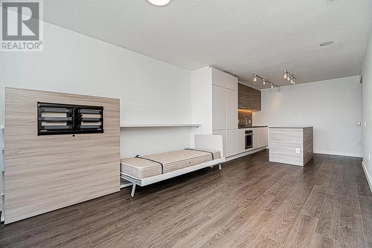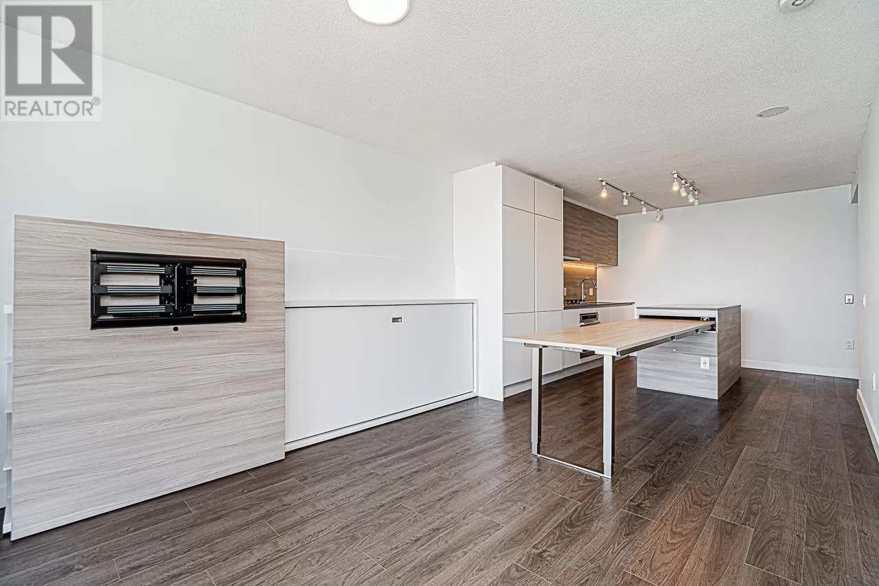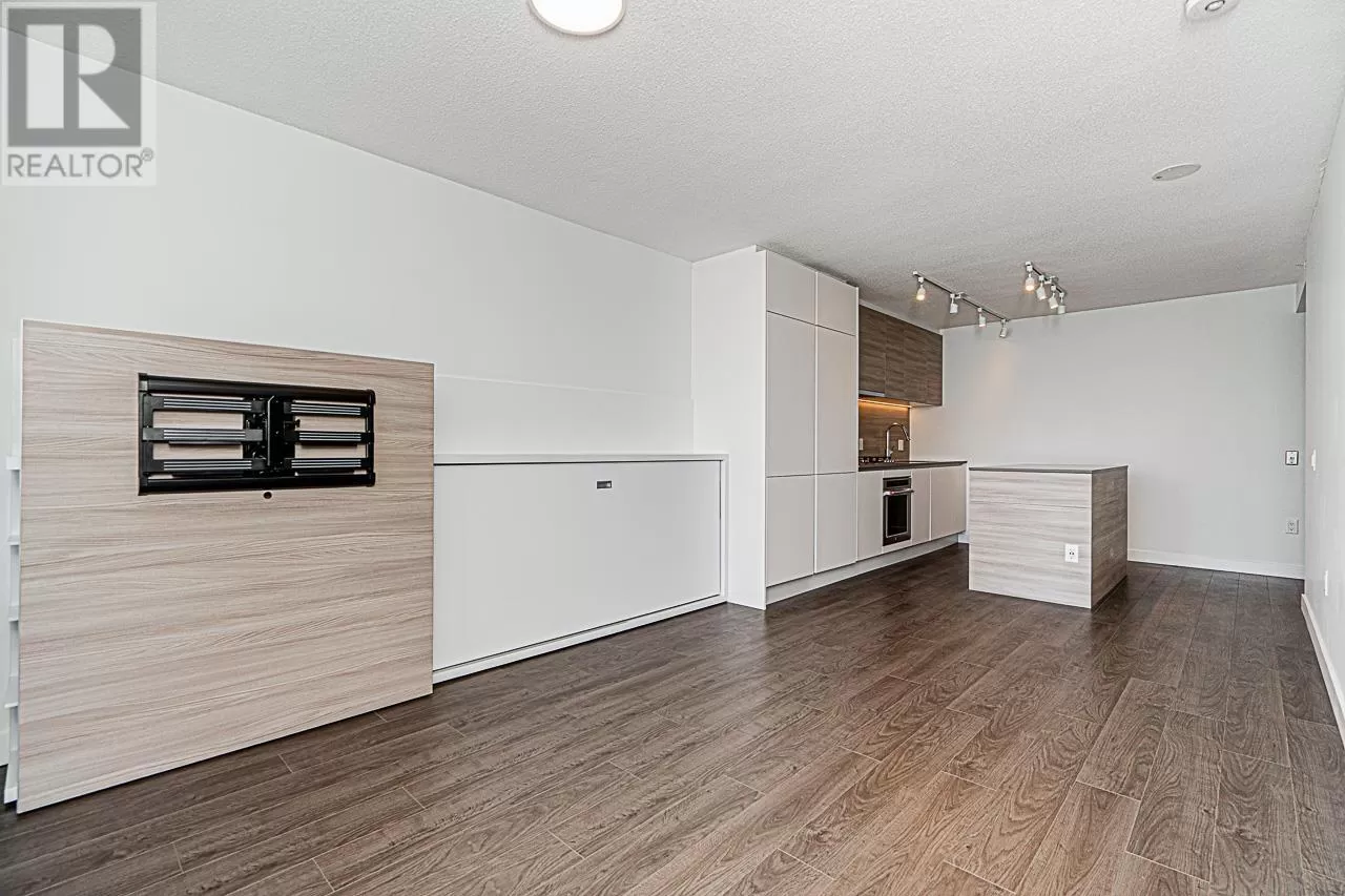 Riversky 1 by Bosa! This stunning waterfront high-rise is located in the heart of New Westminster Quay. This spacious 1 bed, 1 bath home offers 575 square ft of open-concept living with views of the Fraser River and mountains. Large windows fill the space with natural light. Features include a built-in extendable dining table and a floating TV panel that slides to reveal extra space for a pull-out bed. Amenities include a gym, yoga studio, entertainment lounge, rooftop patio, terrace, and bike room. Steps to the Boardwalk, River Market, parks, shopping, and SkyTrain. Includes 1 parking stall and a storage locker. (id:27476)