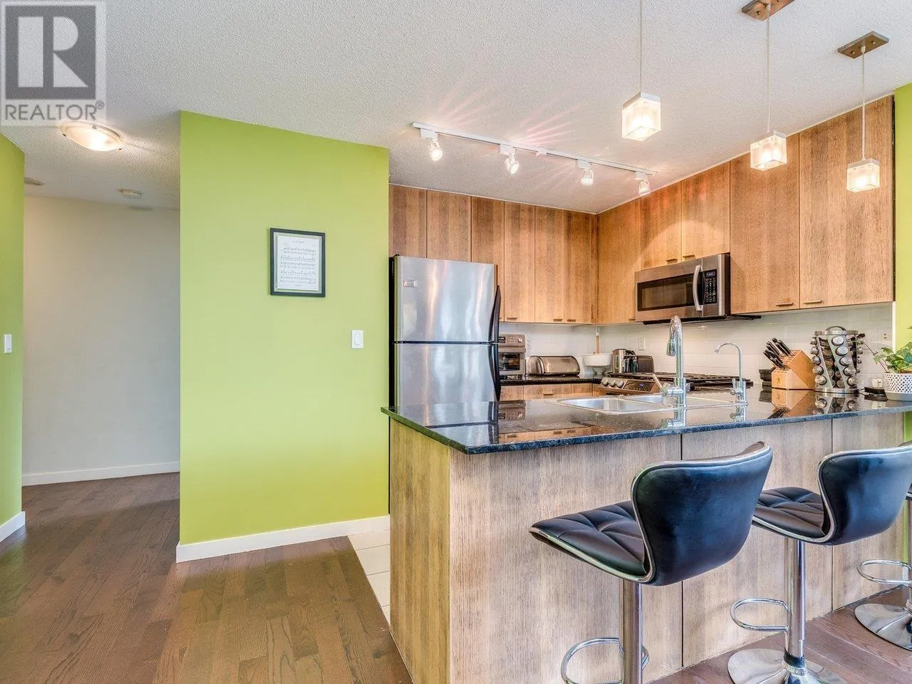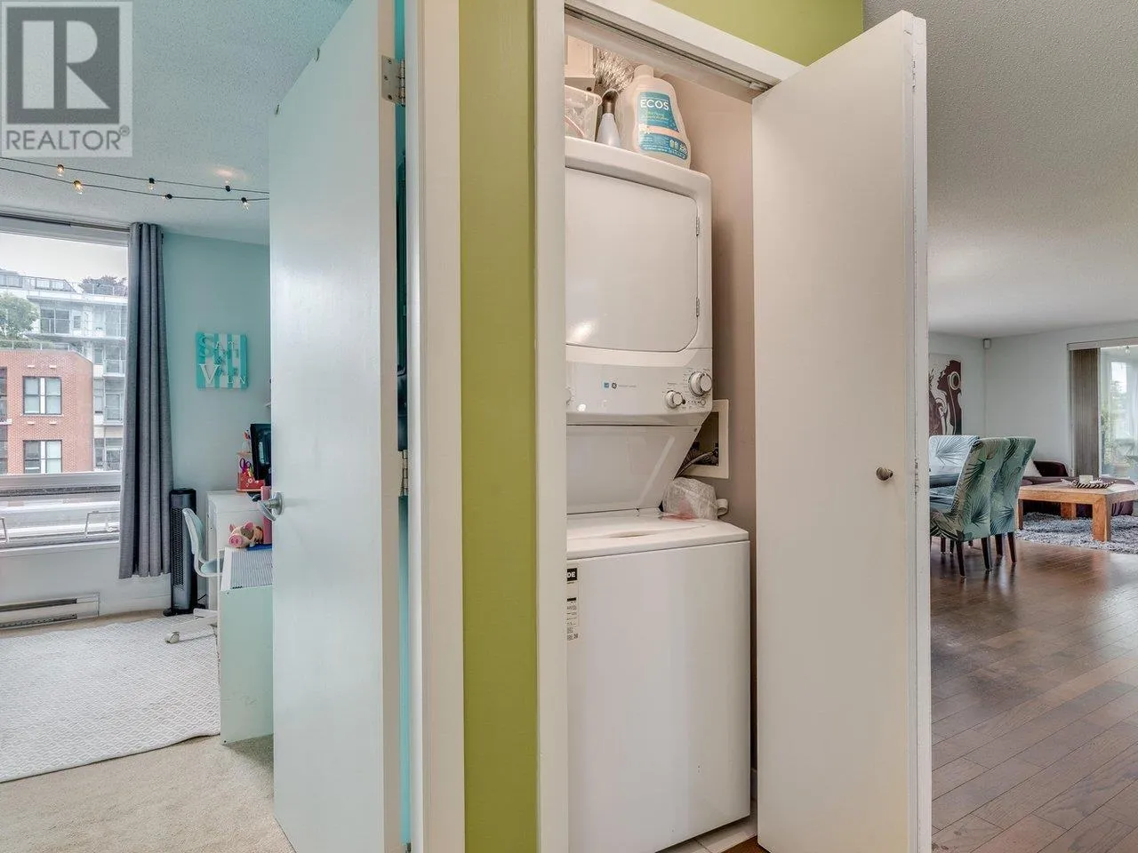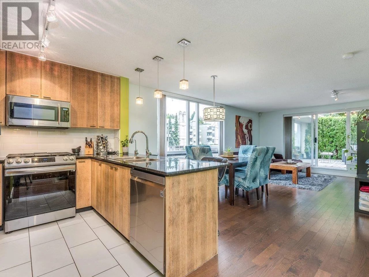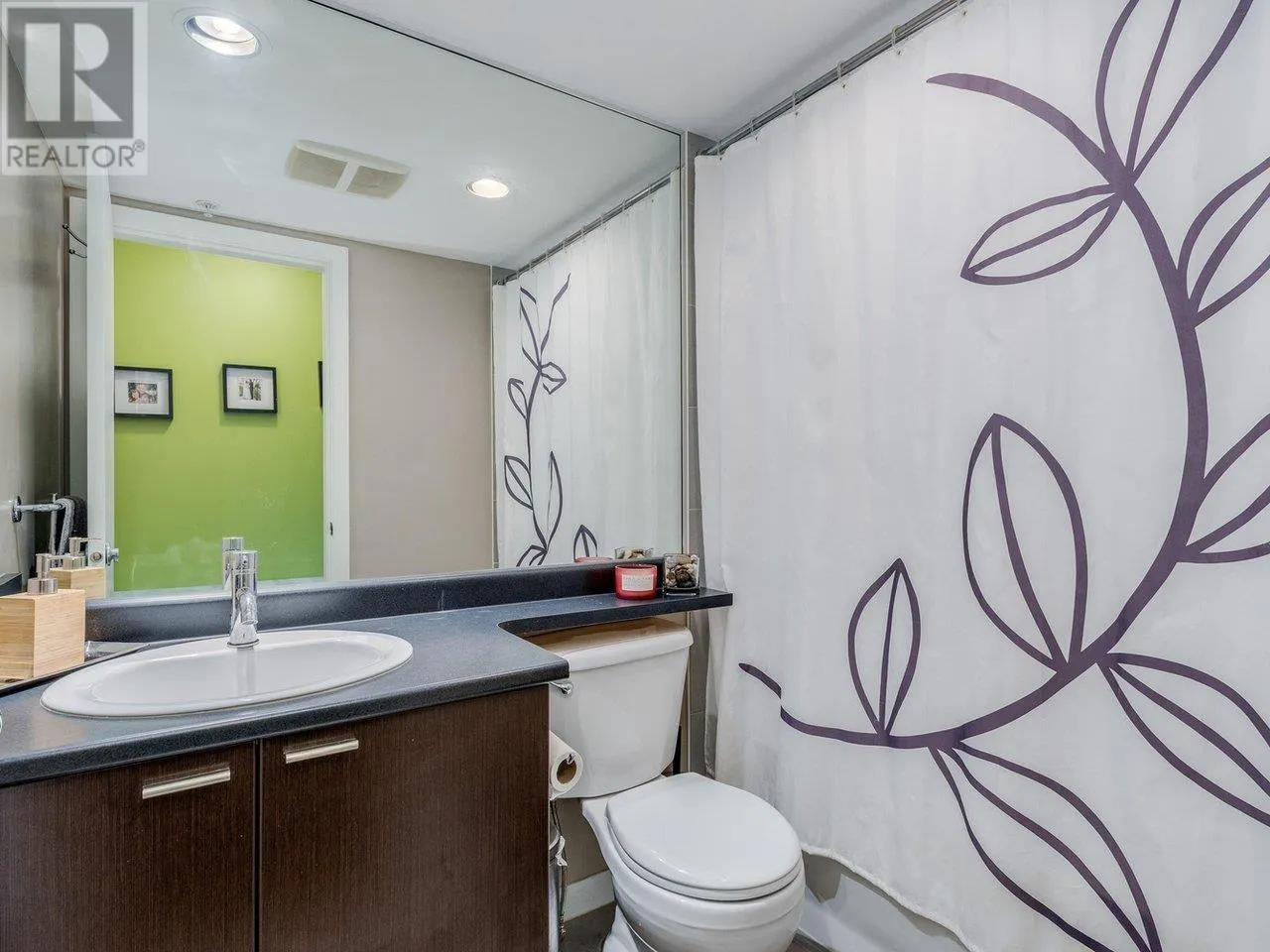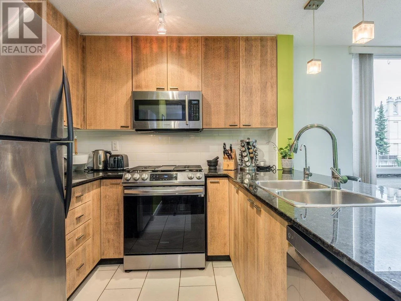 Quantum built by Bosa -- east facing two bedroom + den, two bath (1027 sf) condo with a spacious patio (362 sf) backing onto the 5th floor private garden. There's an open kitchen with a peninsula, plus a large dining and living area. Bedrooms are separated on either side of the condo. Amenities include a fabulous gym, sauna. One parking, one locker. Wonderful downtown walk-ability as you are steps to the skytrain station (either New West or Columbia), Pier Park and the New West Quay, shopping, schools. Two pets allowed, dogs and cats (dogs up to 20" at shoulder). Interested? Call your realtor for a viewing. Open house Sunday Aug 3 2-3:30 pm. (id:27476)