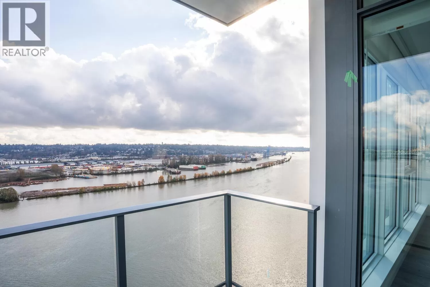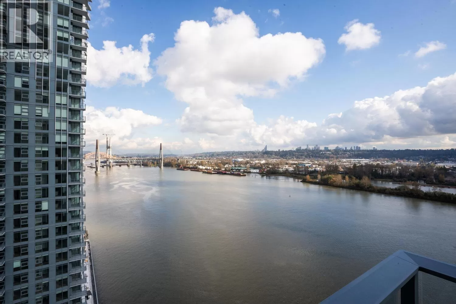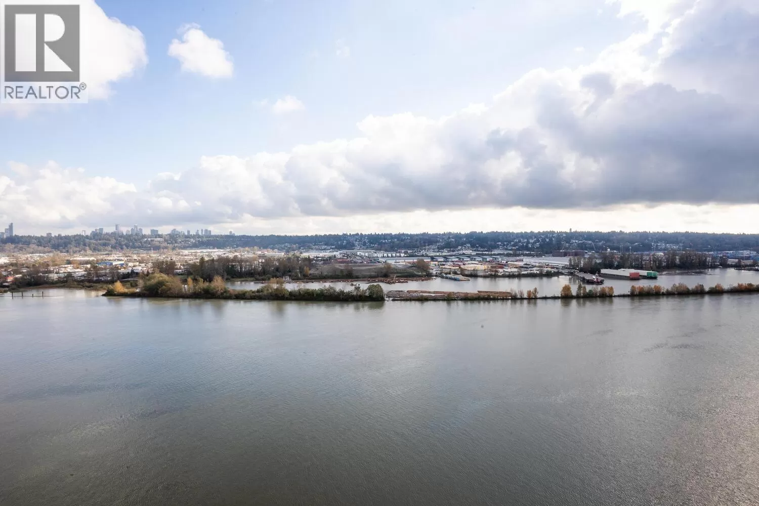 Welcome to PIER WEST by Bosa, the most PRESTIGIOUS address on the New West WATERFRONT! Enjoy breathtaking 180 degree UNOBSTRUCTED RIVER/CITY VIEWS from this luxurious corner unit home. Features include floor to ceiling windows in each room to fully take advantage of the view, AC, Bosch high-end appliance package with panel fridge, wall over, gas cook top, island, waterfall stone counter tops, heated floors in both baths, den for home office/study & so much more! Luxury World-class amenities include Owner's Club House, Dining lounge with outdoor space with BBQ's gym facility, Sauna/Steam rooms & a 24-hour concierge just to name a few. Mere steps to eclectic shops, eateries, parks & transit round out this incredible opportunity. No disappointment! Call today for your private viewing. (id:27476)