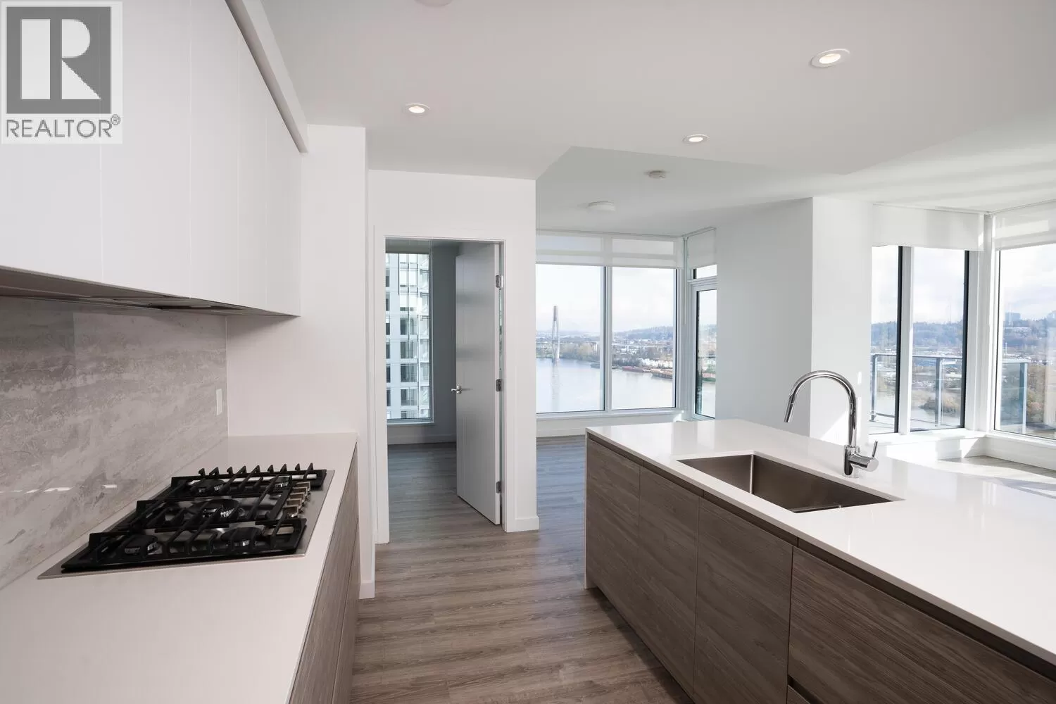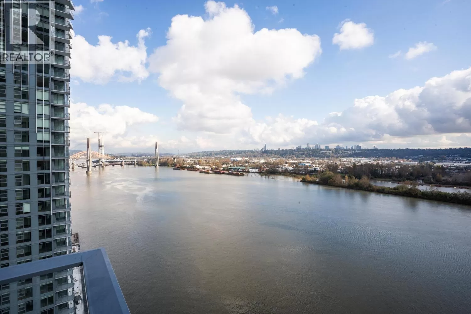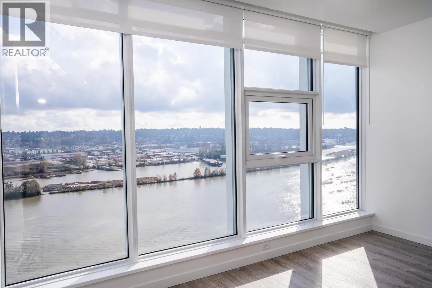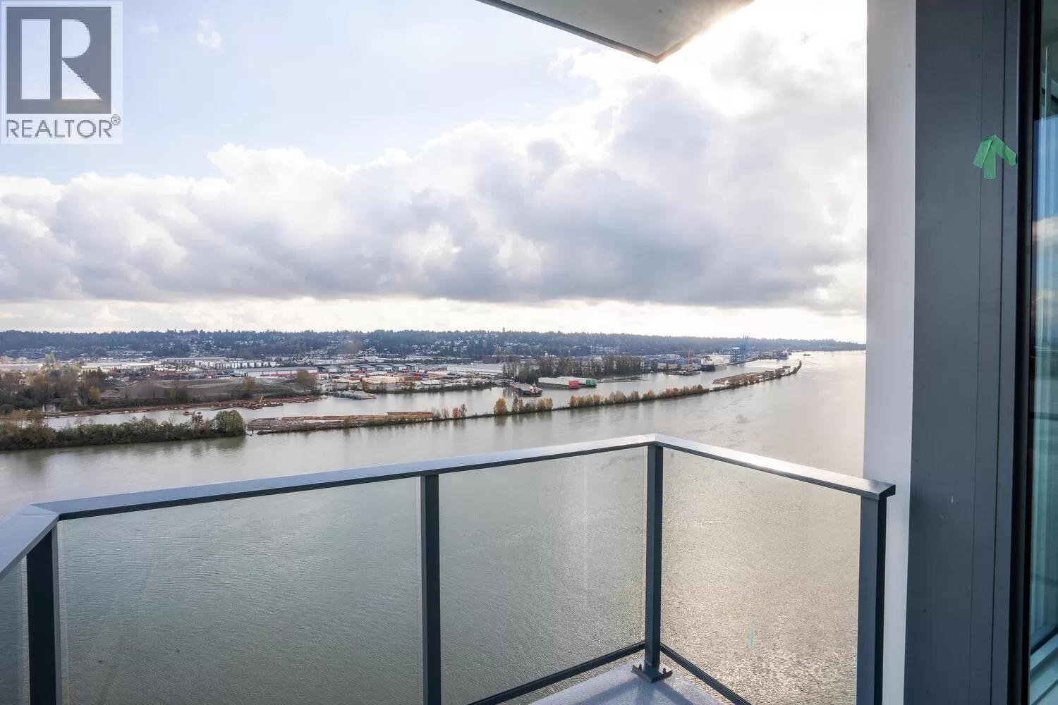 Welcome to PIER WEST by Bosa, the most PRESTIGIOUS address on the New West WATERFRONT! Enjoy breathtaking 180 degree UNOBSTRUCTED RIVER/CITY VIEWS from this luxurious corner unit home. Features include floor to ceiling windows in each room to fully take advantage of the view, AC, Bosch high-end appliance package with panel fridge, wall over, gas cook top, island, waterfall stone counter tops, heated floors in both baths, den for home office/study & so much more! Luxury World-class amenities include Owner's Club House, Dining lounge with outdoor space with BBQ's gym facility, Sauna/Steam rooms & a 24-hour concierge just to name a few. Mere steps to eclectic shops, eateries, parks & transit round out this incredible opportunity. No disappointment! Call today for your private viewing. (id:27476)