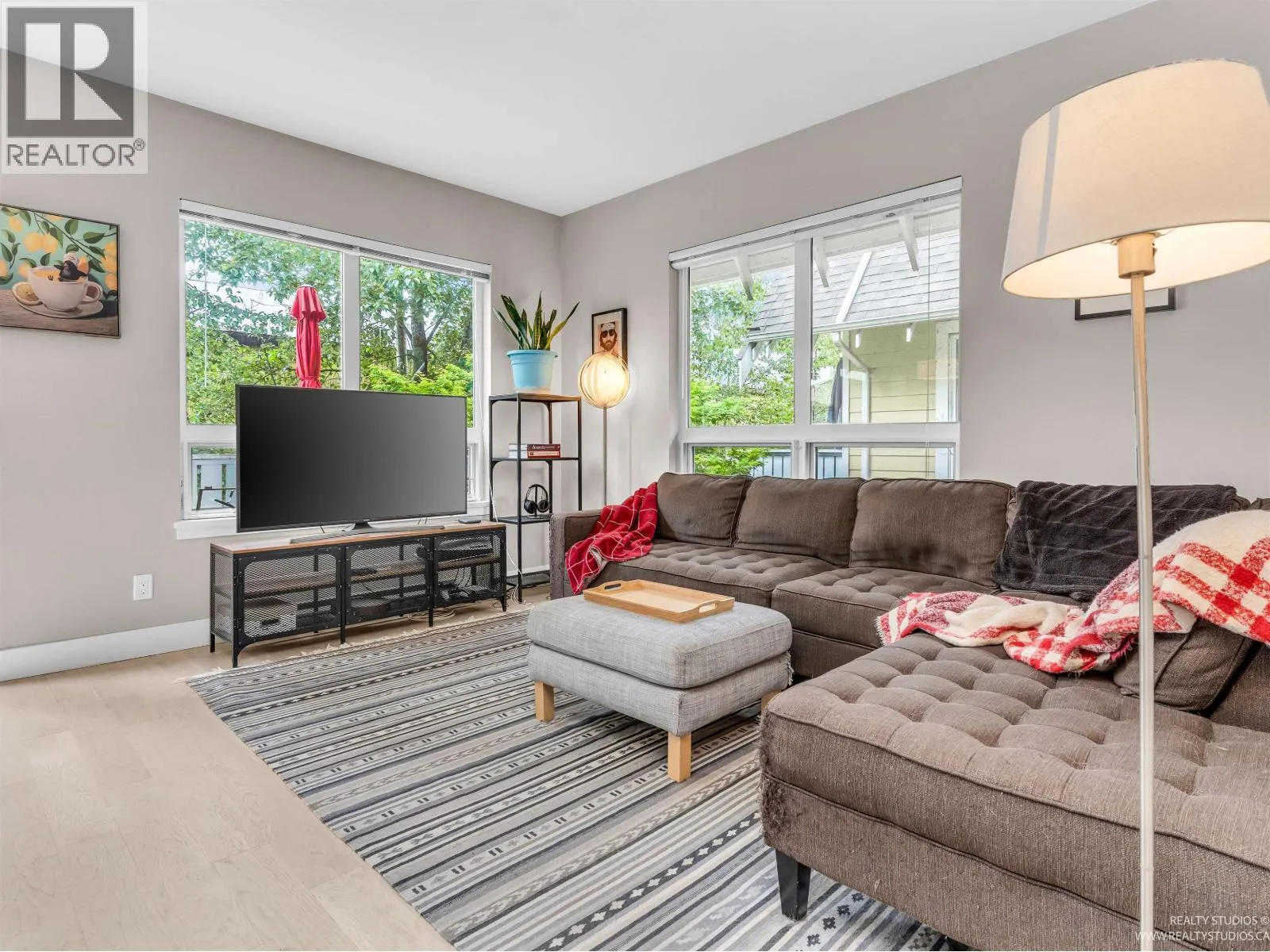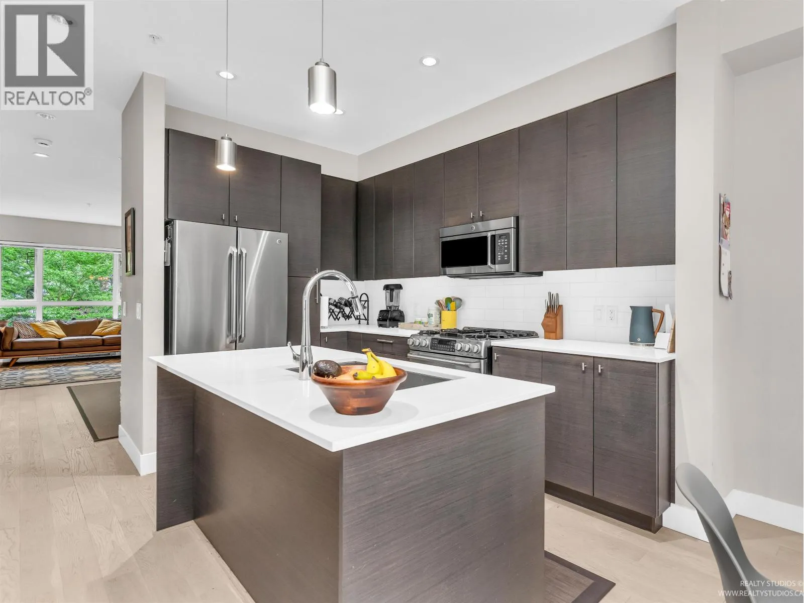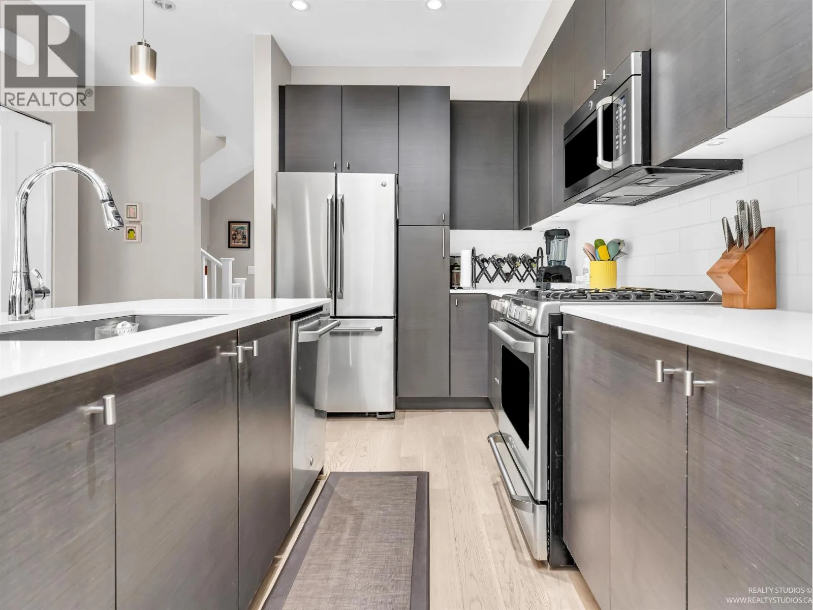 NEW PRICE! Family sized corner unit, 3 bedroom, 3 bathroom townhouse for sale in Queensborough, New West. Charming tree lined street, fenced front yard and porch. This very large 1759 square ft townhome has an open concept floorplan and great light in the living room and dining area. Electric fireplace and feature wall. Large kitchen with island and quartz countertops, stainless steel appliances and balcony off the kitchen eating area and family room. Powder room on the main level and 2 bathrooms upstairs. Vaulted ceiling in the large primary bedroom that is big enough for a King sized bed. Skylights. Ensuite bath has double vanity and both a tub and shower. Double garage with side by side parking stalls. A short walk to the Riverfront and close to the Marina. Carpet and shower door just replaced.Open House Sat Nov 23rd 2pm to 4pm. (id:27476)