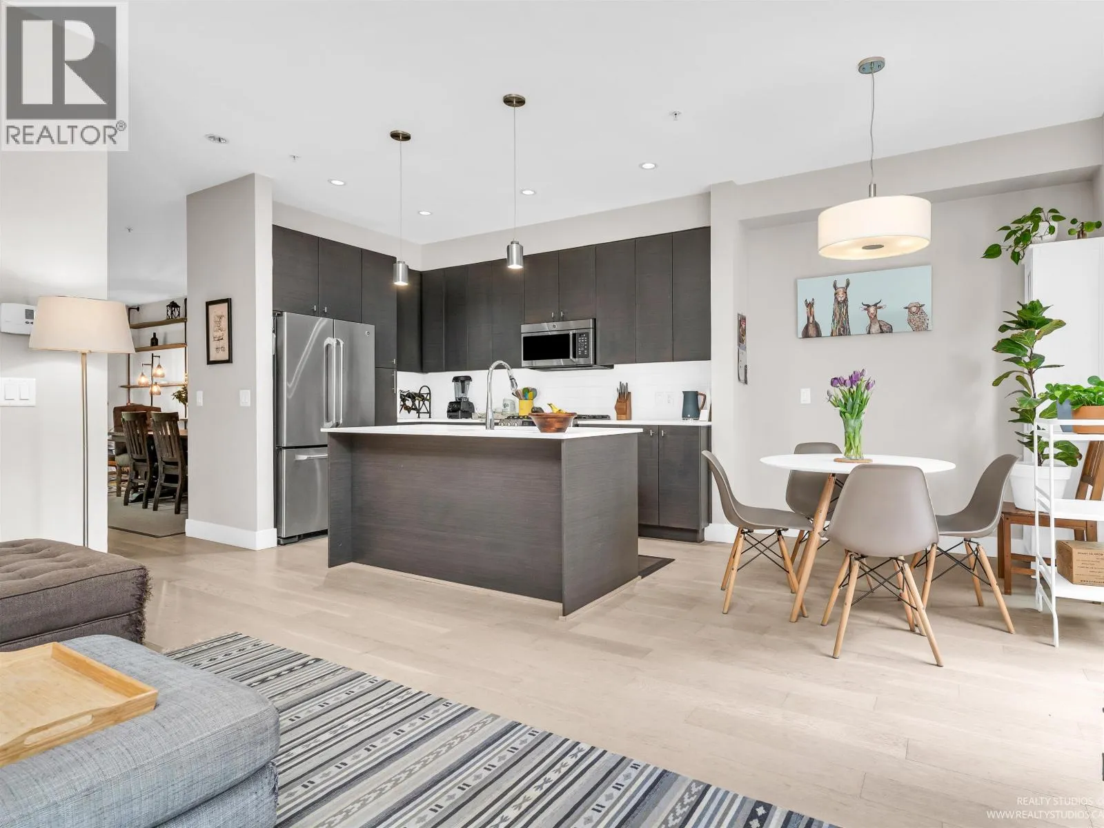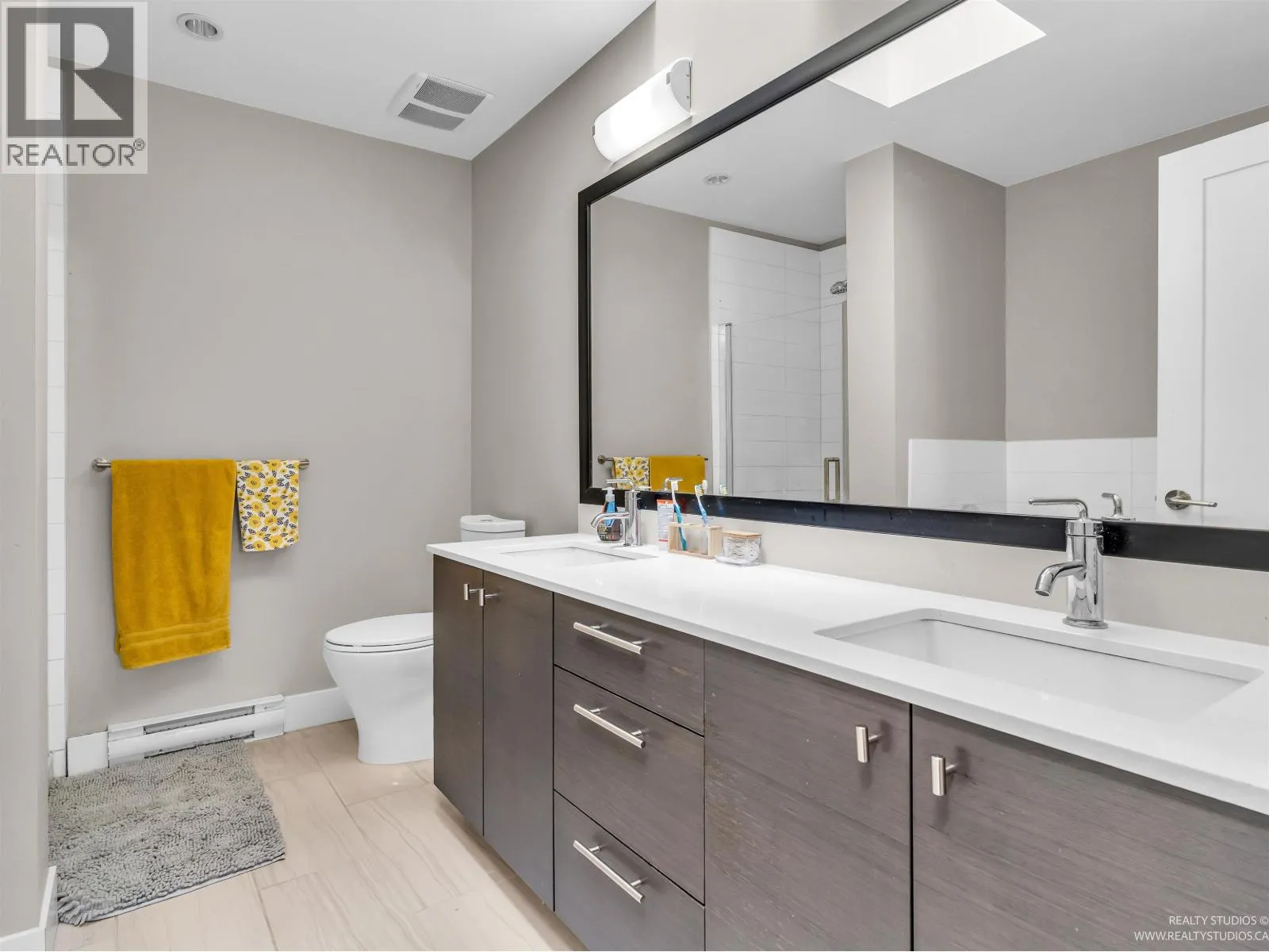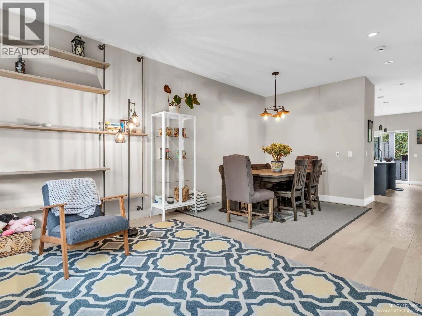 NEW PRICE! Family sized corner unit, 3 bedroom, 3 bathroom townhouse for sale in Queensborough, New West. Charming tree lined street, fenced front yard and porch. This very large 1759 square ft townhome has an open concept floorplan and great light in the living room and dining area. Electric fireplace and feature wall. Large kitchen with island and quartz countertops, stainless steel appliances and balcony off the kitchen eating area and family room. Powder room on the main level and 2 bathrooms upstairs. Vaulted ceiling in the large primary bedroom that is big enough for a King sized bed. Skylights. Ensuite bath has double vanity and both a tub and shower. Double garage with side by side parking stalls. A short walk to the Riverfront and close to the Marina. Carpet and shower door just replaced.Open House Sat Nov 23rd 2pm to 4pm. (id:27476)
