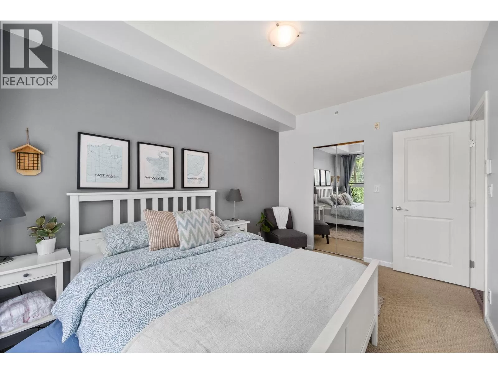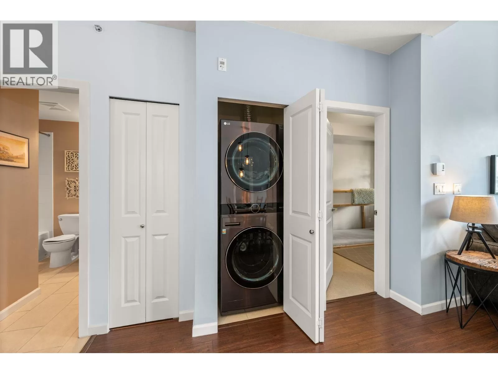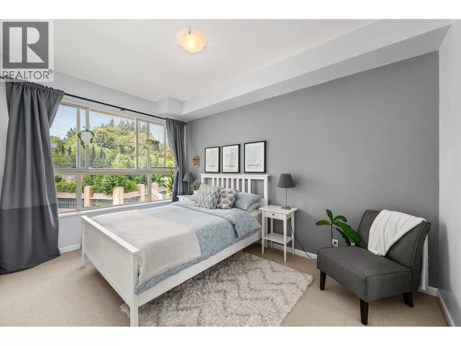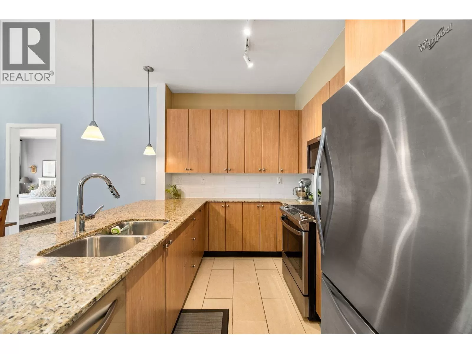 Elevated Living in Victoria Hill - A Rare Top Floor Retreat! Welcome to The Grove, this west-facing top floor level 2 bed, 2 bath home boasts soaring 12ft vaulted living room ceilings and oversized windows, filling the open-concept space with warm southwest light. The stylish kitchen features granite counters, stainless steel appliances, and sleek cabinetry, while the split-bedroom layout offers maximum privacy with two walk-in closets. Laminate floors flow through the bright living/dining area with upgraded lighting, opening to a sunny balcony. Immaculate condition with in-suite laundry (new modern washer/dryer), 2 parking stalls & storage. Exceptional amenities with full gym, theatre, lounge, library, basketball court & more. Steps to Queens Park, shops, dining, SkyTrain & transit. (id:27476)