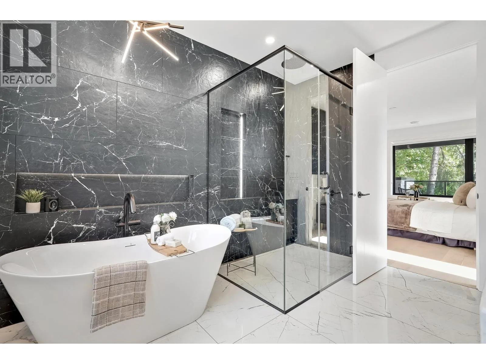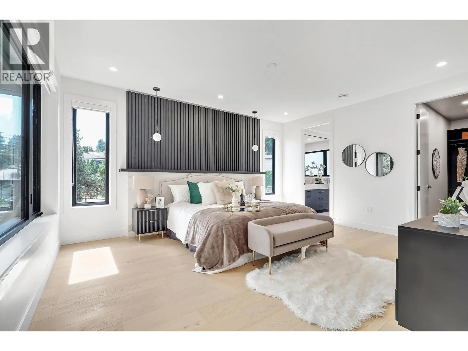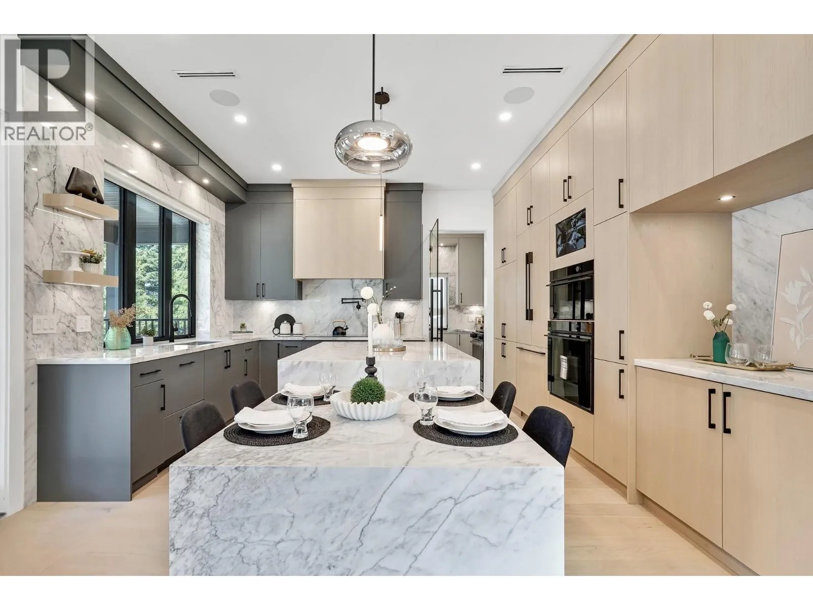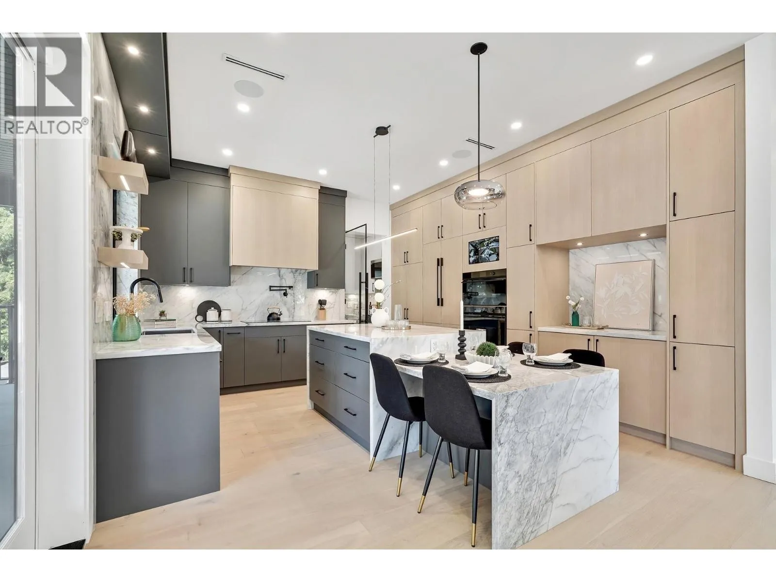 Experience unmatched luxury & sustainability in this stunning Net Zero Ready residence perfectly located in the vibrant heart of New Westminster. Thoughtfully designed, this 8 bed, 8 bath masterpiece offers exceptional versatility & comfort for multi-generational living or investment potential. The open-concept main floor features 10" ceilings, glass folding patio doors, chef-inspired gourmet marble kitchen, wok kitchen with city & mtn views, mud room, & primary bed with walk in shower adding modern practicality. 4 beds, 3 bath & laundry upstairs with legal 1-bed suite, & rec room downstairs. High-performance building standards ensure superior energy efficiency, year round comfort, & unparalleled indoor air quality. Over 4100 square ft living space plus a spacious 700 square ft garage ready with level 2 EV charging - perfect for multiple vehicles, a workshop or gym. Situated close to top-rated schools, parks, shopping, & transit. Showings by Appointment. (id:27476)