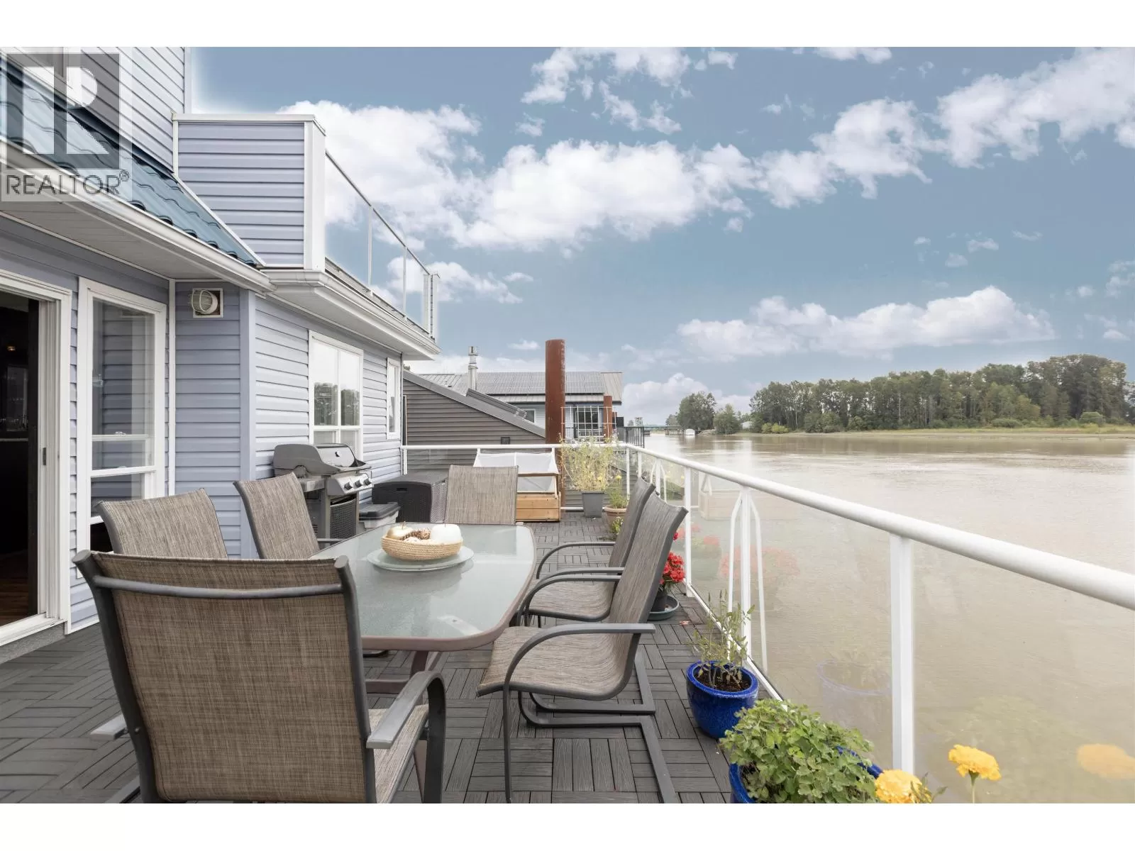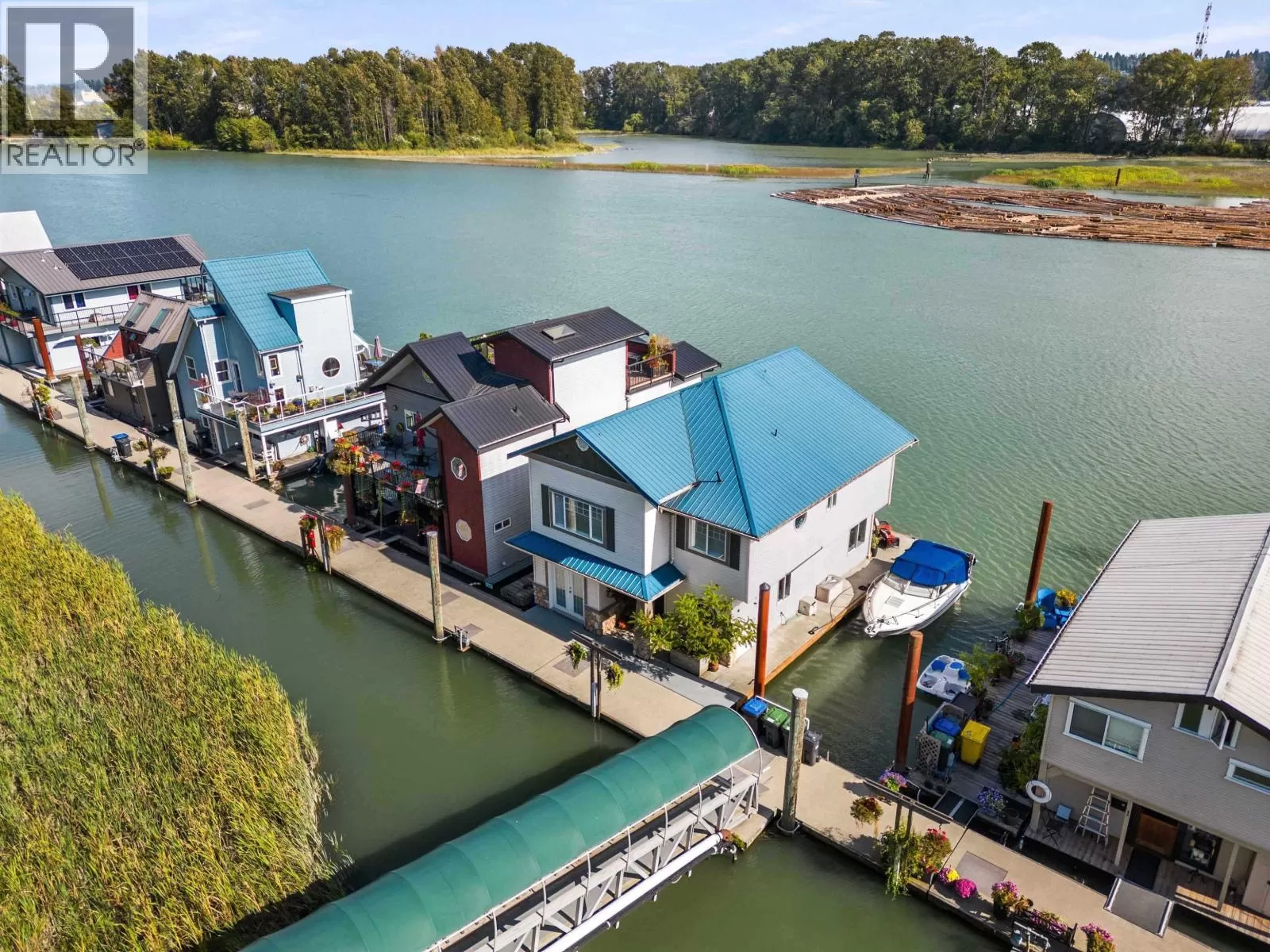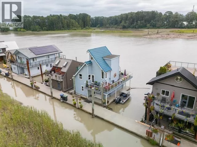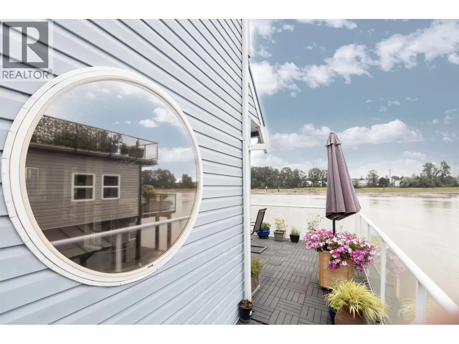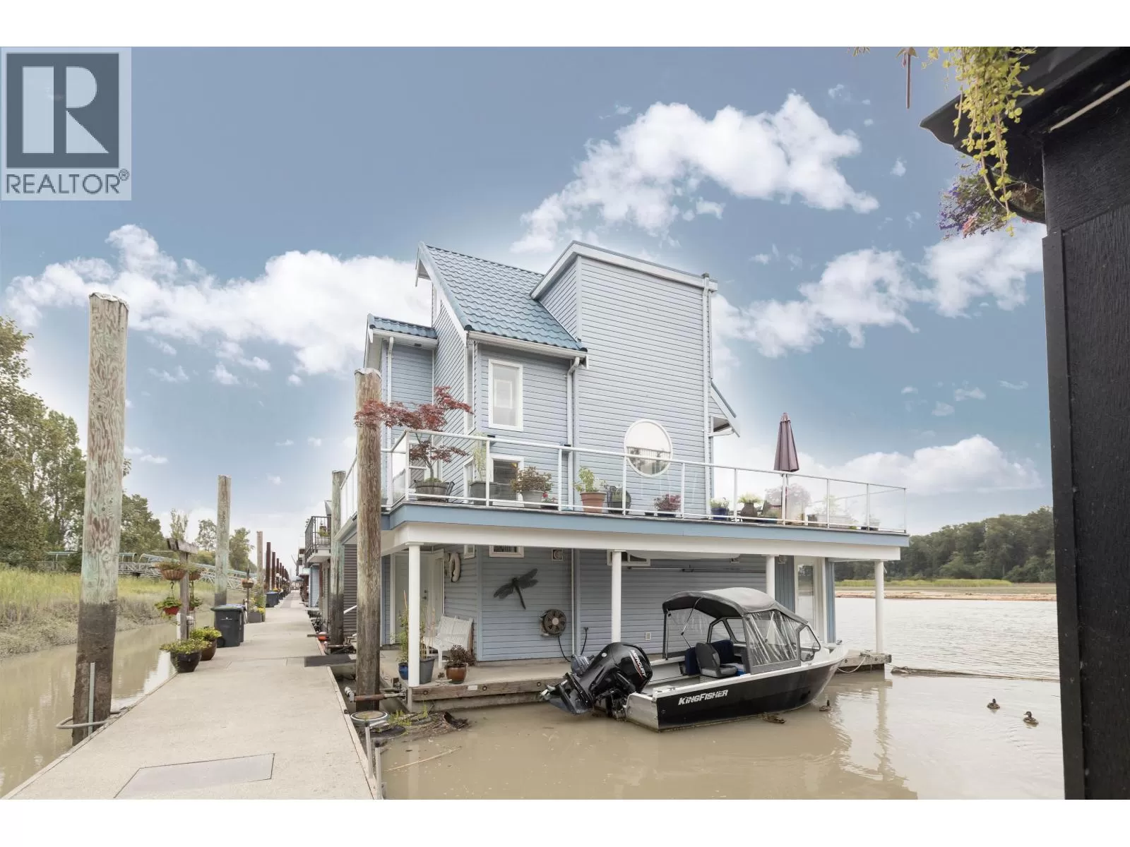 Looking for a WATERFRONT oasis close to the city! This is the home for you. Float Home living in Queensgate Marina a top rated gated strata community. This beautiful 3 level 2 bedroom 1330+sqft home offers tranquil living with an incredible outlook. PLUS a BOAT SLIP next to your home with NO MOORAGE FEES. Low strata fees. Main level has a covered entry, rec room, fabulous bar, bedroom & bathroom. The kitchen, living & dining area upstairs opens onto a huge wrap around deck. Master is on the top level with a private deck & hot tub overlooking the river. Loads of deck space (900+sqft) for entertaining, BBQ's & lounging. Additional 119 sqft laundry/utilities/workshop space. Enjoy your day watching marine wildlife & the river or go to the rec centre, parks, walking, biking, kayaking or take a boat ride. Pets welcome 4 dogs/cats allowed. This home is special! One parking spot and plenty of street parking. Come take a look. OPEN HOUSE this SUNDAY, Nov 16, 1-2:30pm (id:27476)