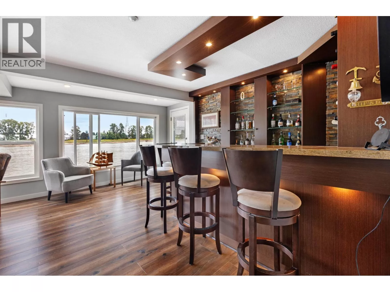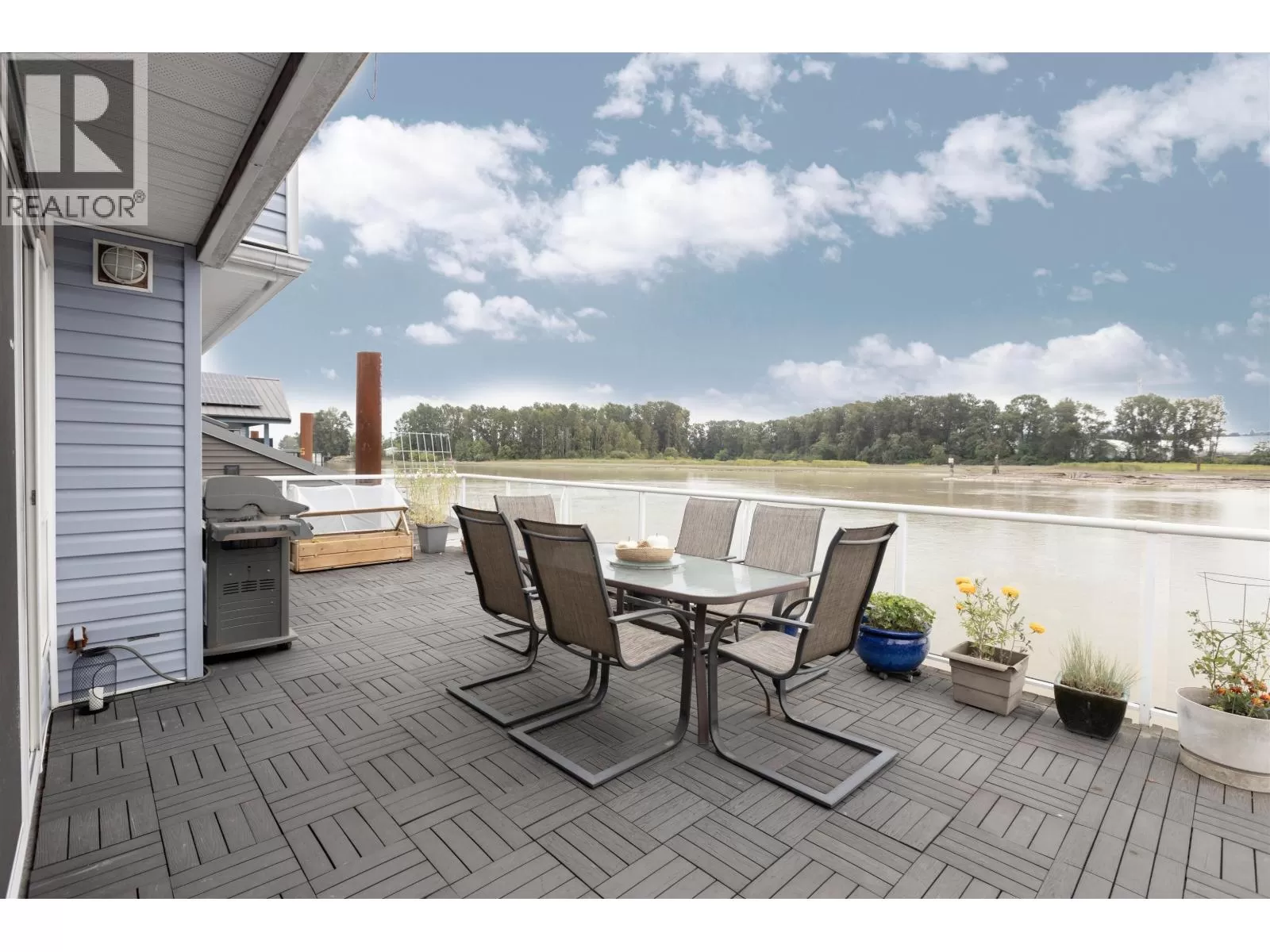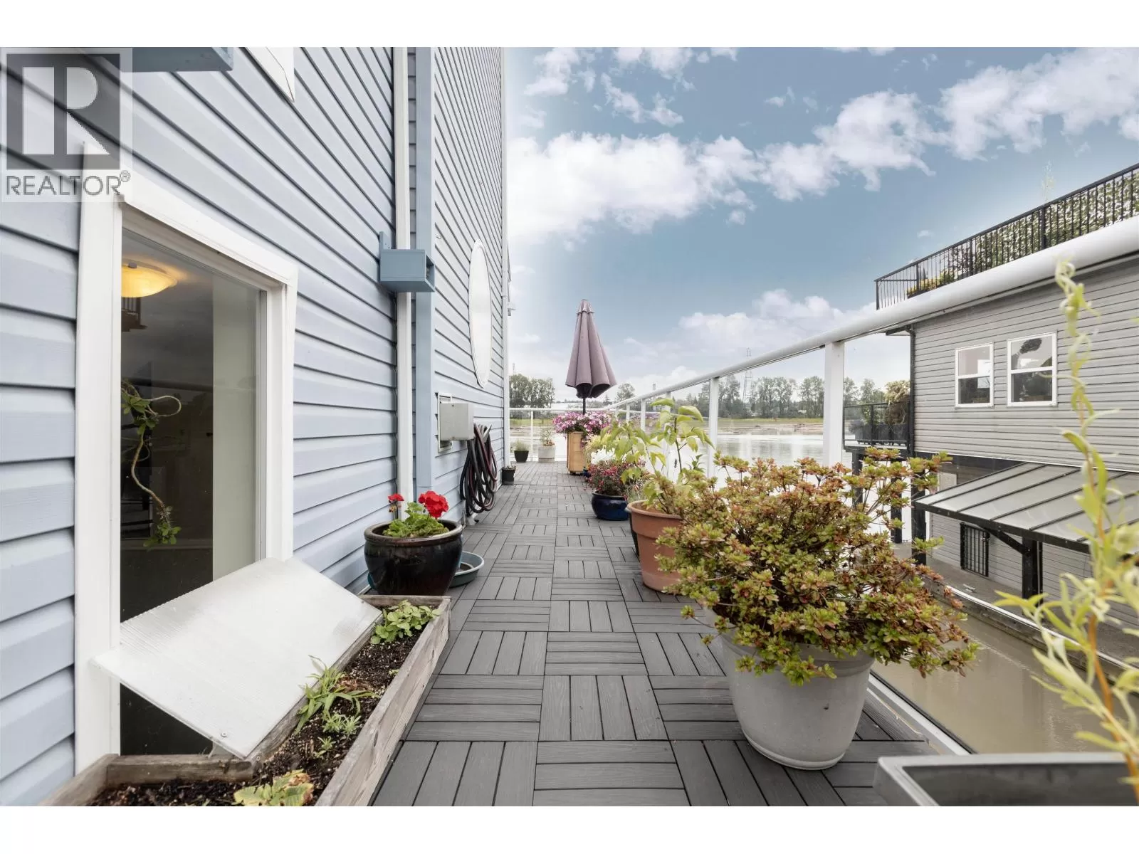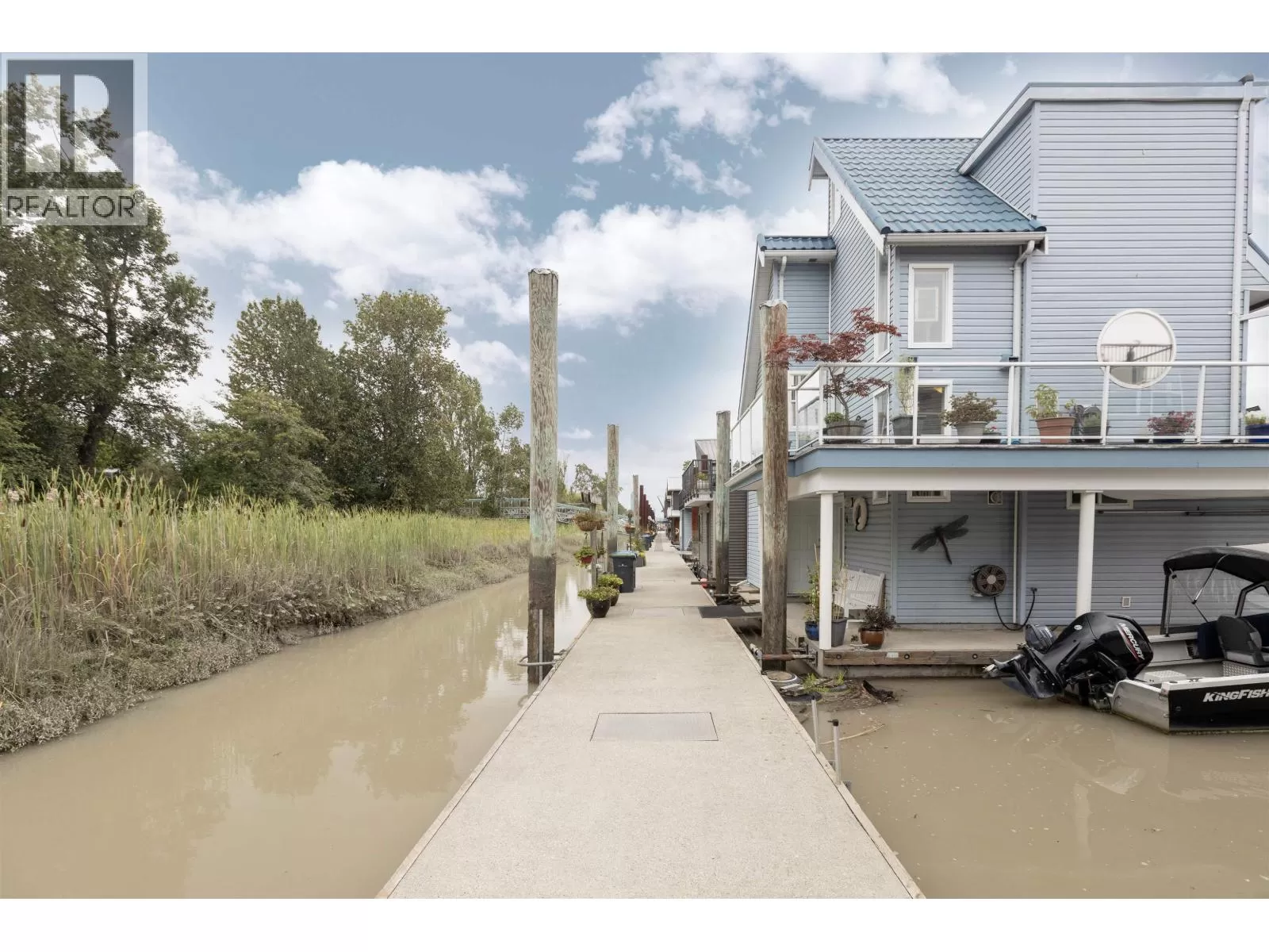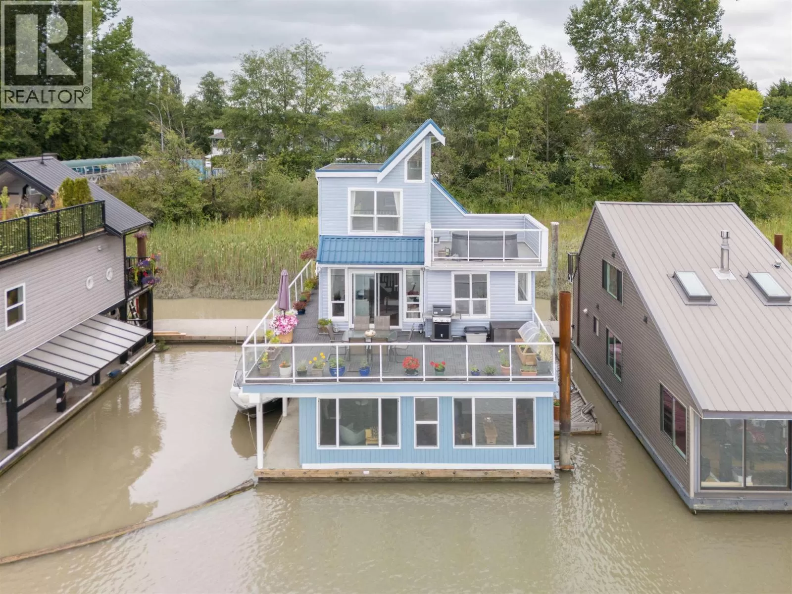 Looking for a WATERFRONT oasis close to the city! This is the home for you. Float Home living in Queensgate Marina a top rated gated strata community. This beautiful 3 level 2 bedroom 1330+sqft home offers tranquil living with an incredible outlook. PLUS a BOAT SLIP next to your home with NO MOORAGE FEES. Low strata fees. Main level has a covered entry, rec room, fabulous bar, bedroom & bathroom. The kitchen, living & dining area upstairs opens onto a huge wrap around deck. Master is on the top level with a private deck & hot tub overlooking the river. Loads of deck space (900+sqft) for entertaining, BBQ's & lounging. Additional 119 sqft laundry/utilities/workshop space. Enjoy your day watching marine wildlife & the river or go to the rec centre, parks, walking, biking, kayaking or take a boat ride. Pets welcome 4 dogs/cats allowed. This home is special! One parking spot and plenty of street parking. Come take a look. OPEN HOUSE this SUNDAY, Nov 16, 1-2:30pm (id:27476)