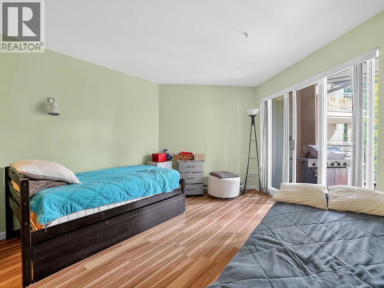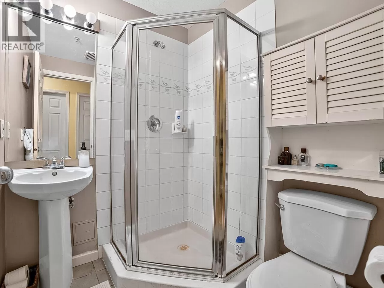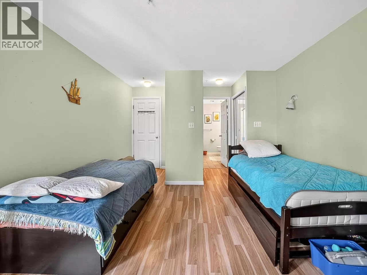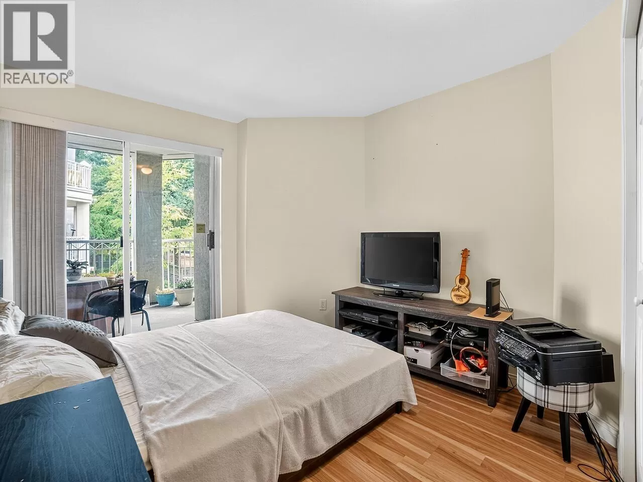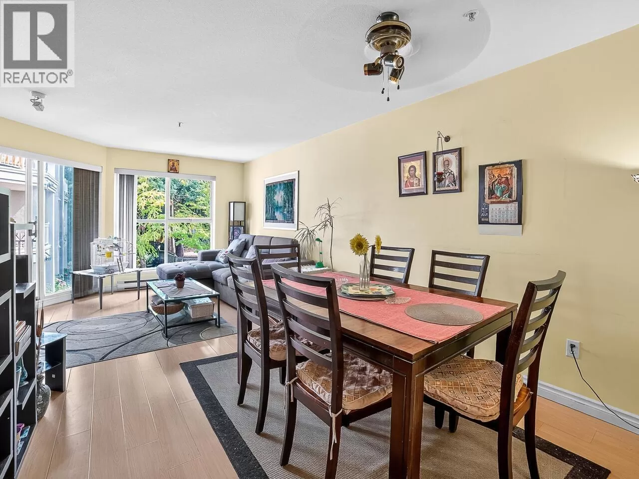 Welcome to Kingsgate Court in uptown New West. This inside corner unit opens up to laminate wood floors in the foyer, running to the dining room and living room with a gas fireplace and sliding glass doors that step out to the covered balcony, accessed as well from both bedrooms. The open kitchen has a breakfast bar opposite the stainless steel appliances and double sink. In suite storage sits adjacent to the hall closet. The three-piece main bathroom sits across the hall from the second bedroom. The primary bedroom, enjoying the same green belt, courtyard views from the deck and living room, has double mirrored closets on the way to the en suite and stacked washer and dryer. With a walk score of 90, this home is surrounded by amenities and only a short walk to Moody Park and Royal City Center. 2 cats/dogs allowed. 3D virtual tour at Realtor's site. (id:27476)