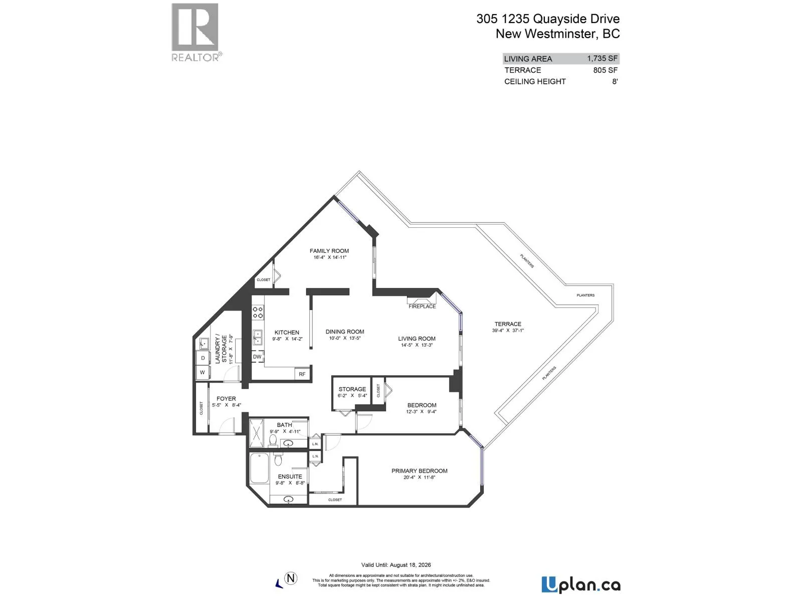 Welcome to this rare and beautifully maintained 2 bed, 2 bath home in New West's vibrant Quay community. This home features 1735 square feet of indoor living space, and an incredible 805 square foot private terrace. A spacious family room provides flexible living space and could easily be converted back to a third bedroom if desired. Located in one of the Quay's most desirable buildings, this home puts you steps away from the River Market, Boardwalk, shops, restaurants and Sky Train. The three buildings offer plenty of amenities. Two parking stalls on the same floor as the home. Two pets allowed. (id:27476)