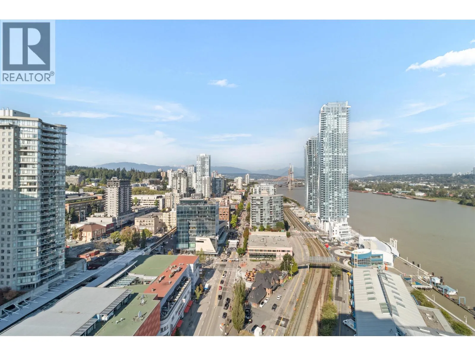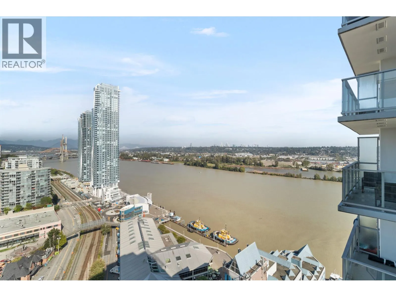Stunning 27th-fl. 2 Bed/1 Bath corner unit offering breathtaking views of the Fraser River and steps away from New Westminster Quay. Smart, efficient layout with no wasted space, featuring an open living area that extends to a spacious balcony. The primary bdrm easily fits a king-sized bed, with both bdrms offering spectacular views. Enjoy top-notch amenities, including a fully-equipped gym, a stylish party room, and a serene rooftop garden. Built by BOSA, this home is ideally situated near the Q to Q Ferry, Expo Line SkyTrain, and the lively attractions of Front St and Columbia St, offering all the conveniences of urban living right at your doorstep. 1 Parking and 1 Storage Locker. Ideal for those seeking comfort, style, and convenience. Open House: (Sat) Sep 6, 2025, 2pm-4pm. (id:27476)